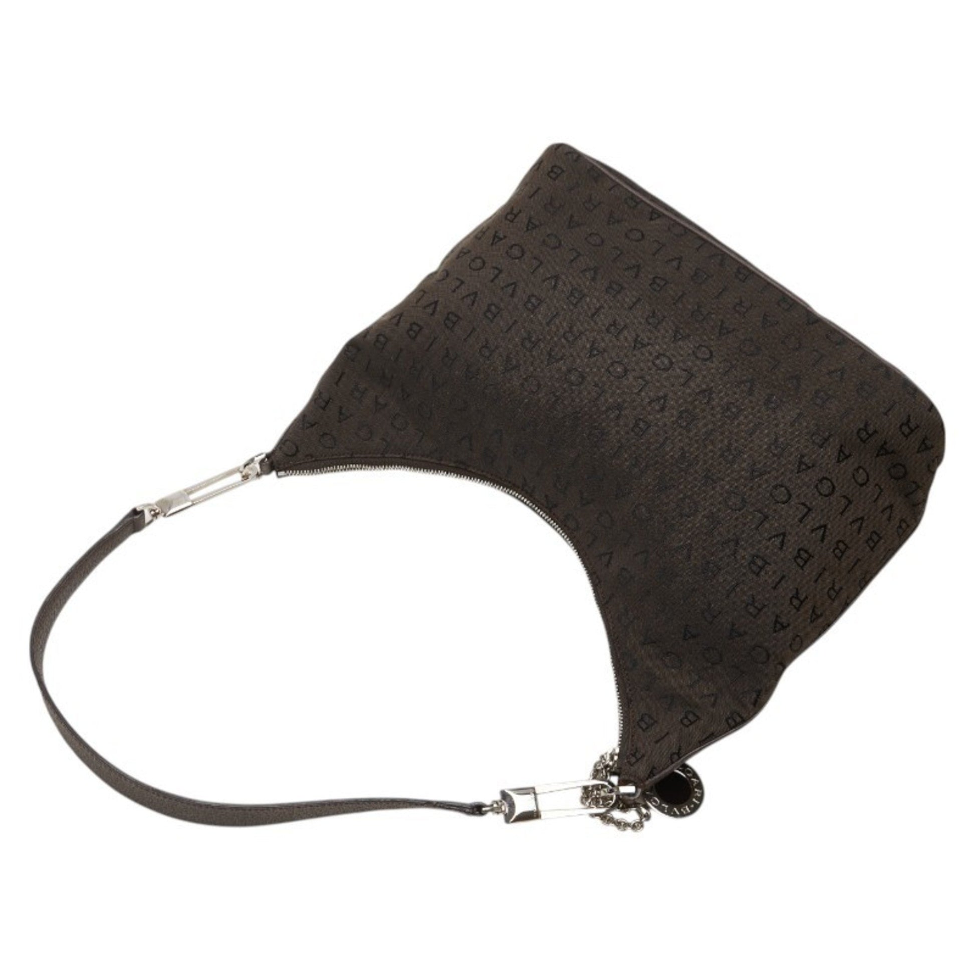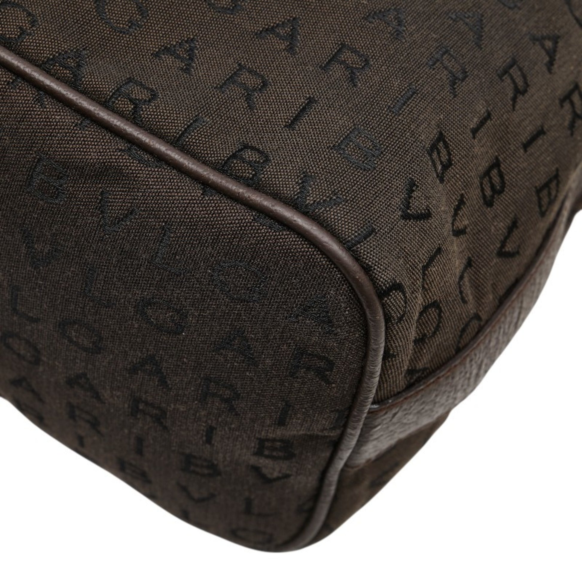 Bvlgari Logomania One-Shoulder Bag Handbag Brown Canvas Leather