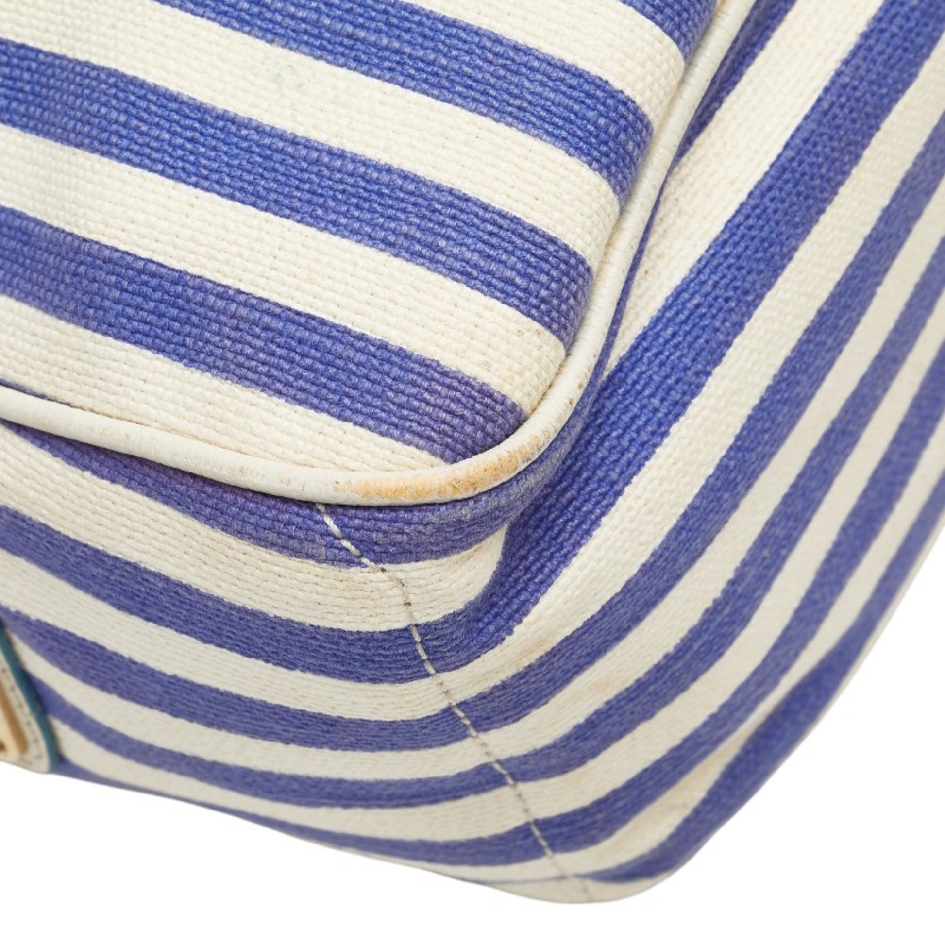 Celine Boogie Bag Striped Handbag Blue White Canvas Leather
