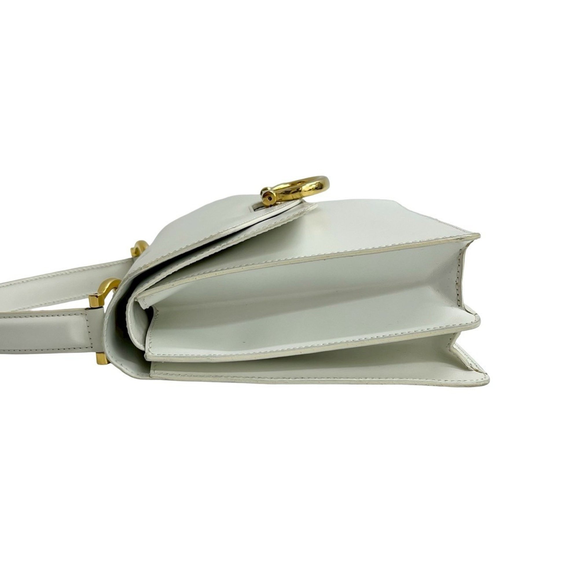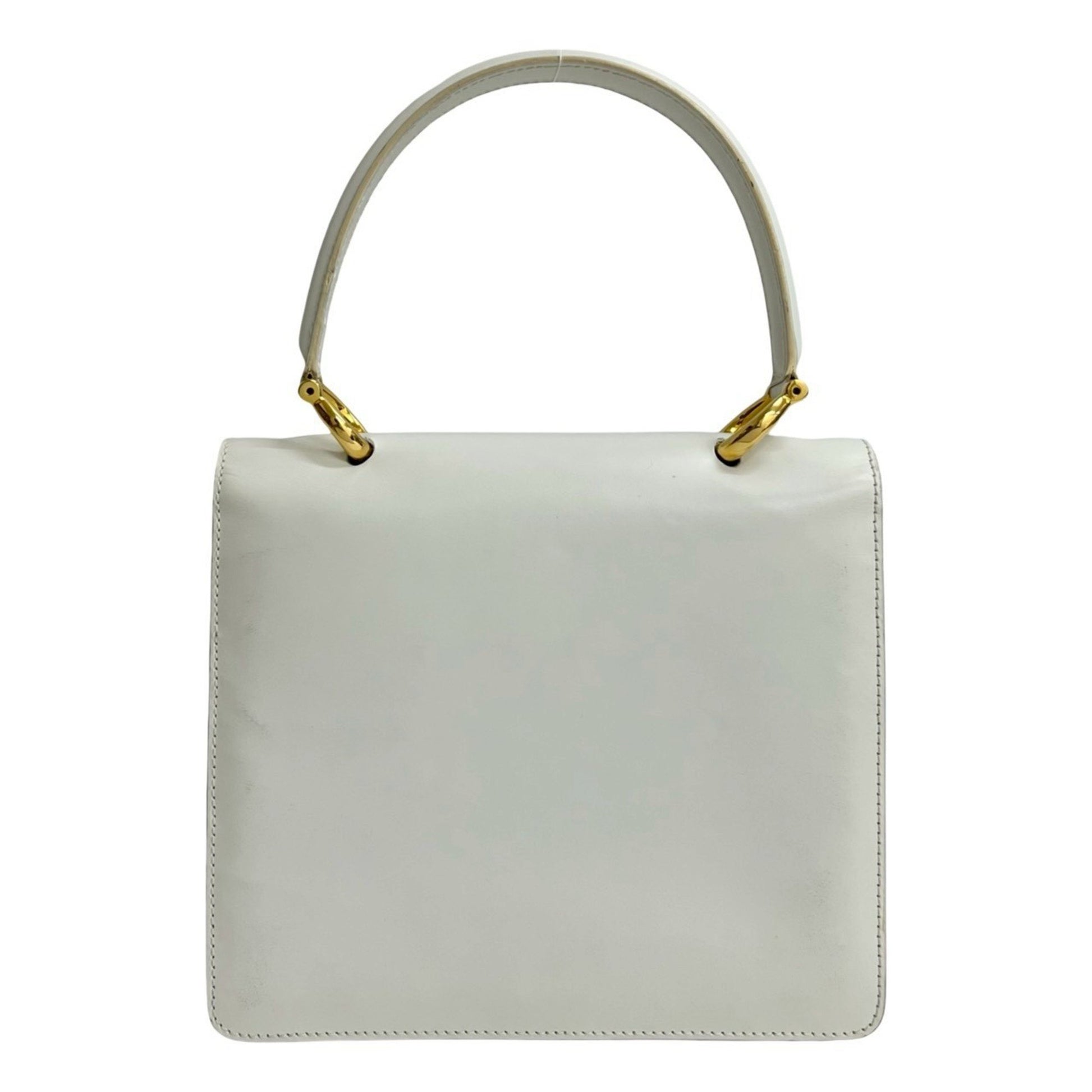 Celine Logo Gold Calf Leather Handbag Mini Tote Bag White 15154