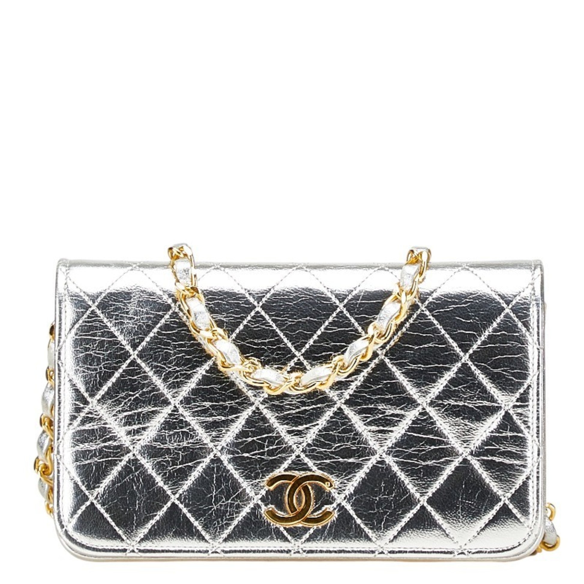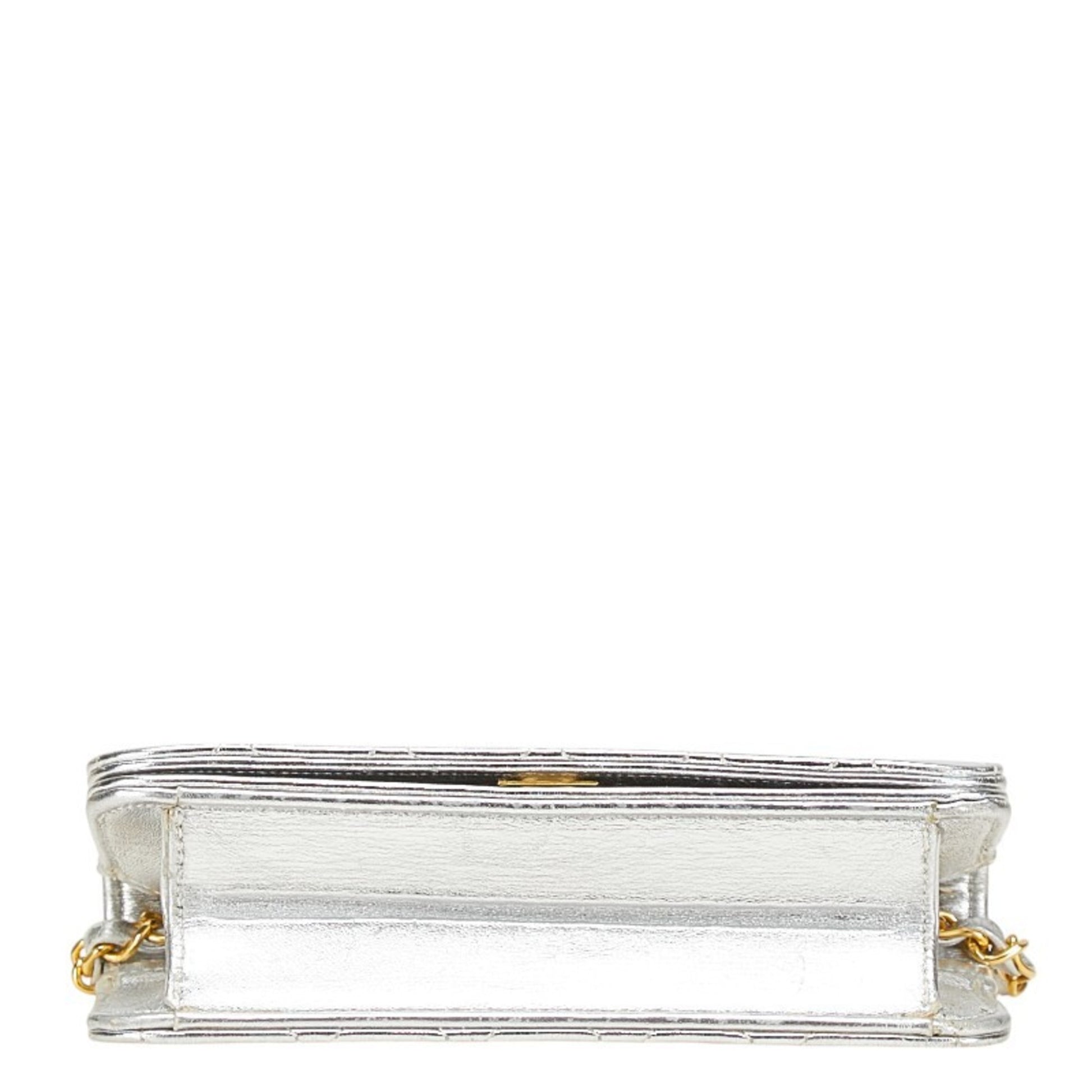 Chanel Matelasse Coco Mark Chain Shoulder Bag In Silver Leather