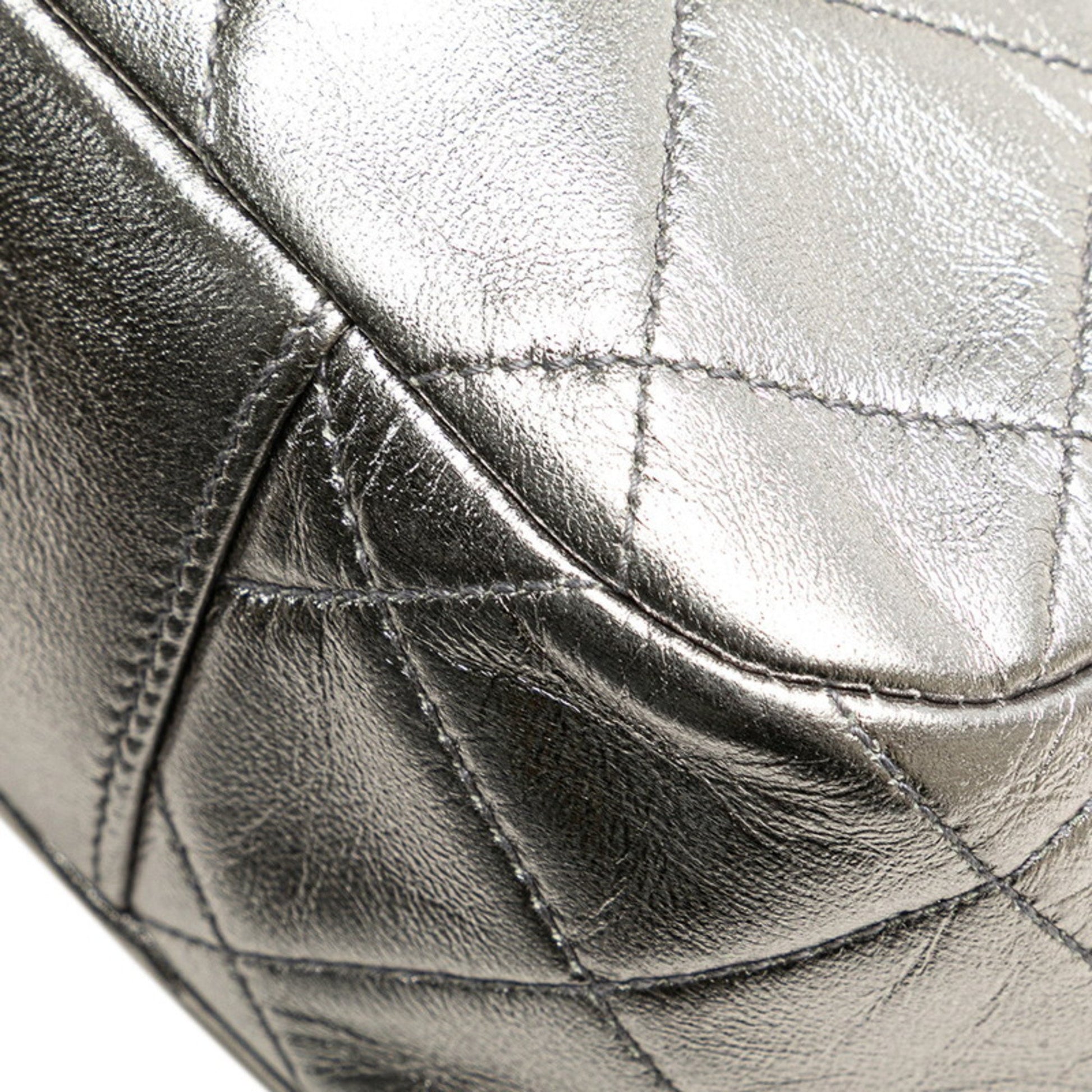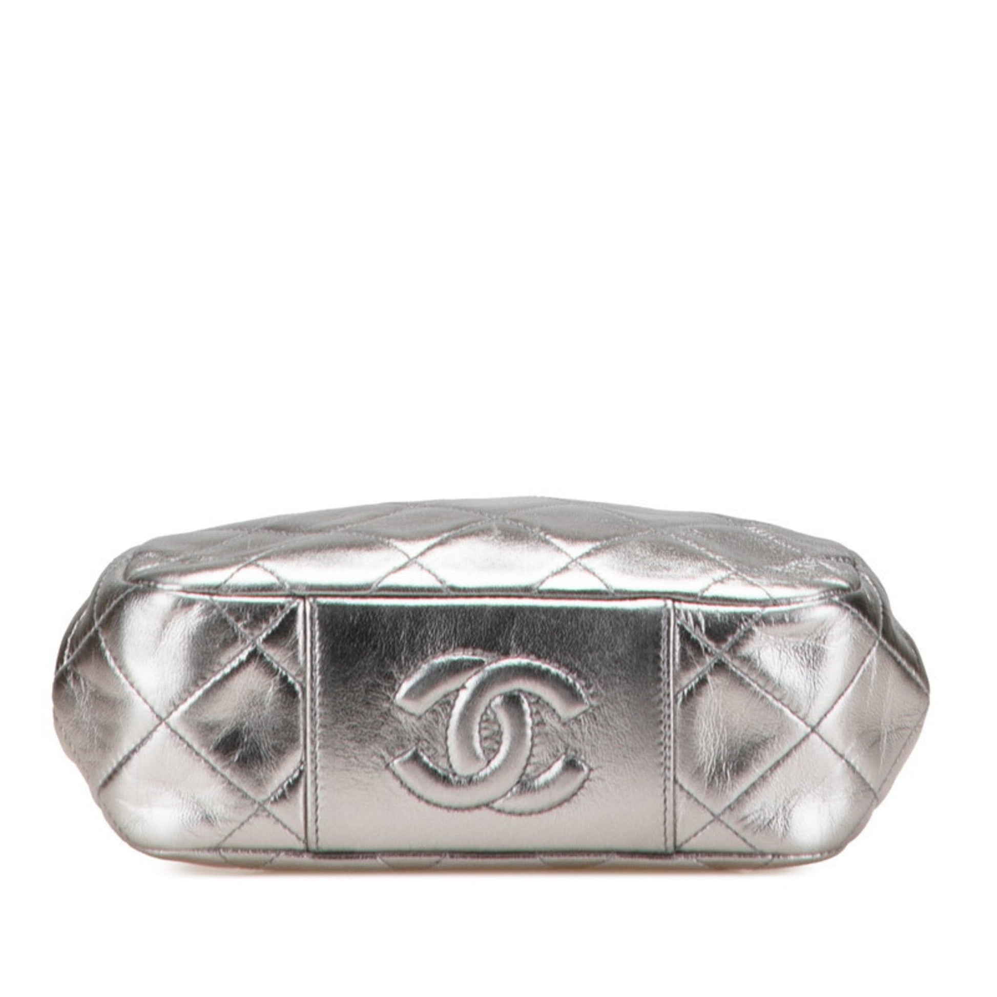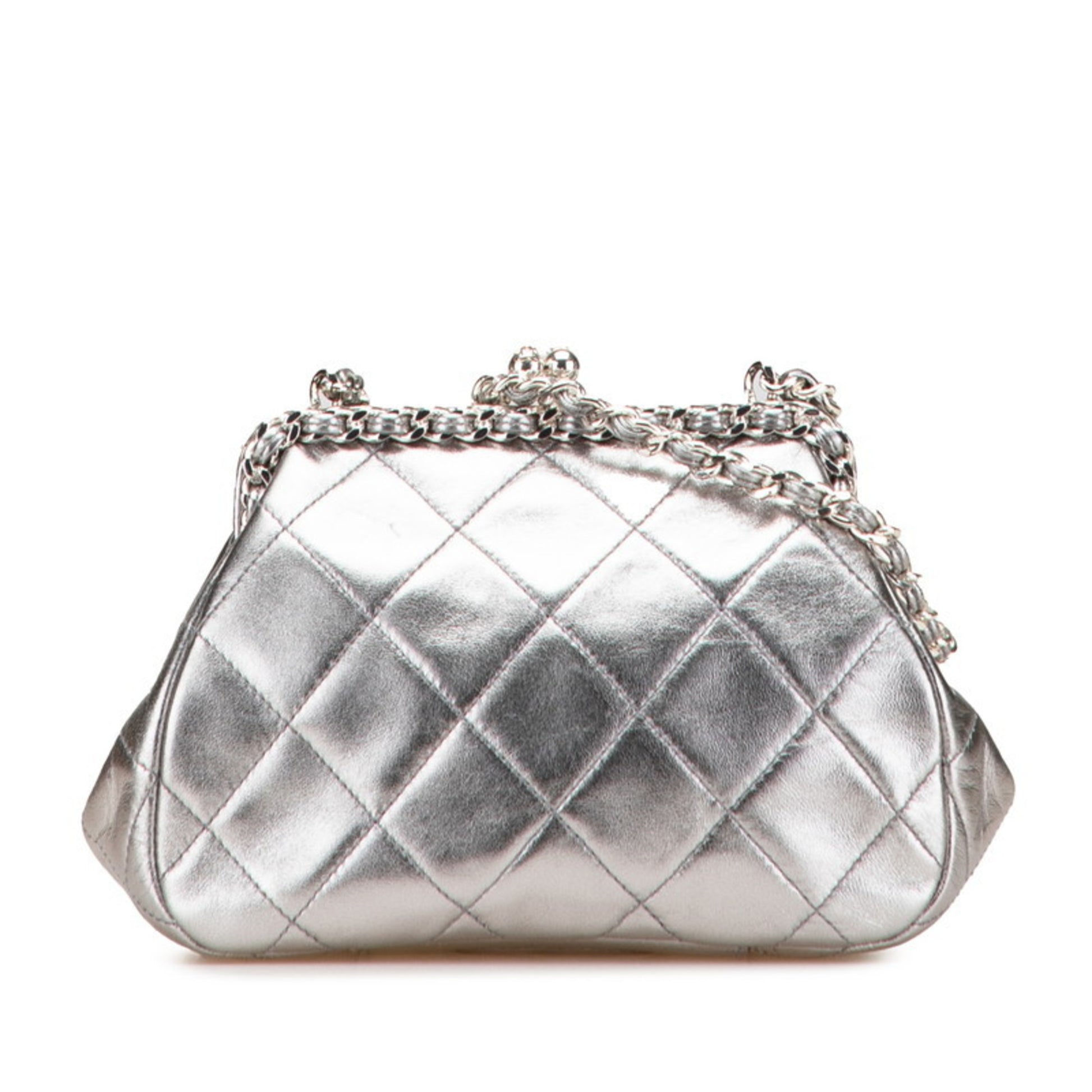 Chanel Matelasse Coco Mark Clasp Chain Shoulder Bag In Silver Lambskin