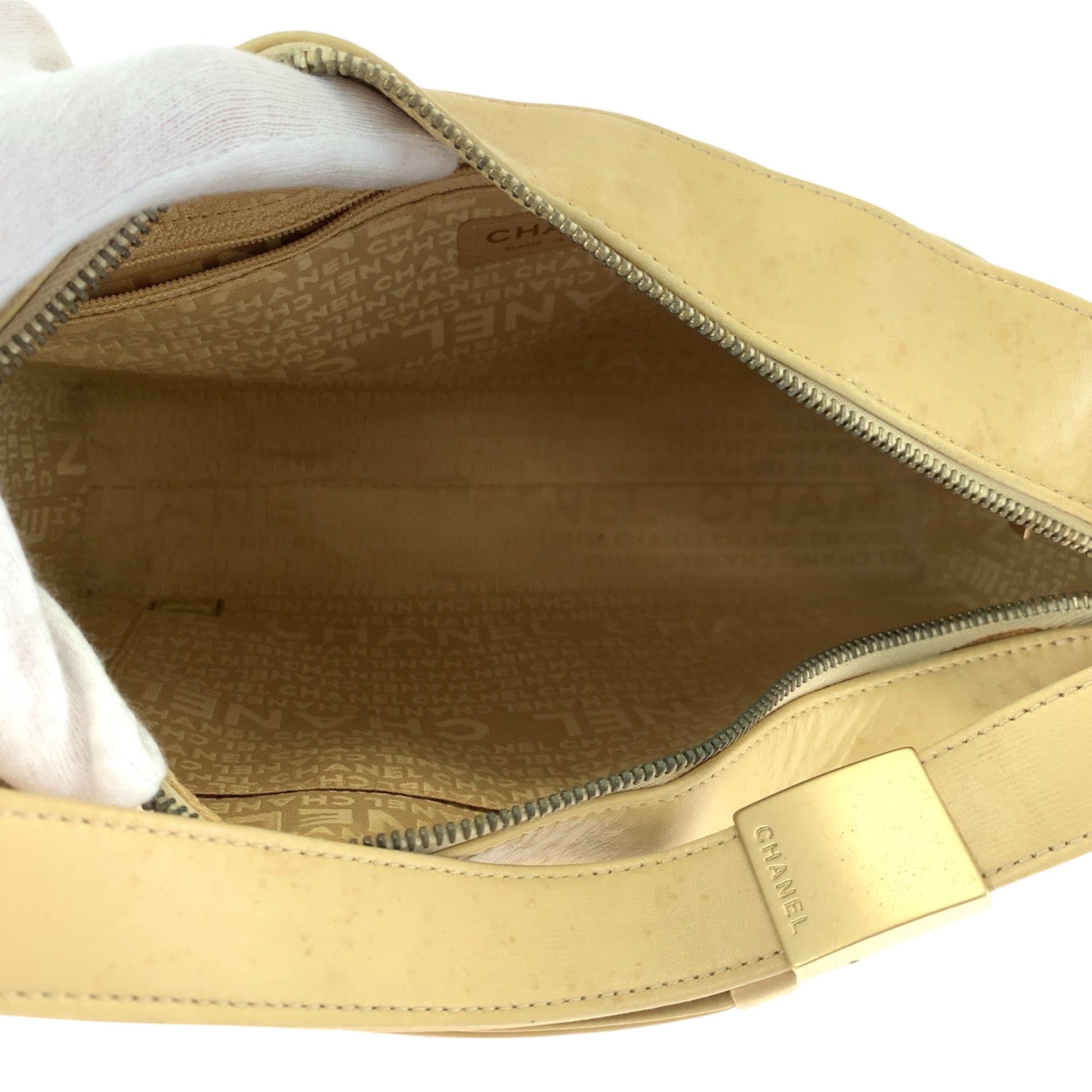 Chanel Vintage Chocolate Bar Coco Mark Beige Lambskin Shoulder Bag With Gold Hardware