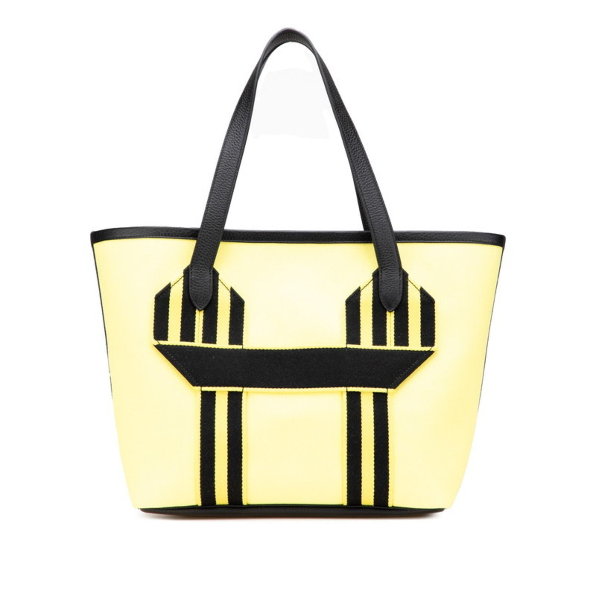 Hermes Pur Sangle Handbag Tote Bag Yellow Black Canvas Taurillon Clemence