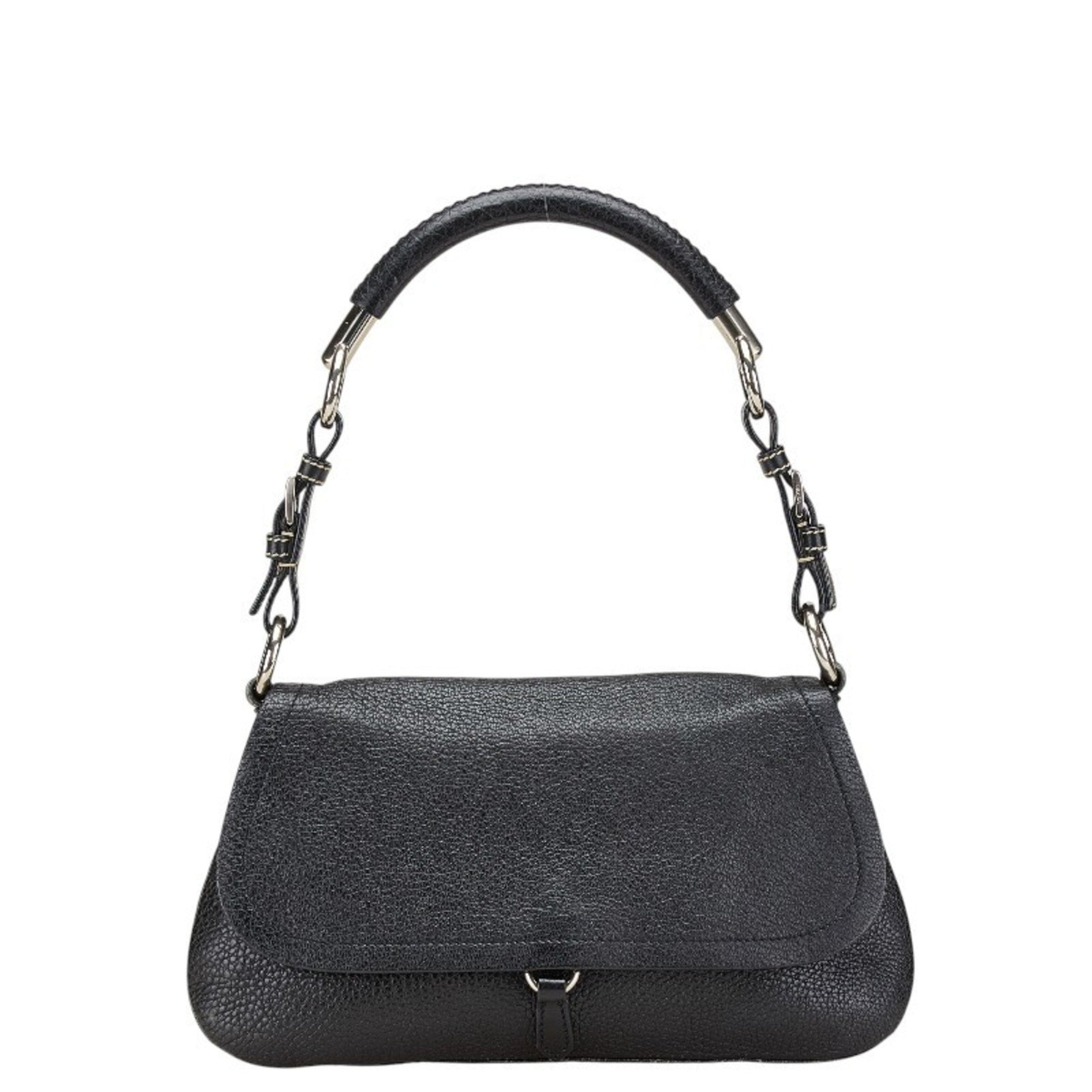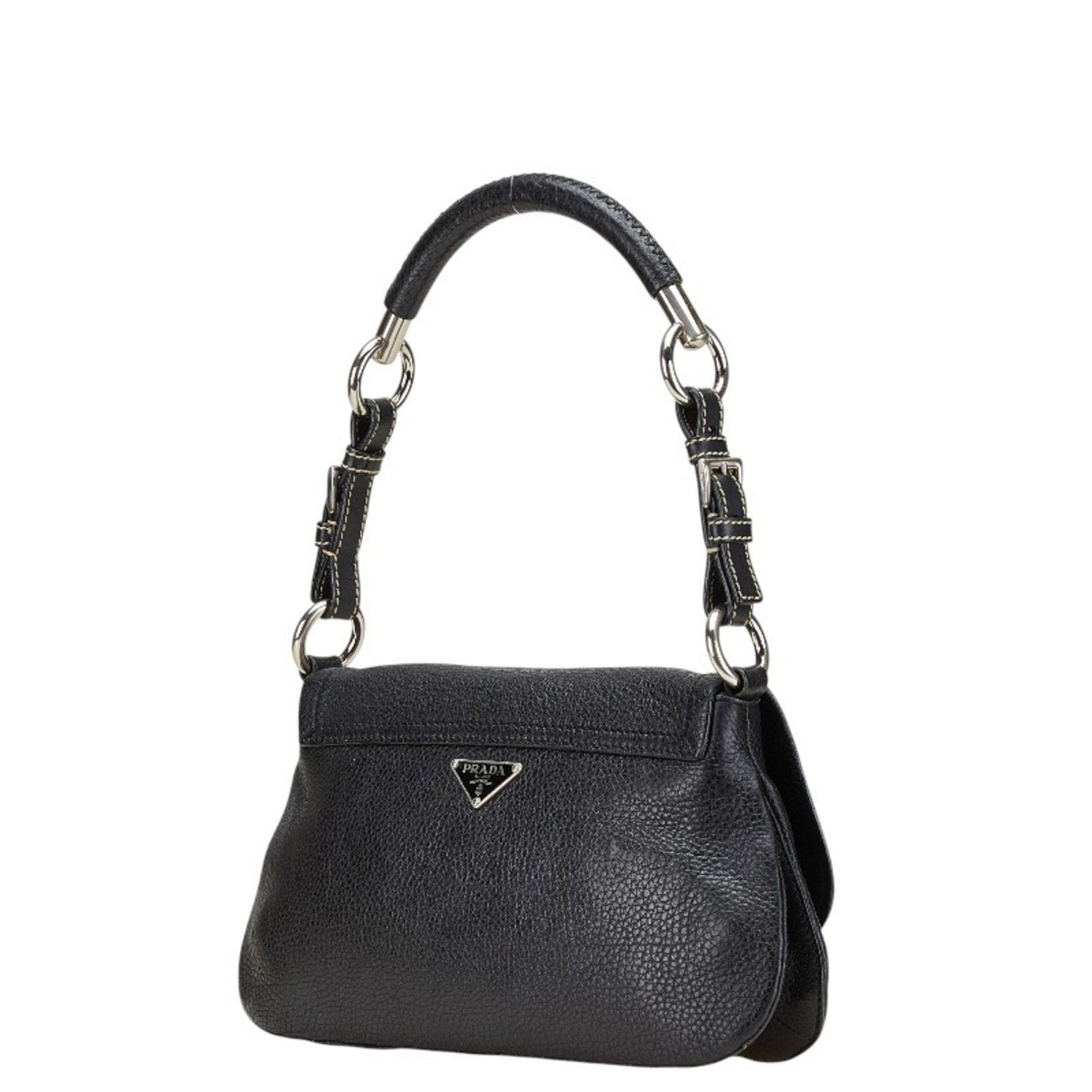 Prada Triangle Logo Plate One-Shoulder Bag Black Leather