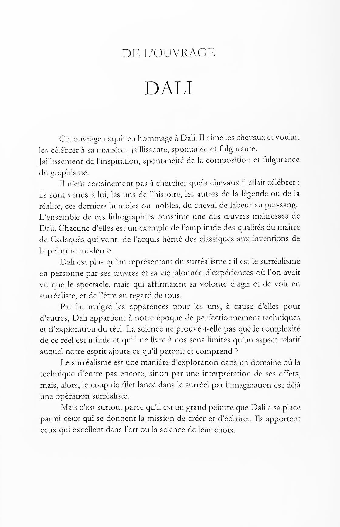 Excerpted from the folio (translated from French), This work was born in tribute to Dali.