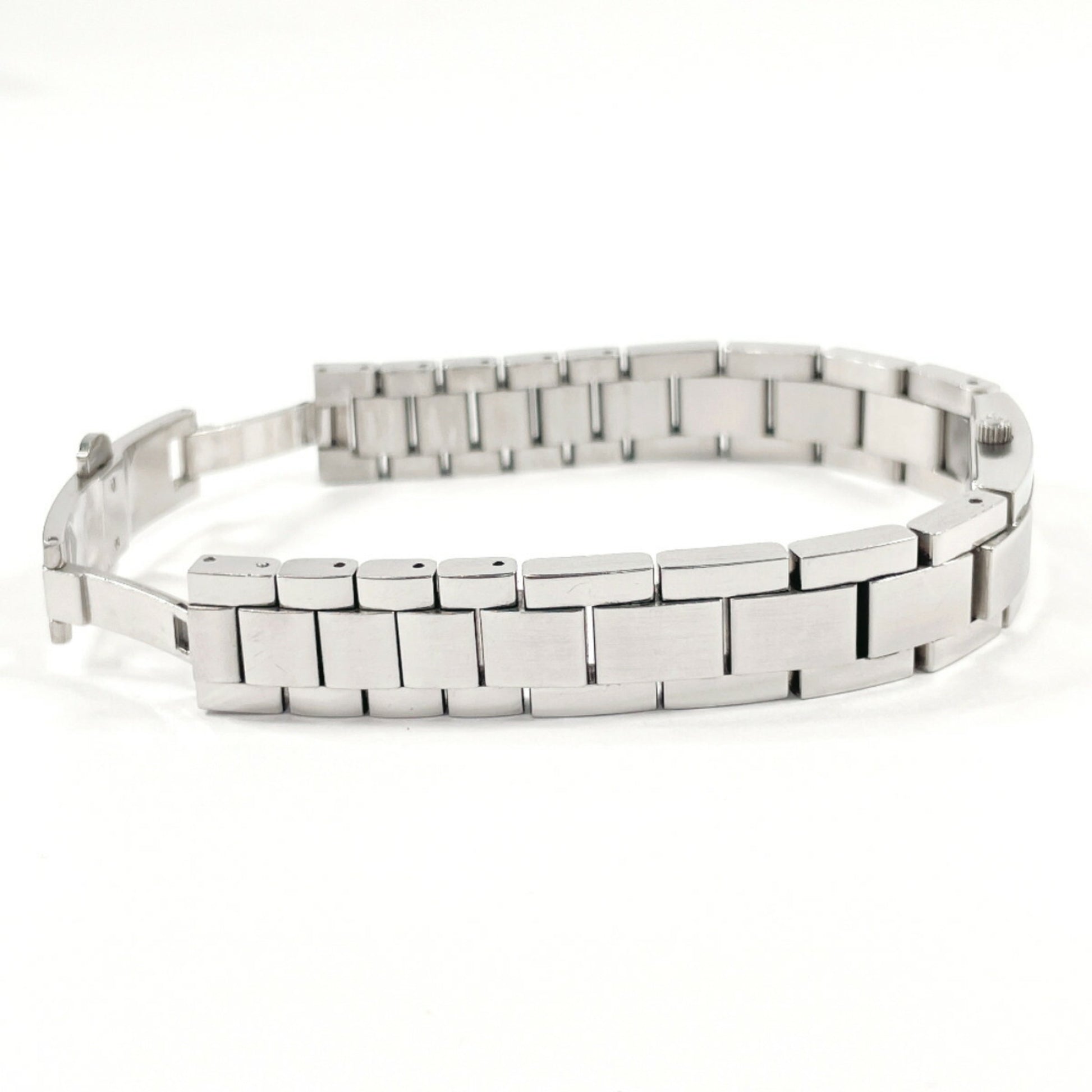 Used women's wristwatch by Gucci, model 4600L, featuring a stainless steel case and band, black dial, with traces of usage but generally in good condition.