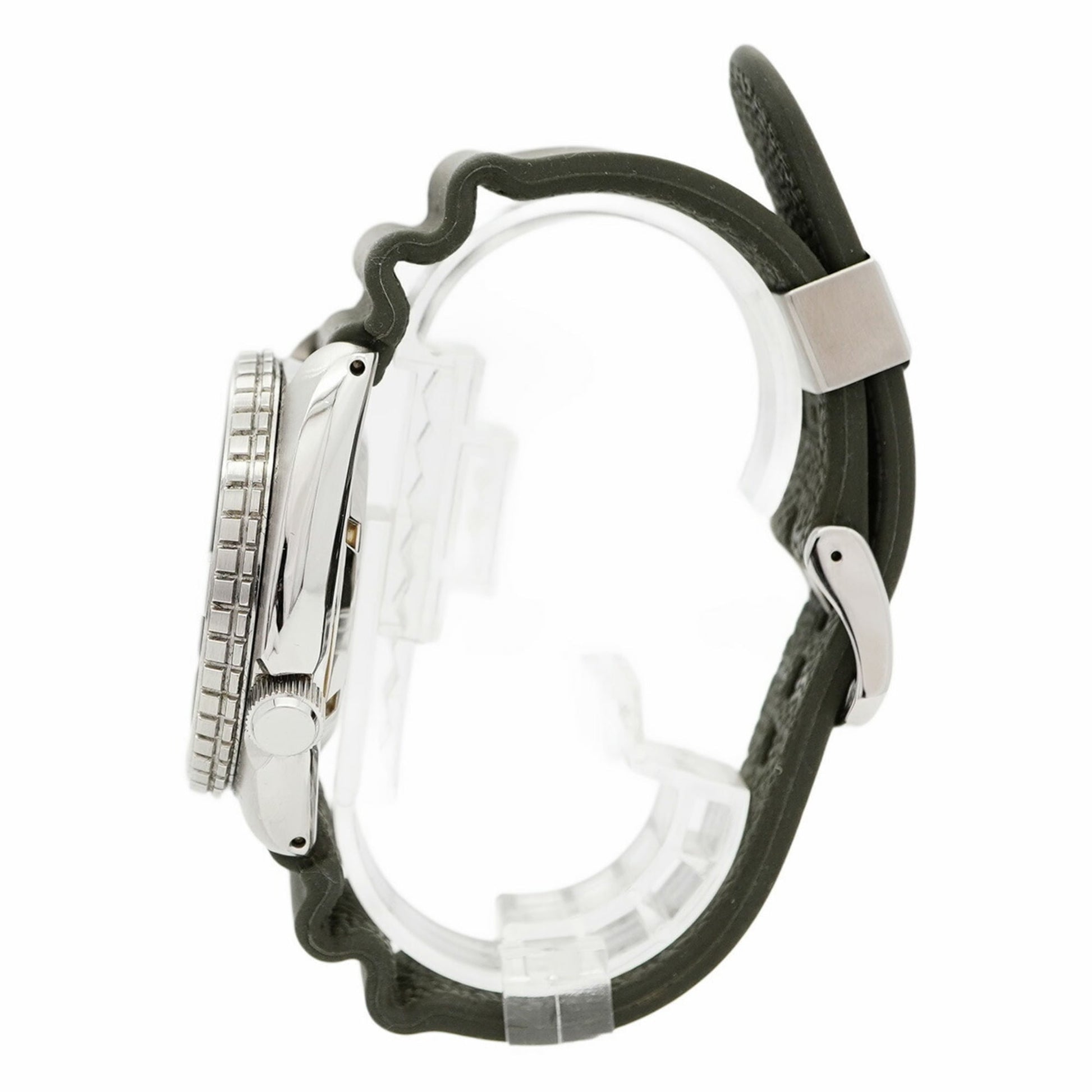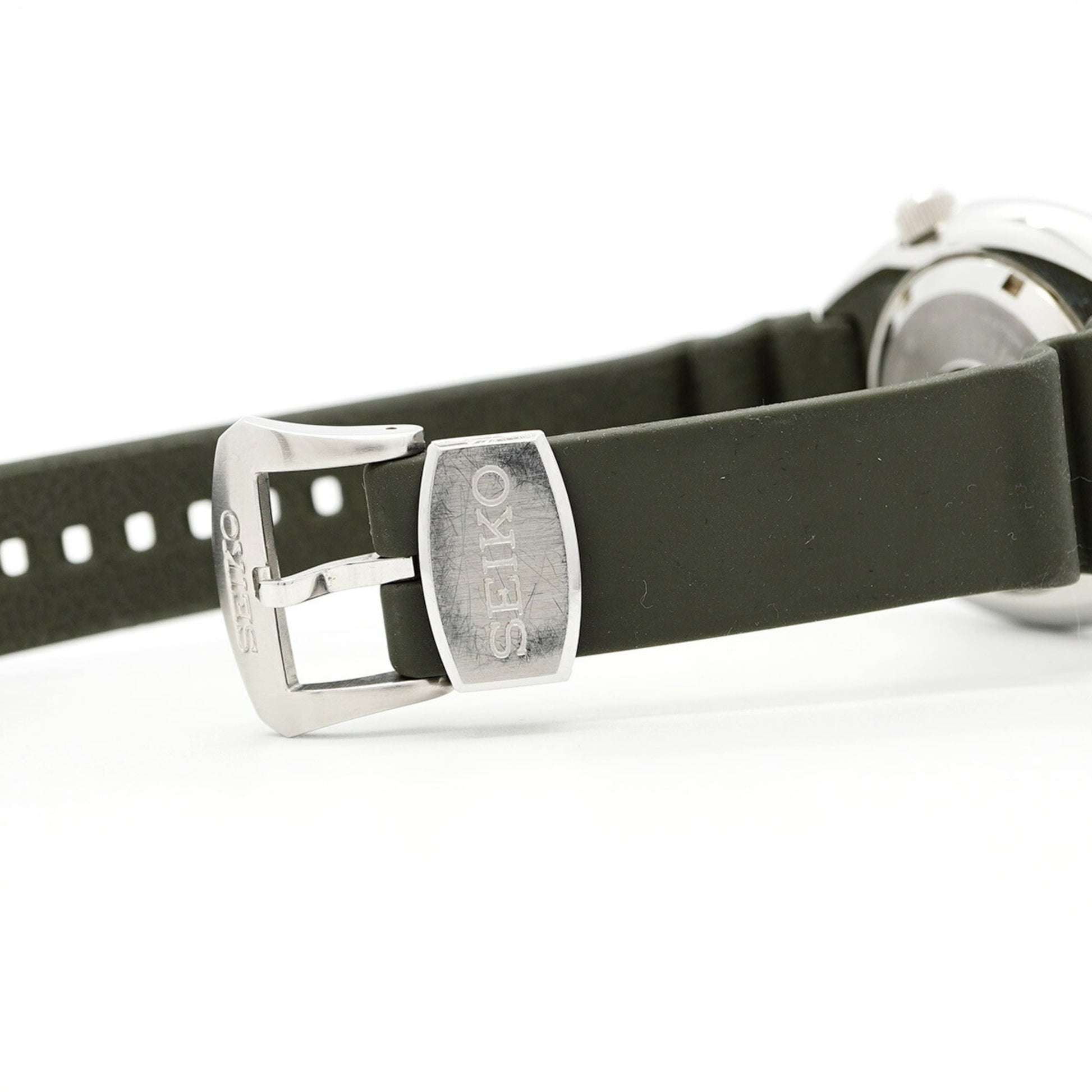 Seiko Prospex 4R36-0620 SRPE05 wristwatch for men features a green dial, rubber band, and a case diameter of 45mm. It is in used, good condition with visible traces of usage.
