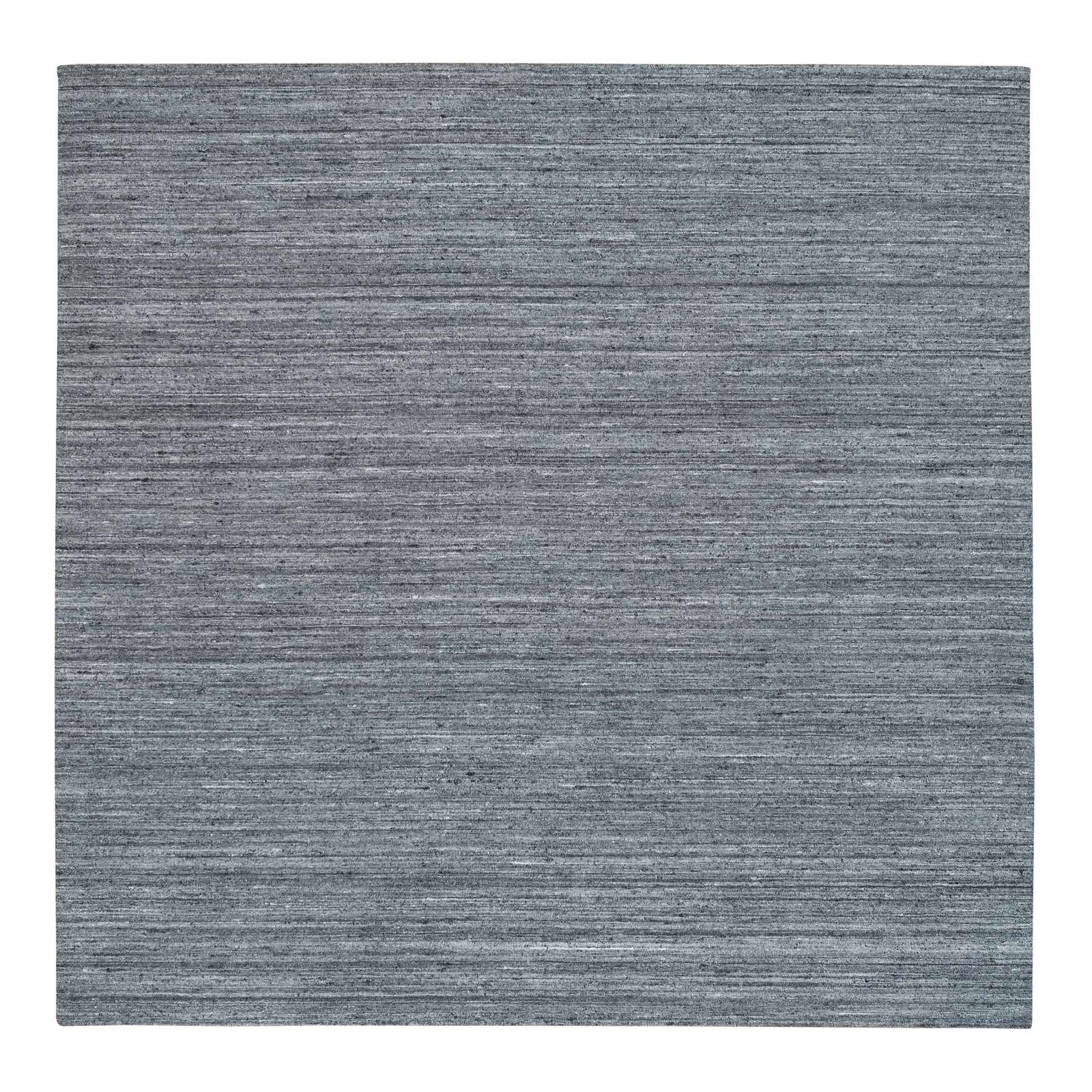 10'1"X10'1" Gray Soft Wool Hand Loomed Modern Striae Design Square Rug
