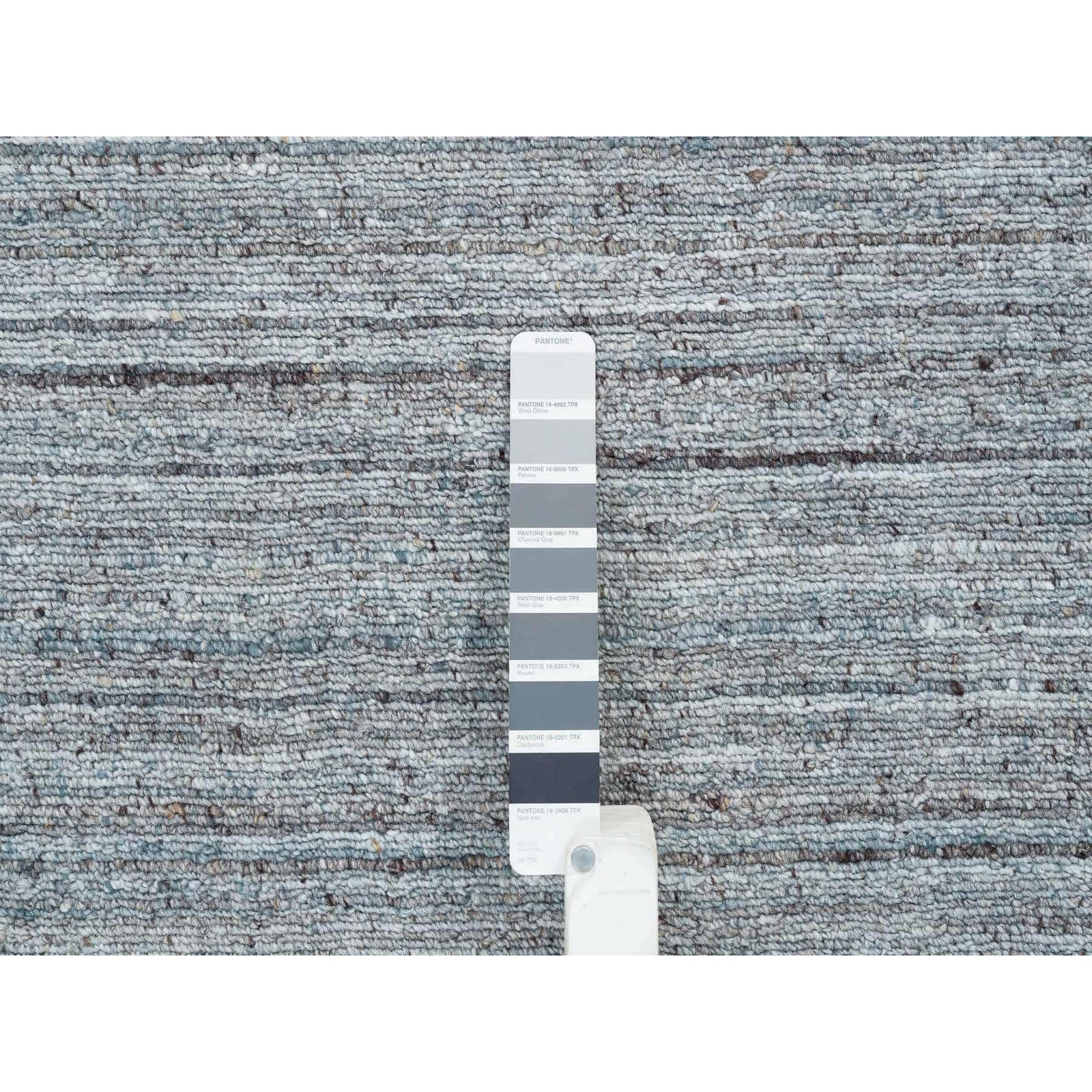 10'1"X10'1" Gray Wool Hand Loomed Modern Striae Design Round Oriental Rug