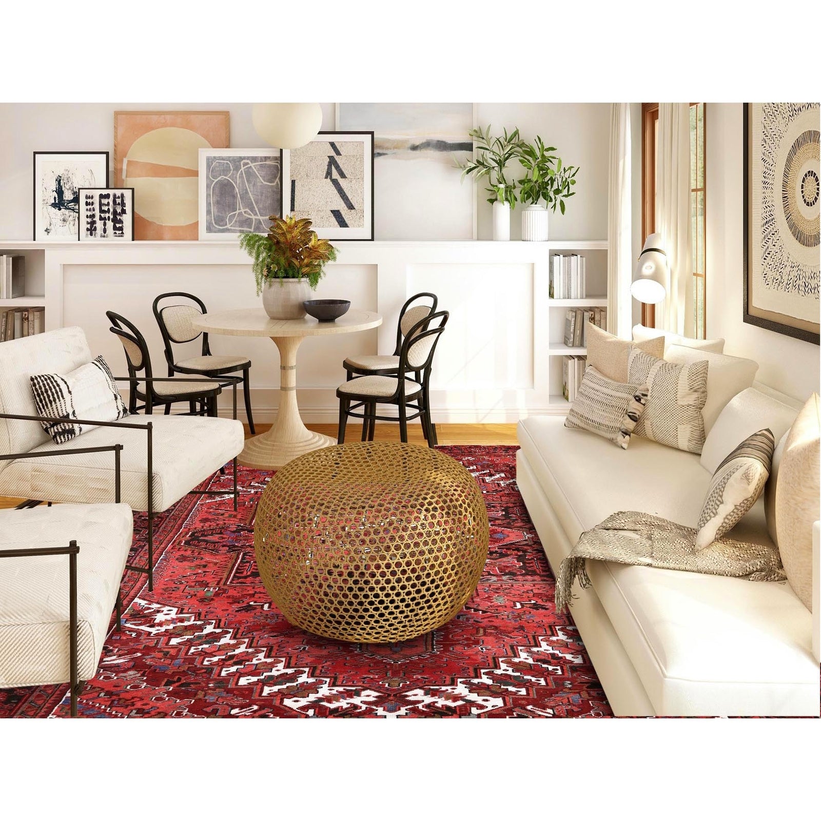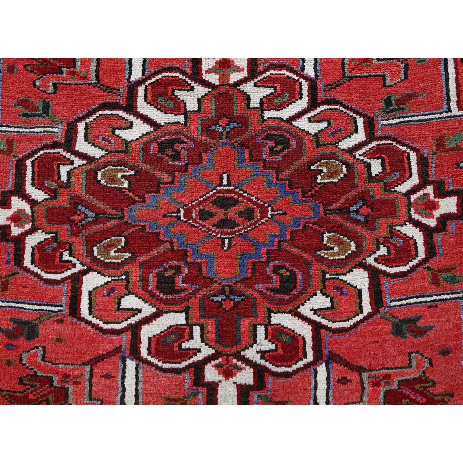 10'1"X12'7" Red Vintage Zoroastrian Heris Hand Knotted Wool Shaved Low Rug