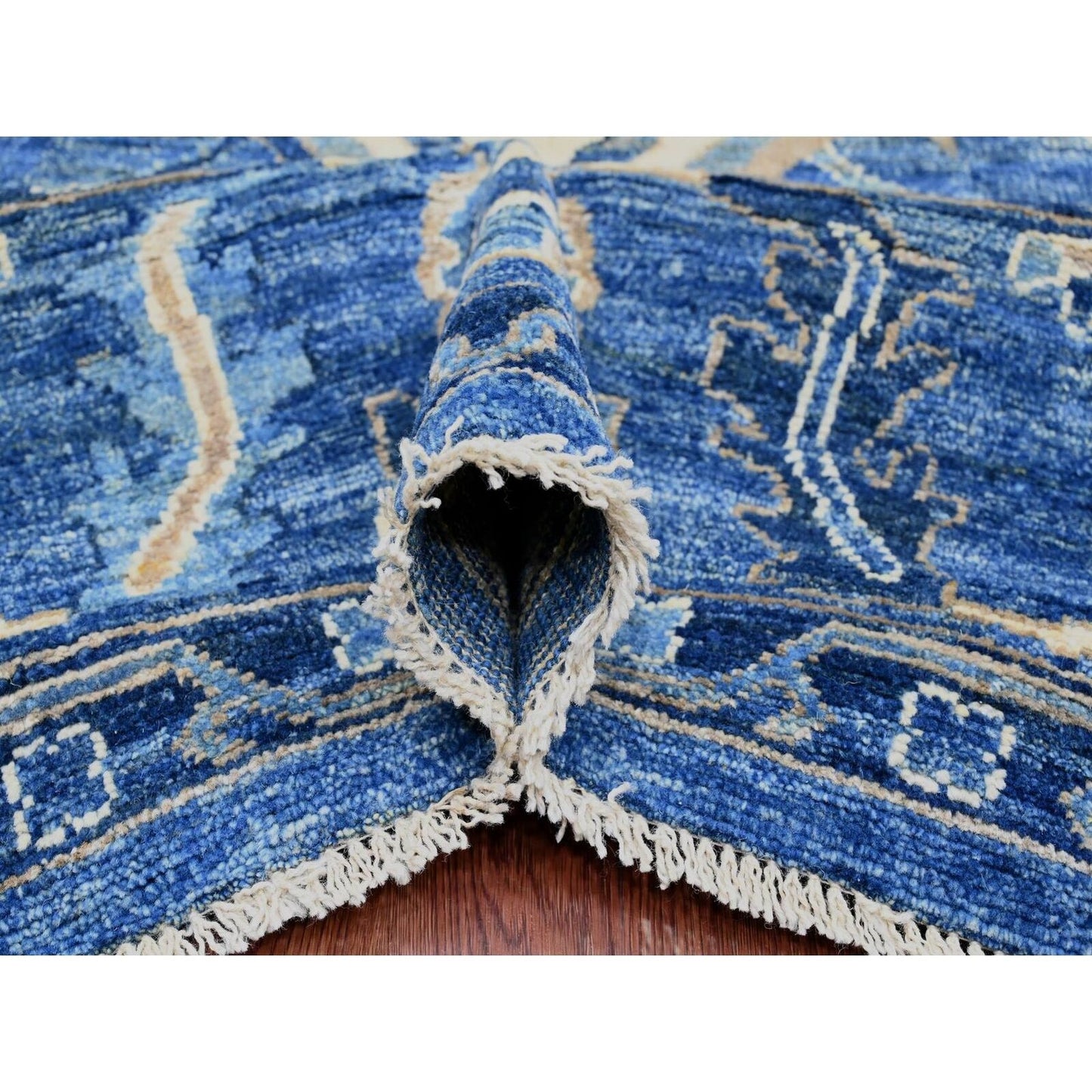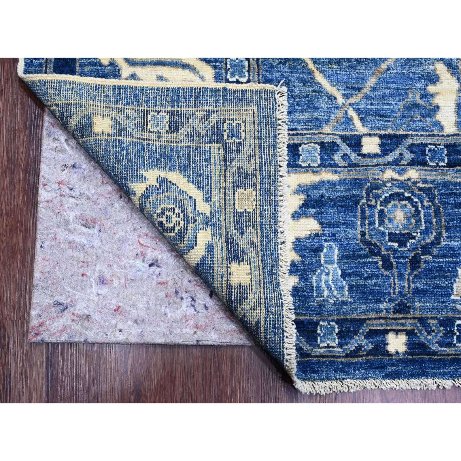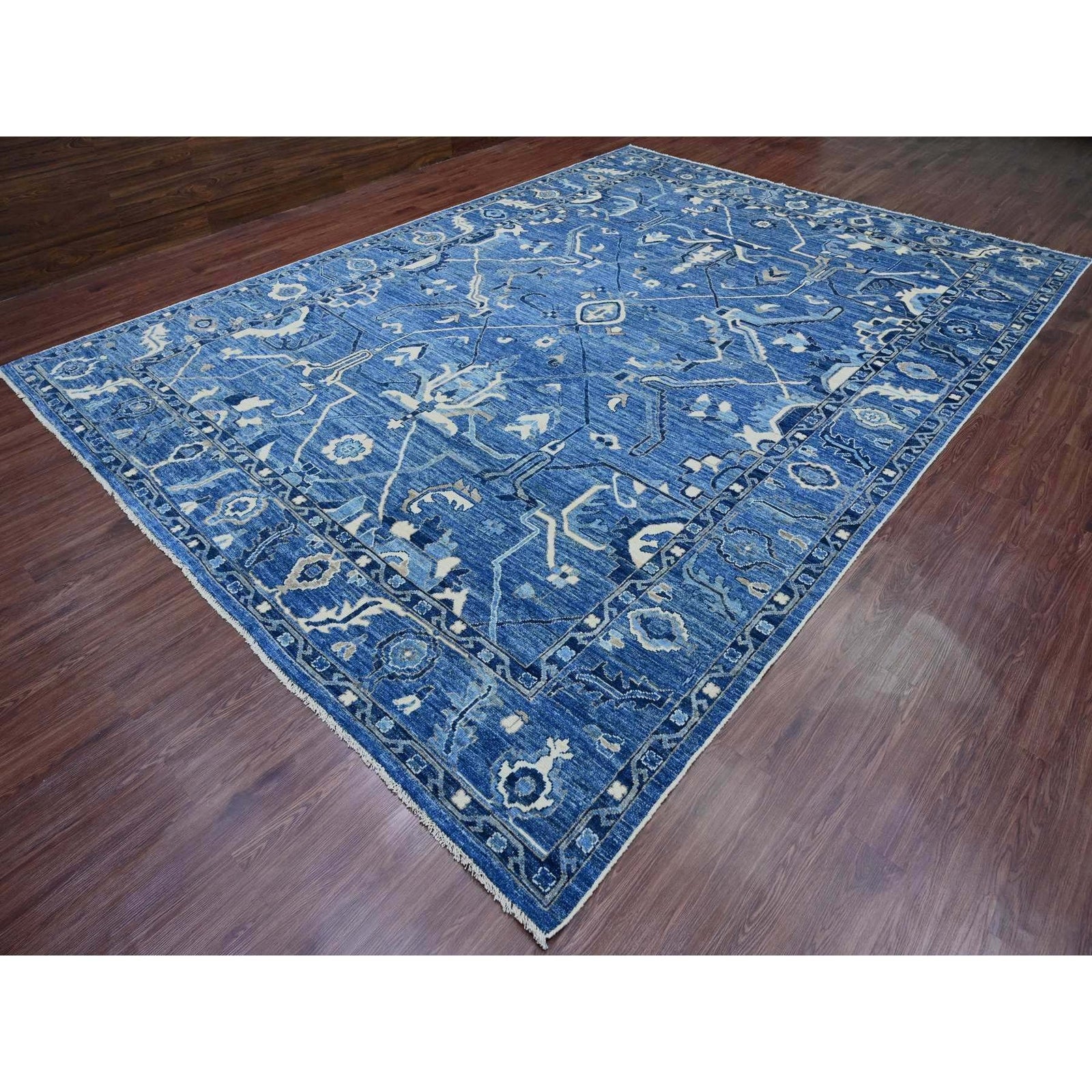 10'1"X13'9" Blue Hand Knotted Afghan Angora Oushak Vines Design Wool Rug