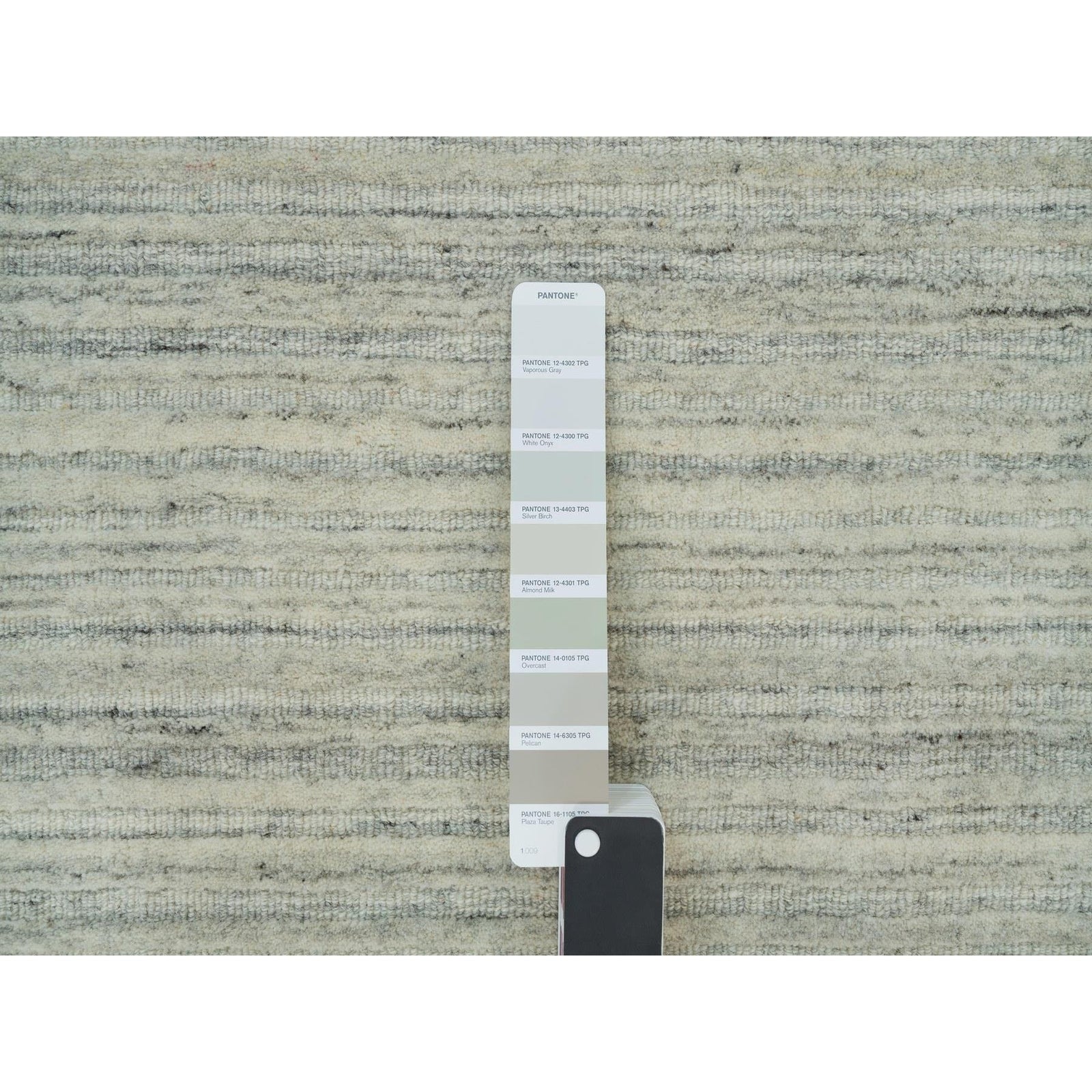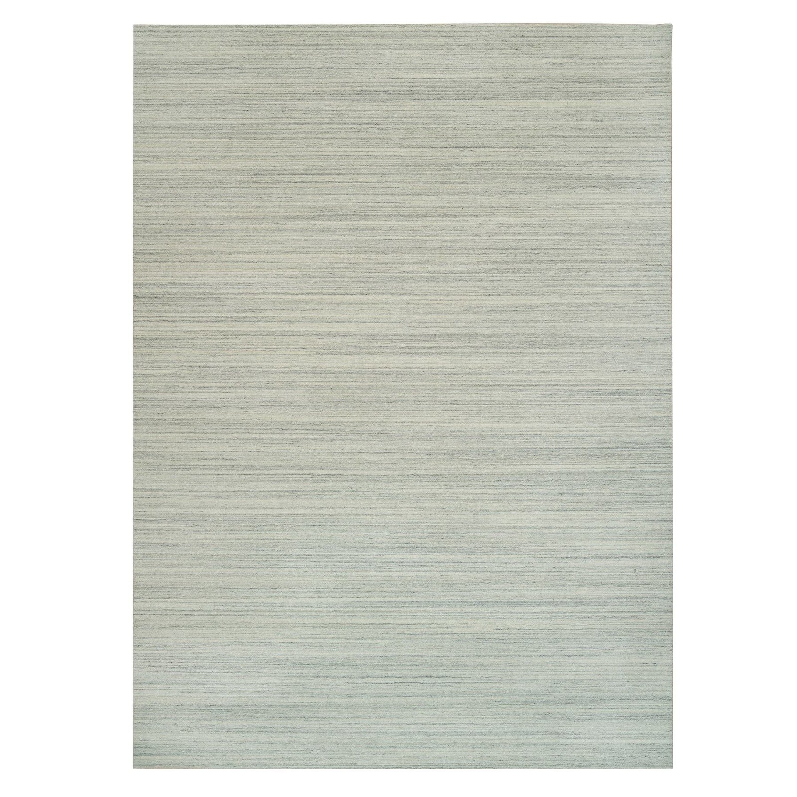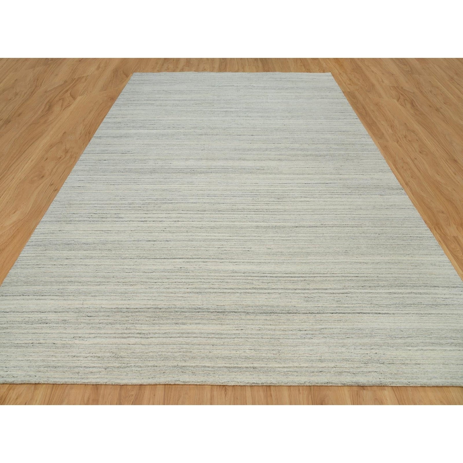 10'1"X14' Old Wood White Hand Loomed Plain Modern Design Undyed Wool Rug