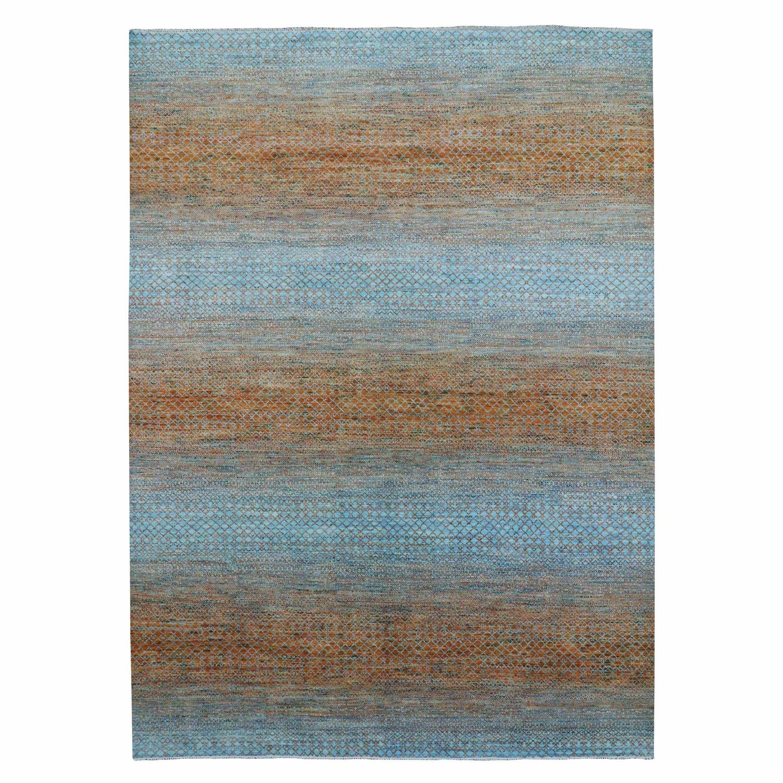 10'1"X14' Orange Pure Wool Hand Knotted Modern Chiaroscuro Collection Rug