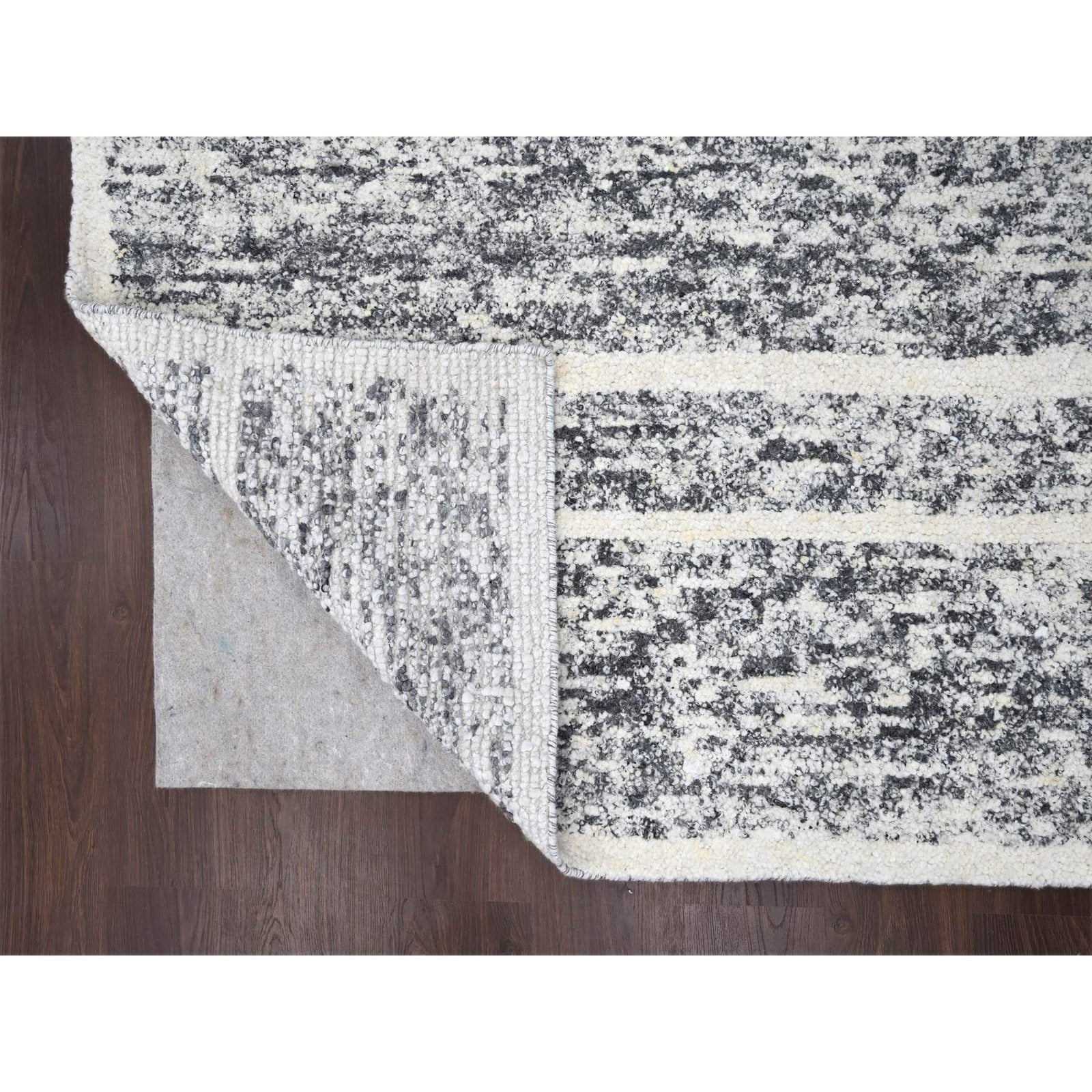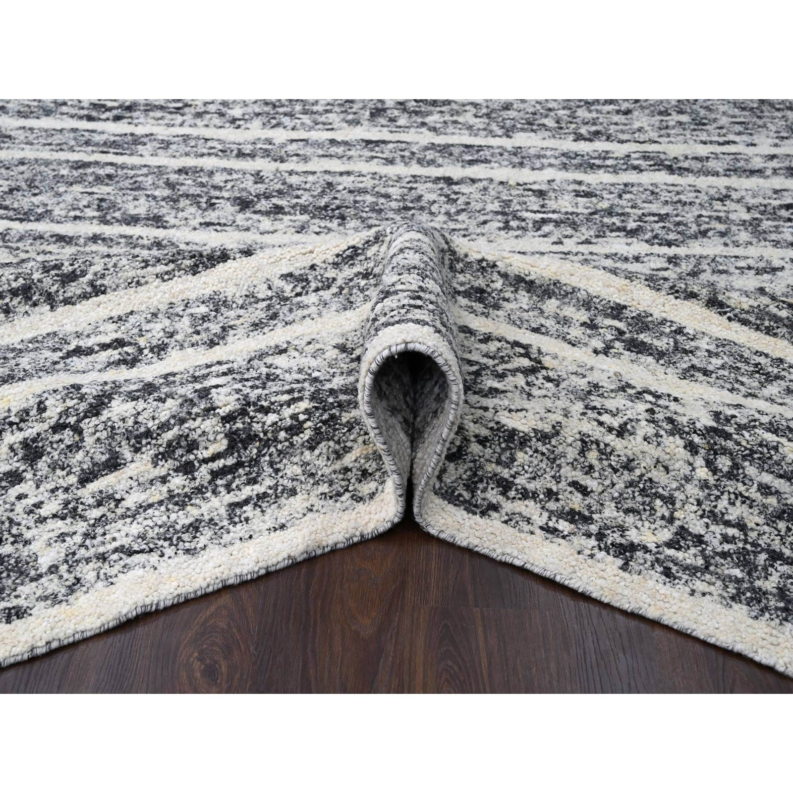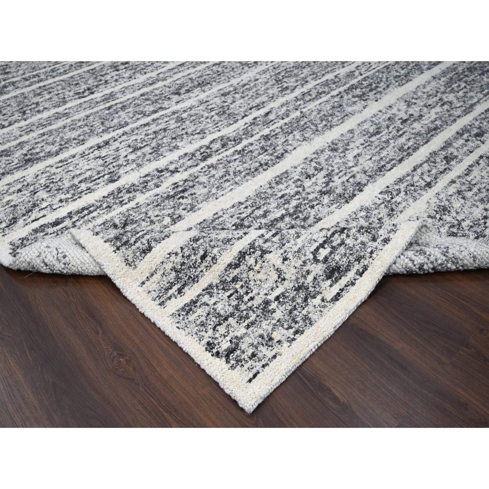 10'3"X14'1" Black And Ivory Modern Striae Design Wool Hand Knotted Rug
