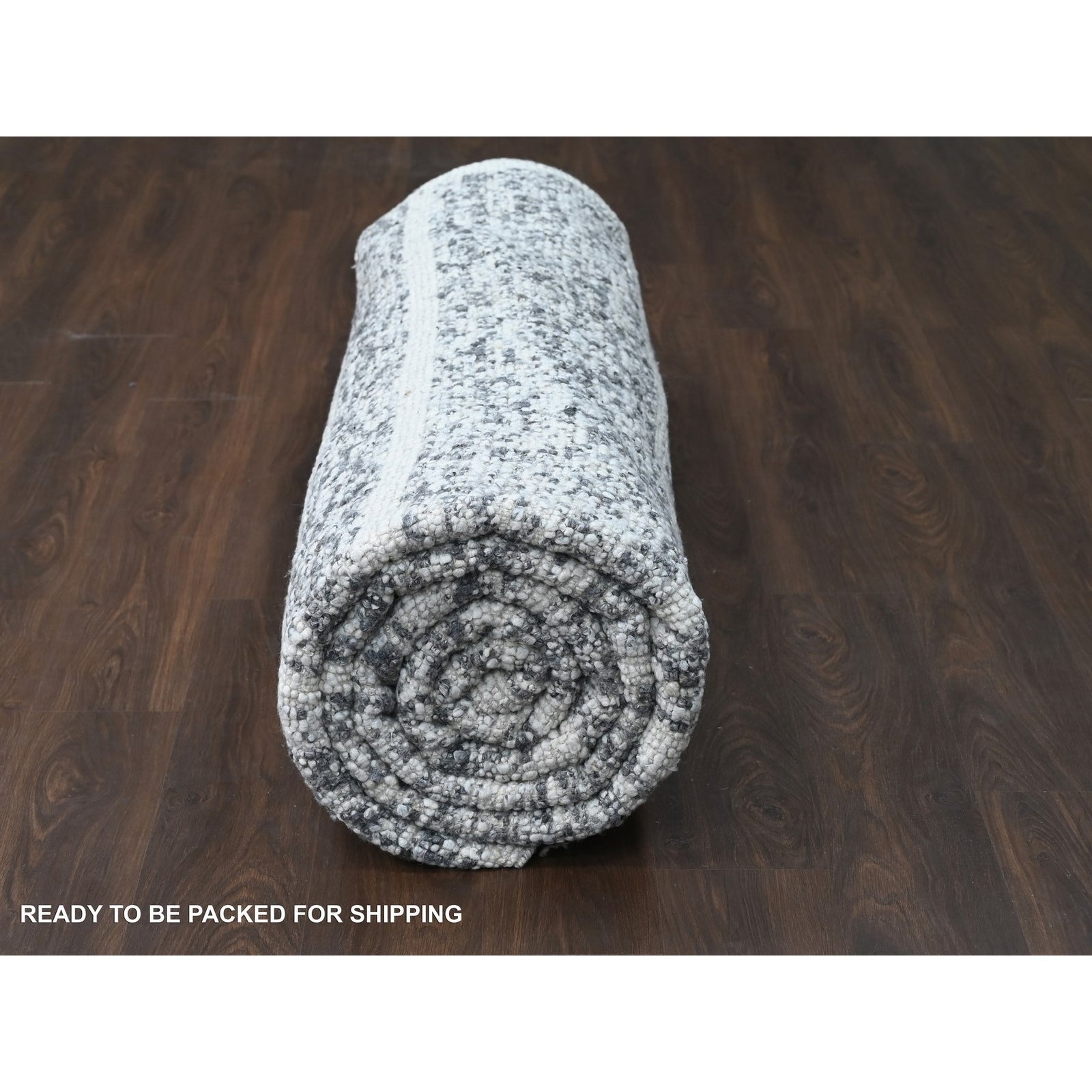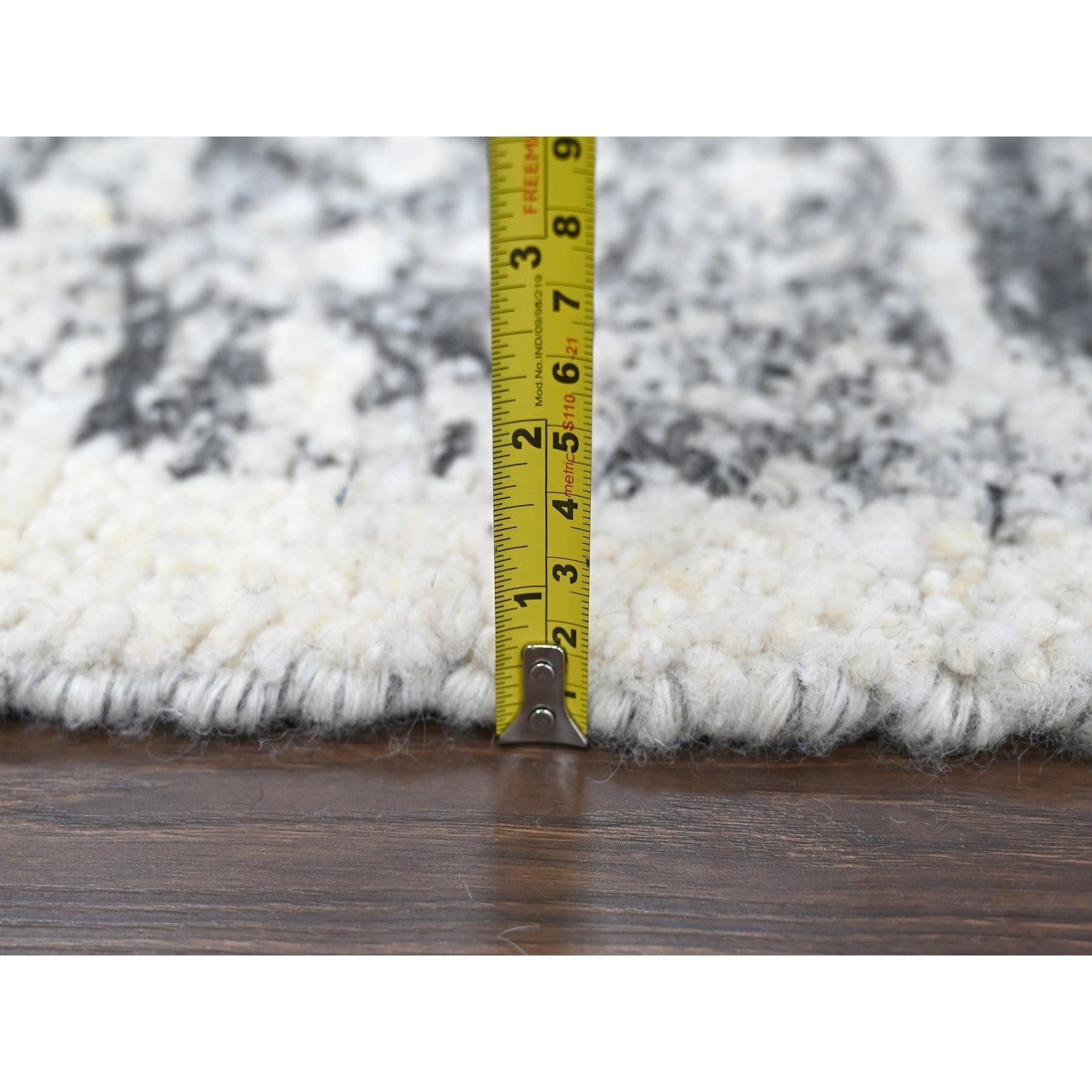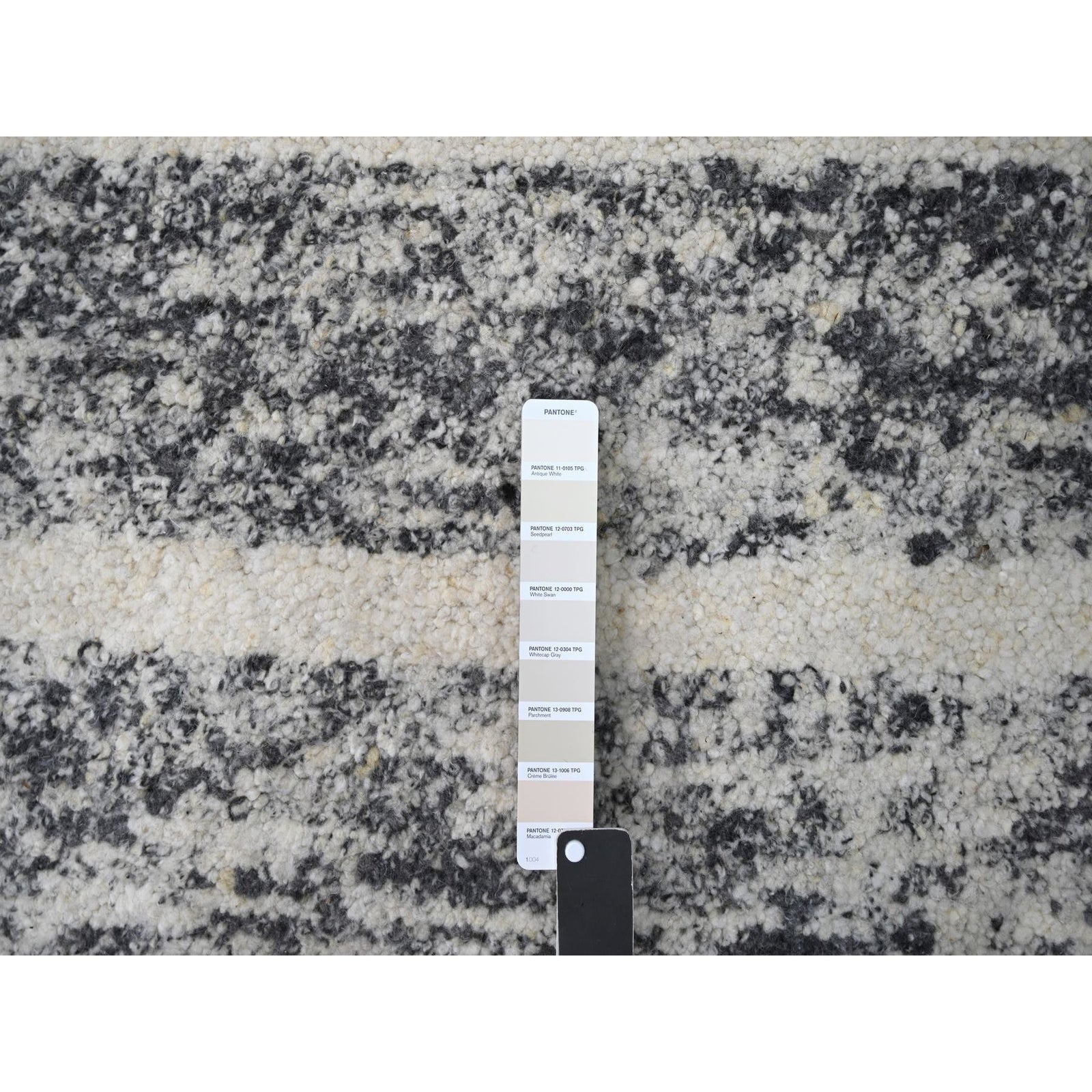 10'3"X14'1" Black And Ivory Modern Striae Design Wool Hand Knotted Rug