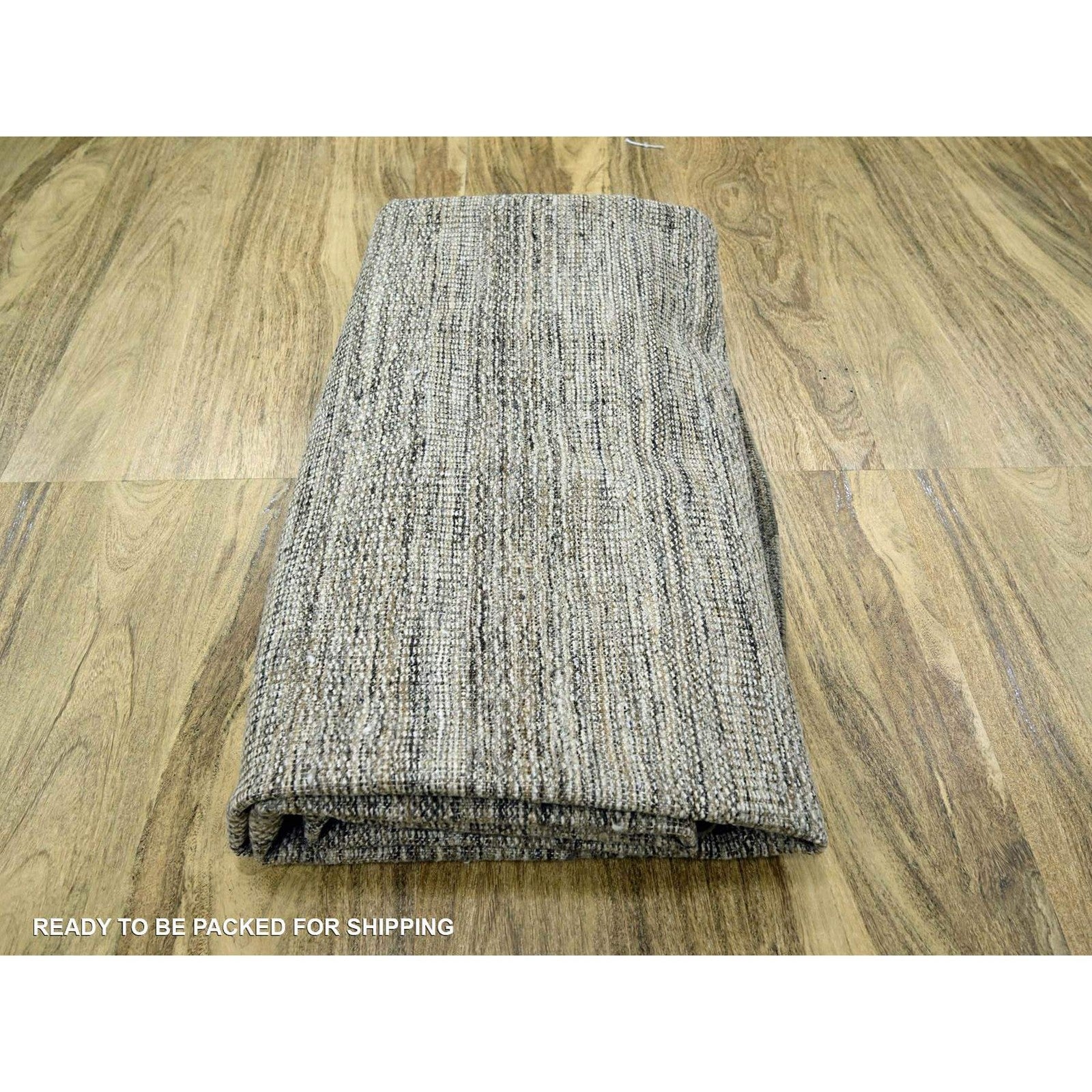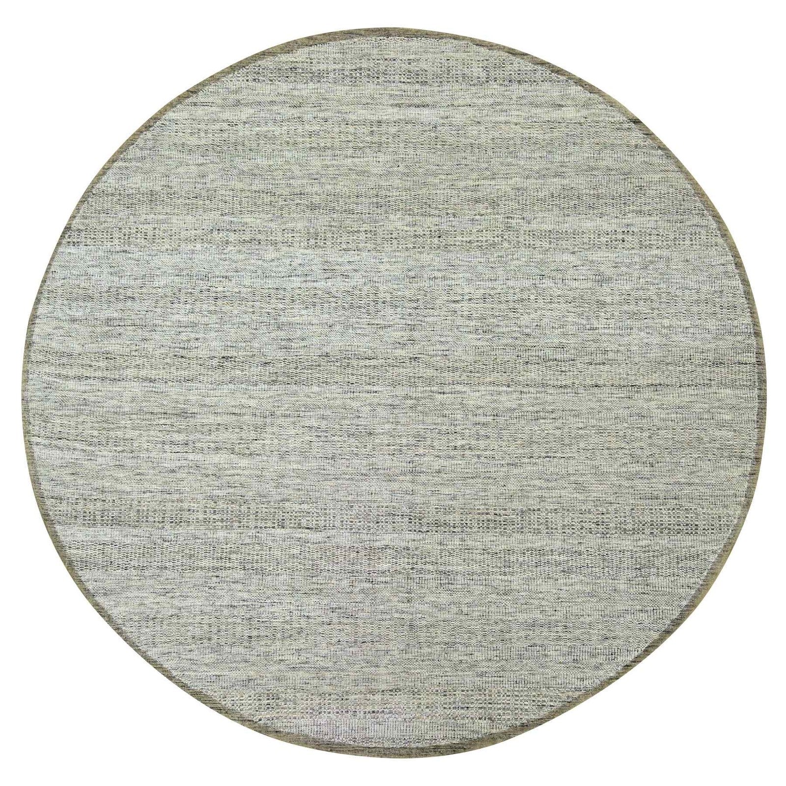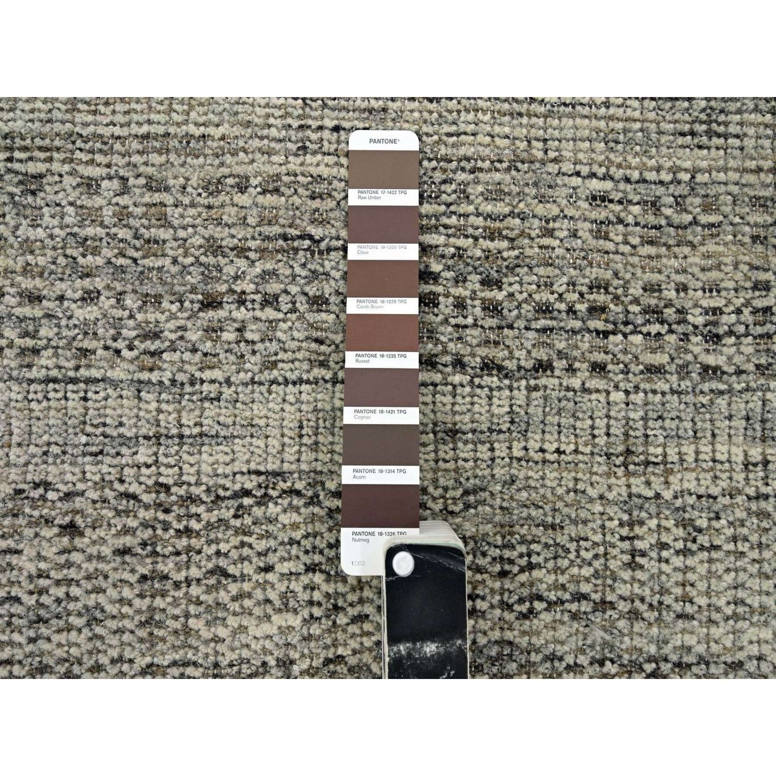10'X10' Brown Hand Knotted Rug Round Pure Wool Distressed Grass Design