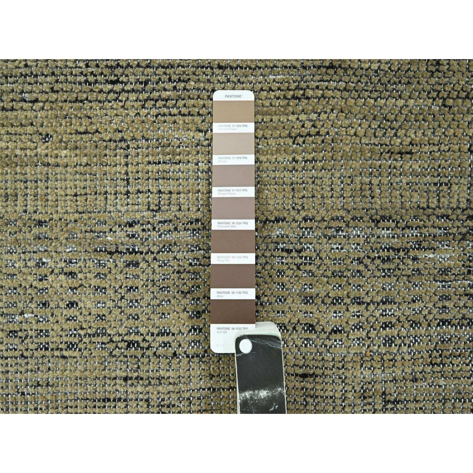 10'X10' Brown Pure Wool Rug Hand Knotted Distressed Grass Design Round
