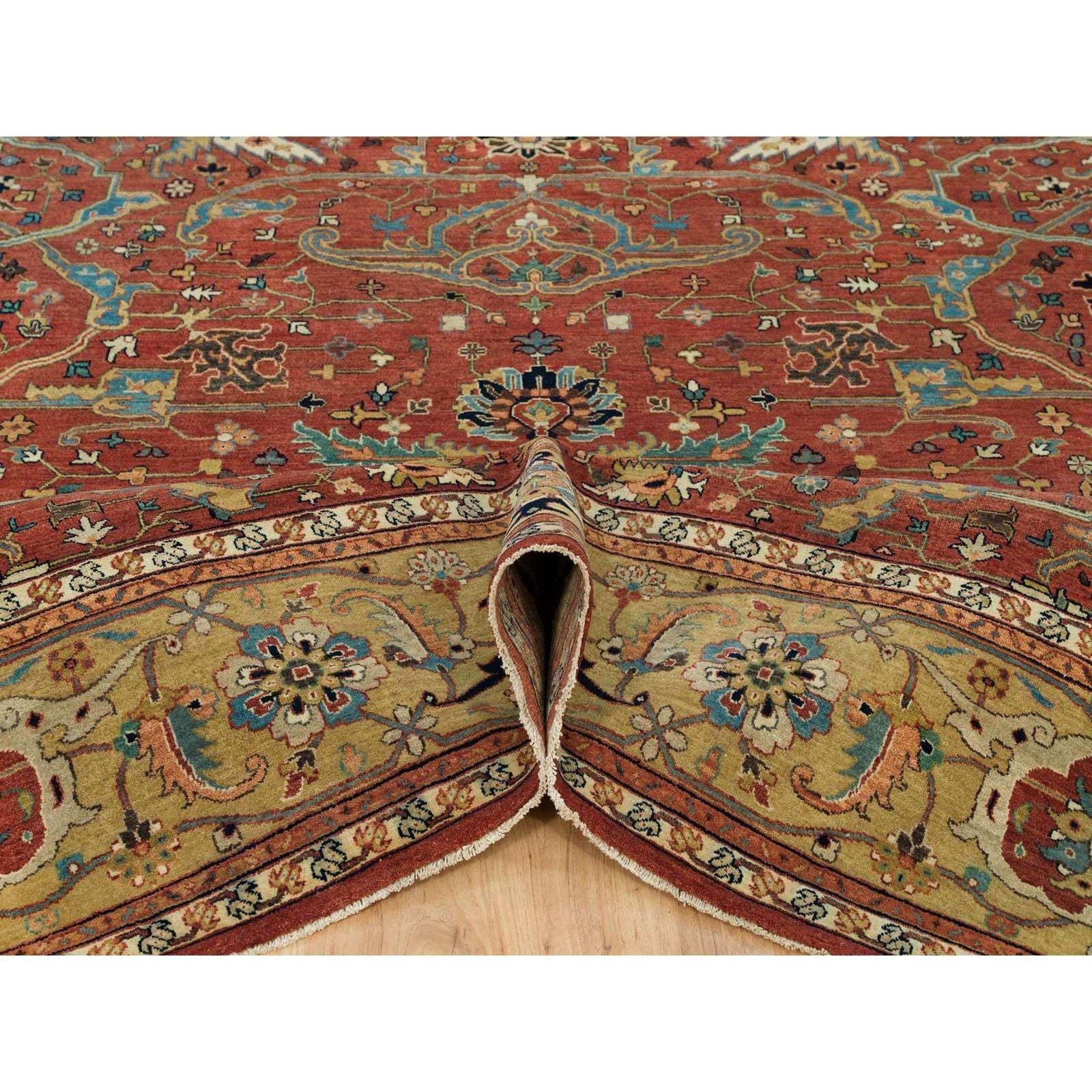 10'X10' Henna Red Antiqued Heris Hand Knotted Wool Square Oriental Rug