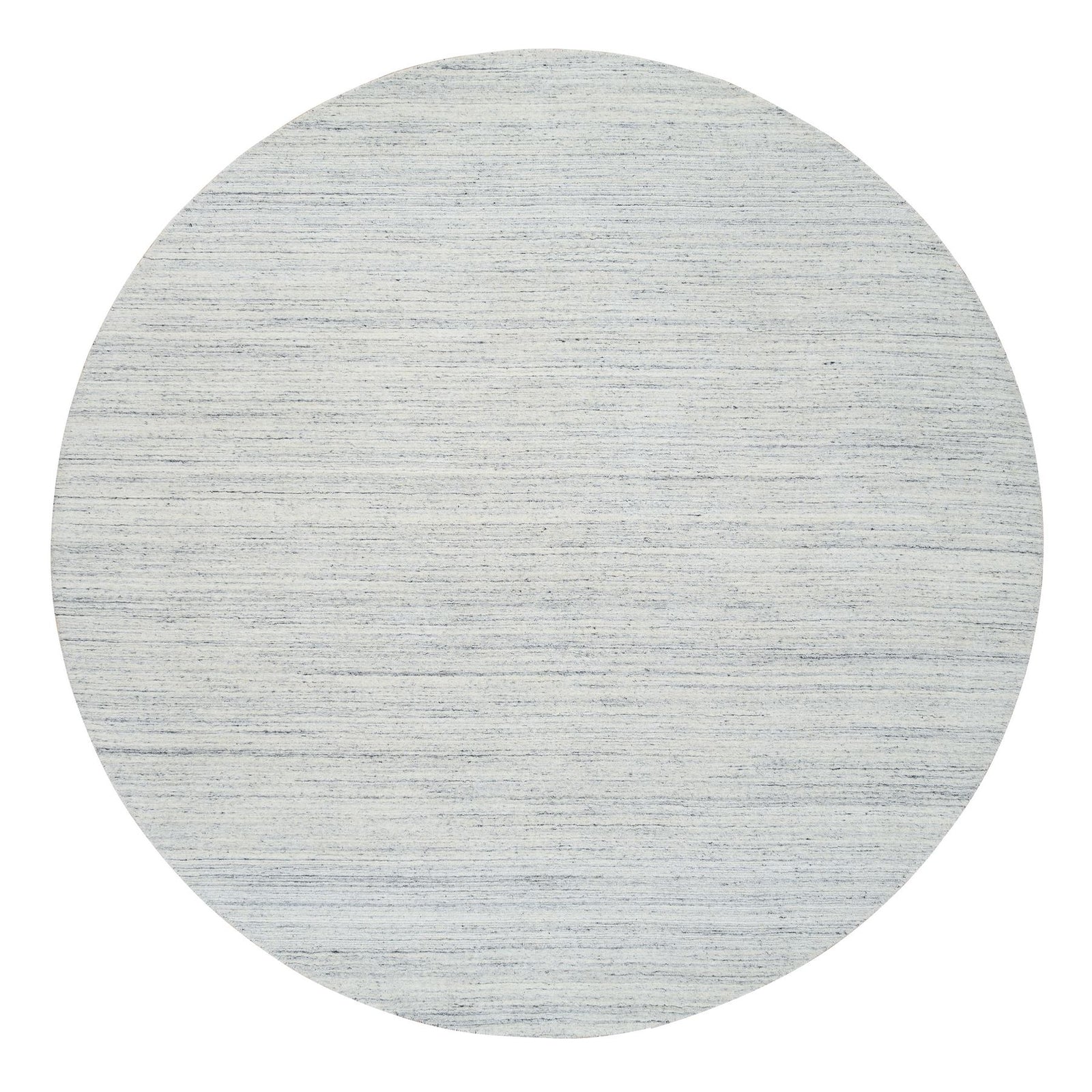 10'X10' Ivory Hand Loomed Plain Modern Striae Design Wool Round Rug