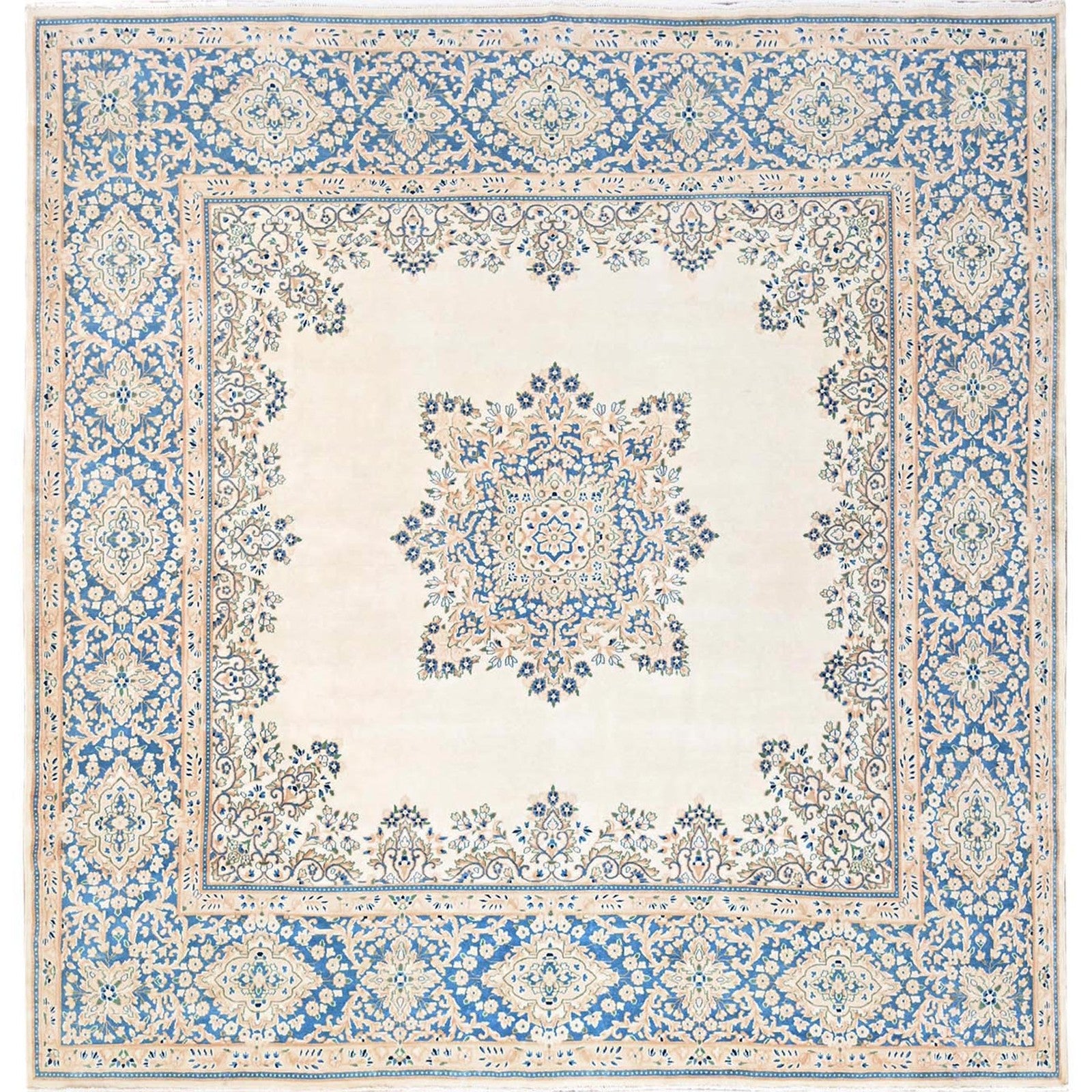10'X10' Ivory Vintage Zoroastrian Karman Square Soft Wool Hand Knotted Rug