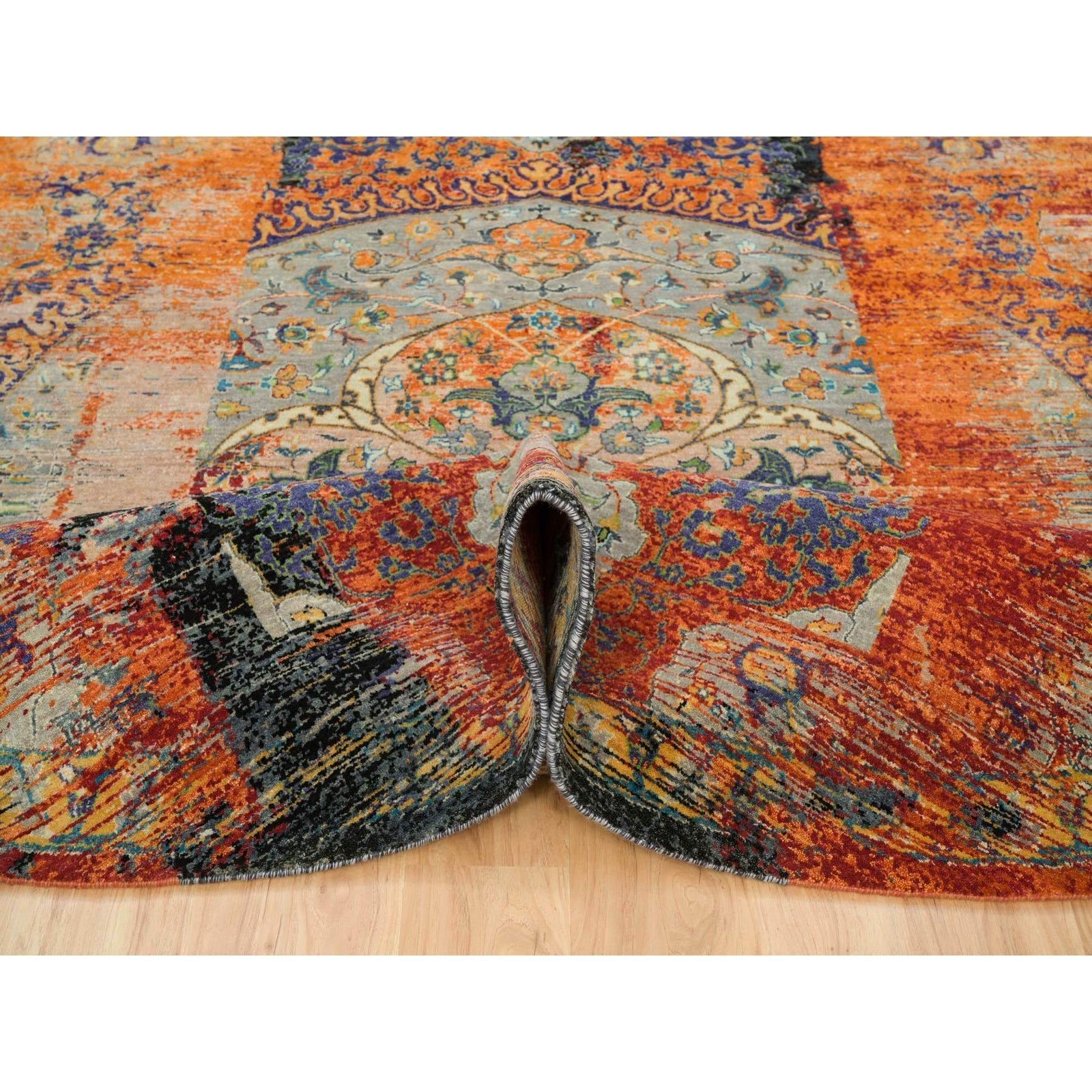 10'X10' Orange Ancient Ottoman Erased Design Wool Hand Knotted Round Rug