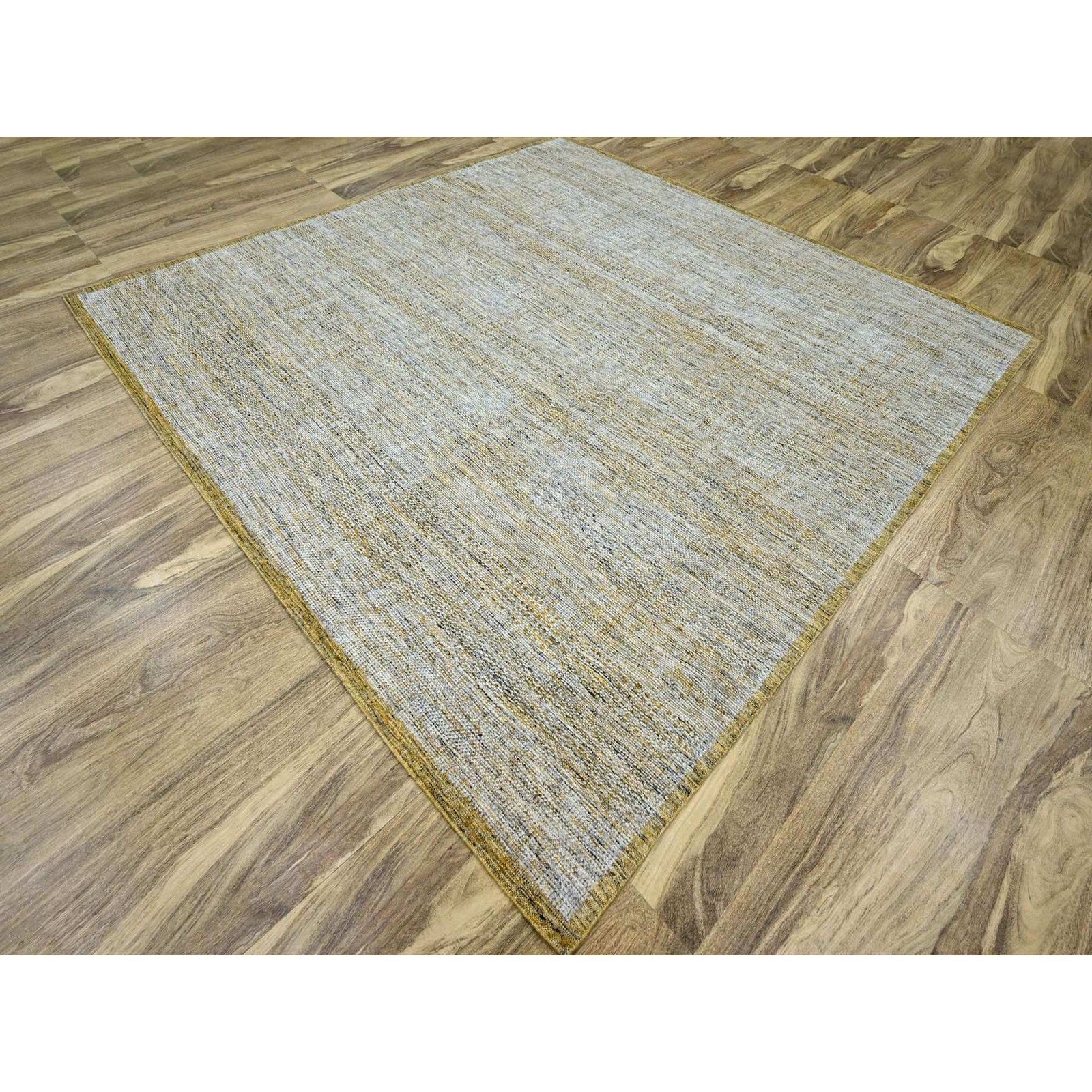 10'X10' Yellow Hand Knotted Rug Oxidized Grass Design Pure Wool Square