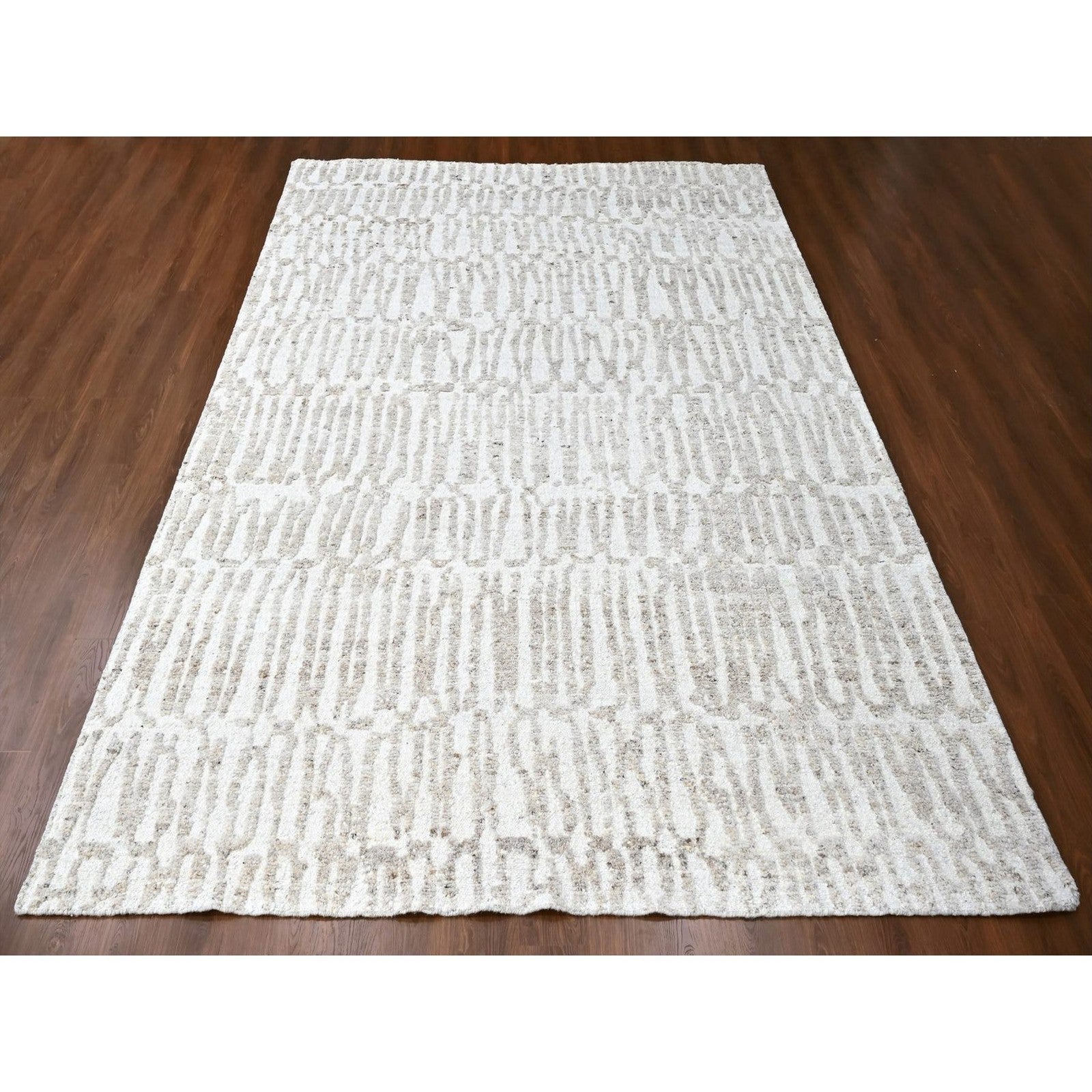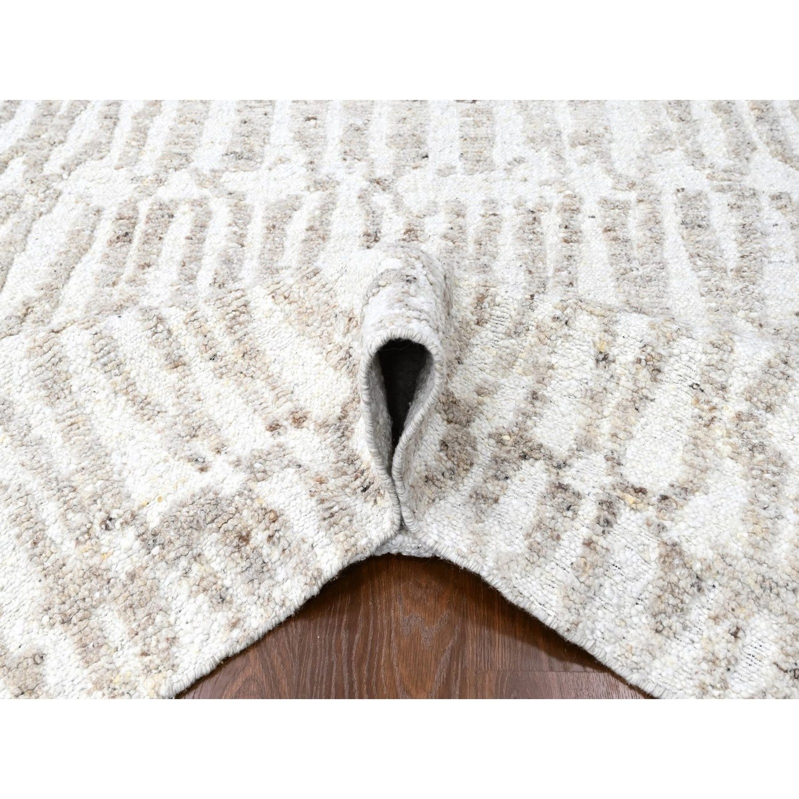 10'X13'10" Ivory Minimalist Swedish Design Hand Knotted Pure Wool Rug