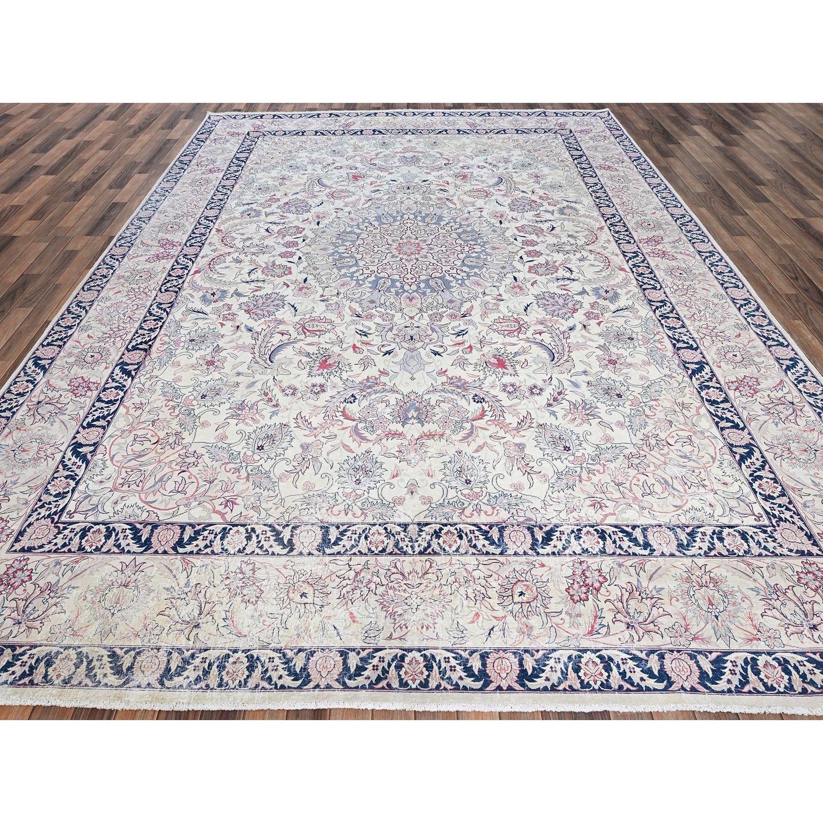 10'X13'2" Ivory Vintage Sino Tebraz 300 Kpsi Soft Wool Hand Knotted Rug
