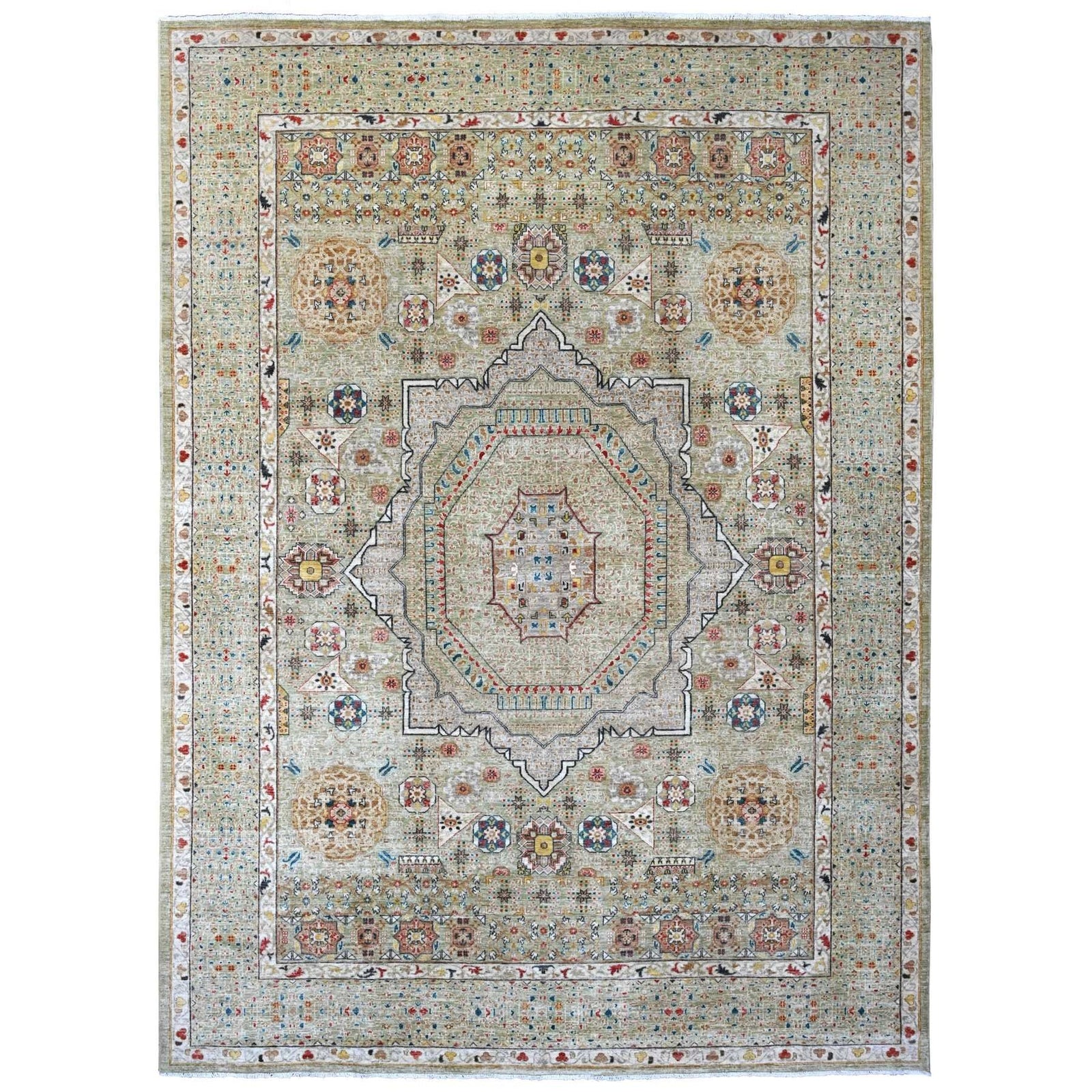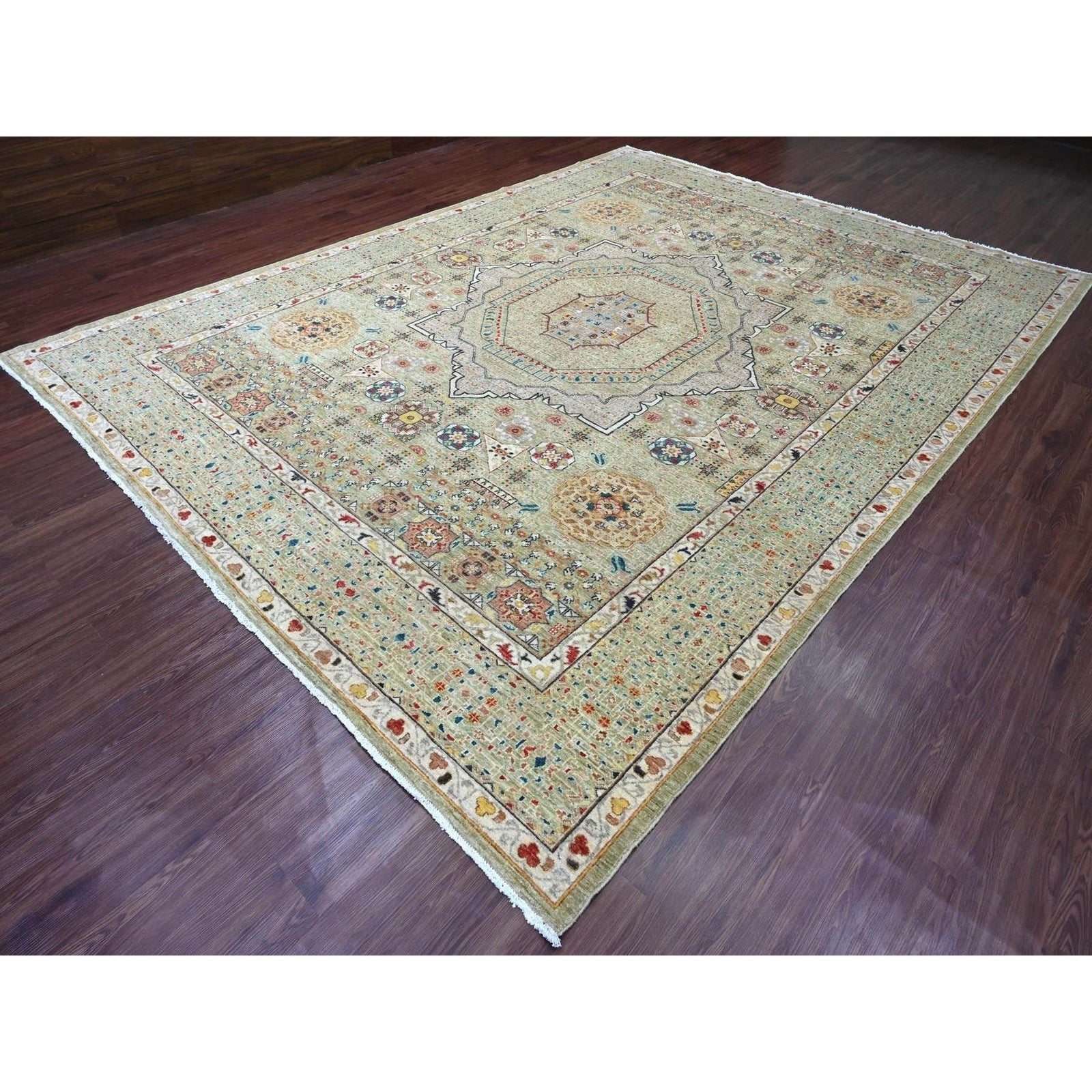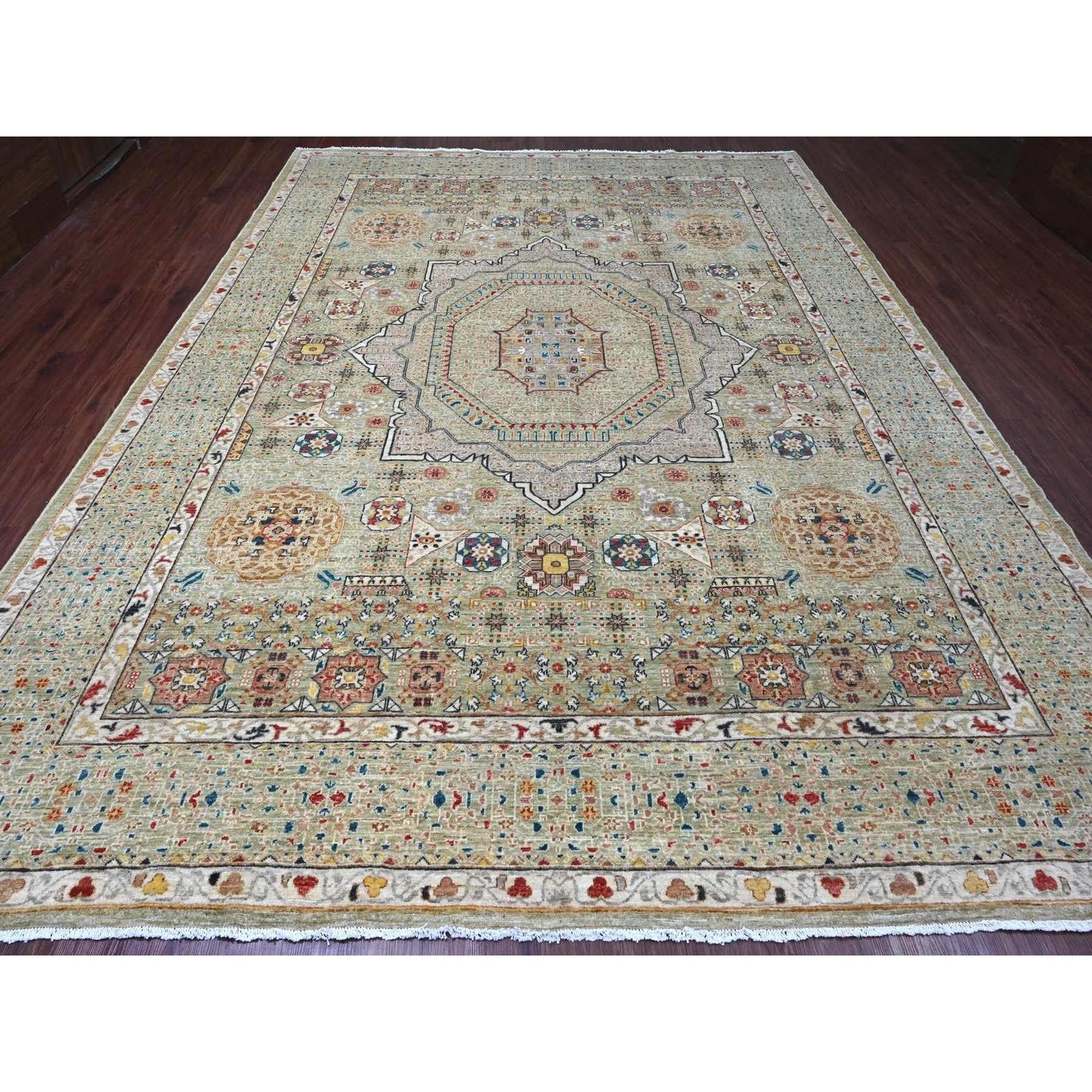 10'X13'4" Green 14Th Century Mamluk Dynasty Pattern Hand Knotted Wool Rug