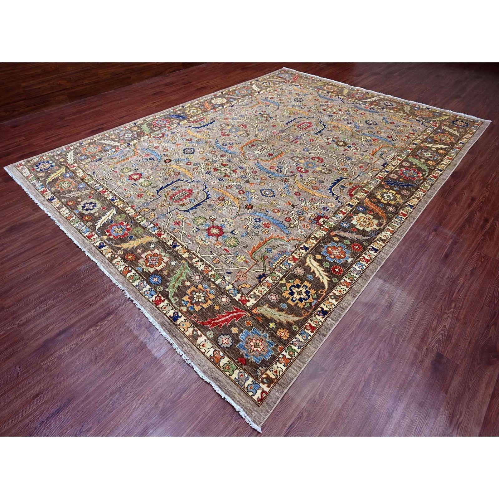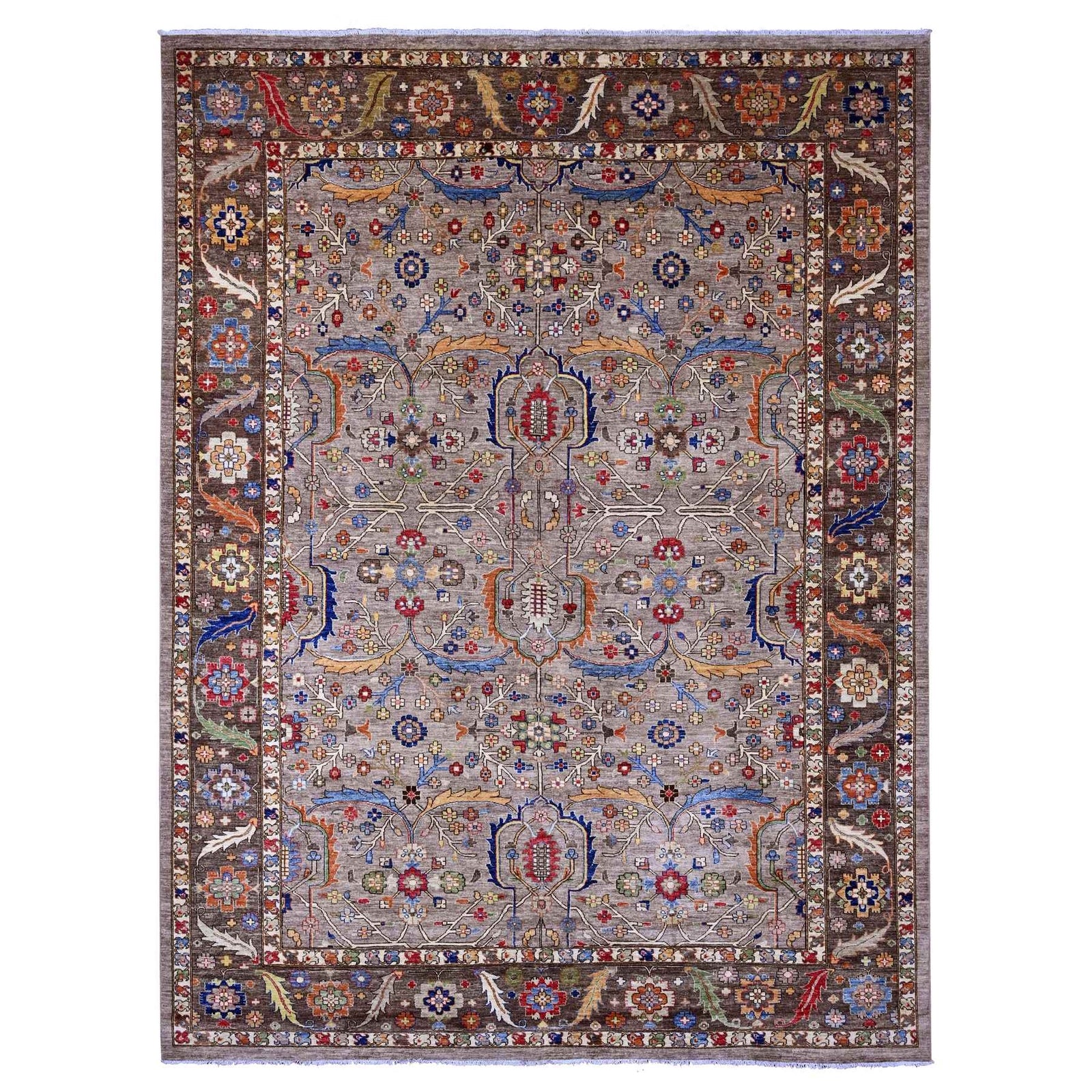 10'X13'4" Stone Gray Peshawar Heris All Over Design Wool Hand Knotted Rug