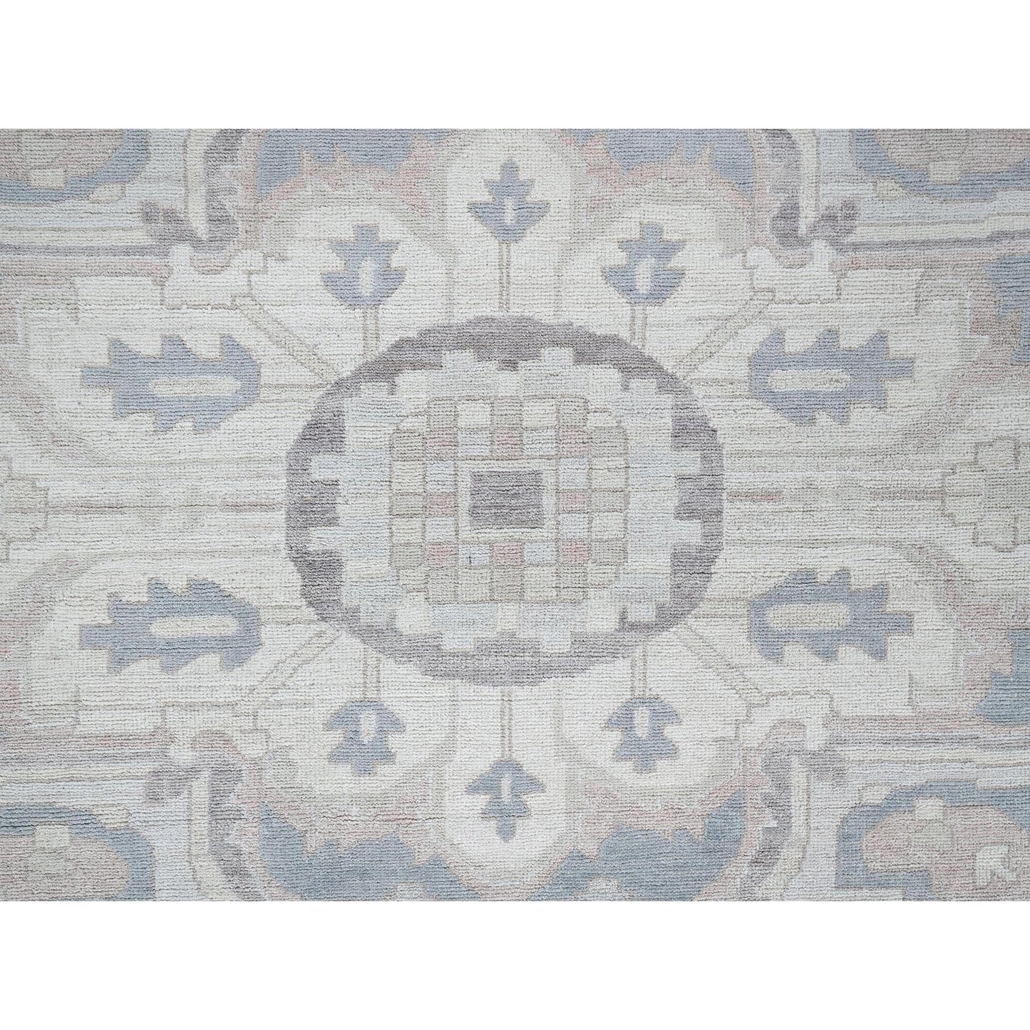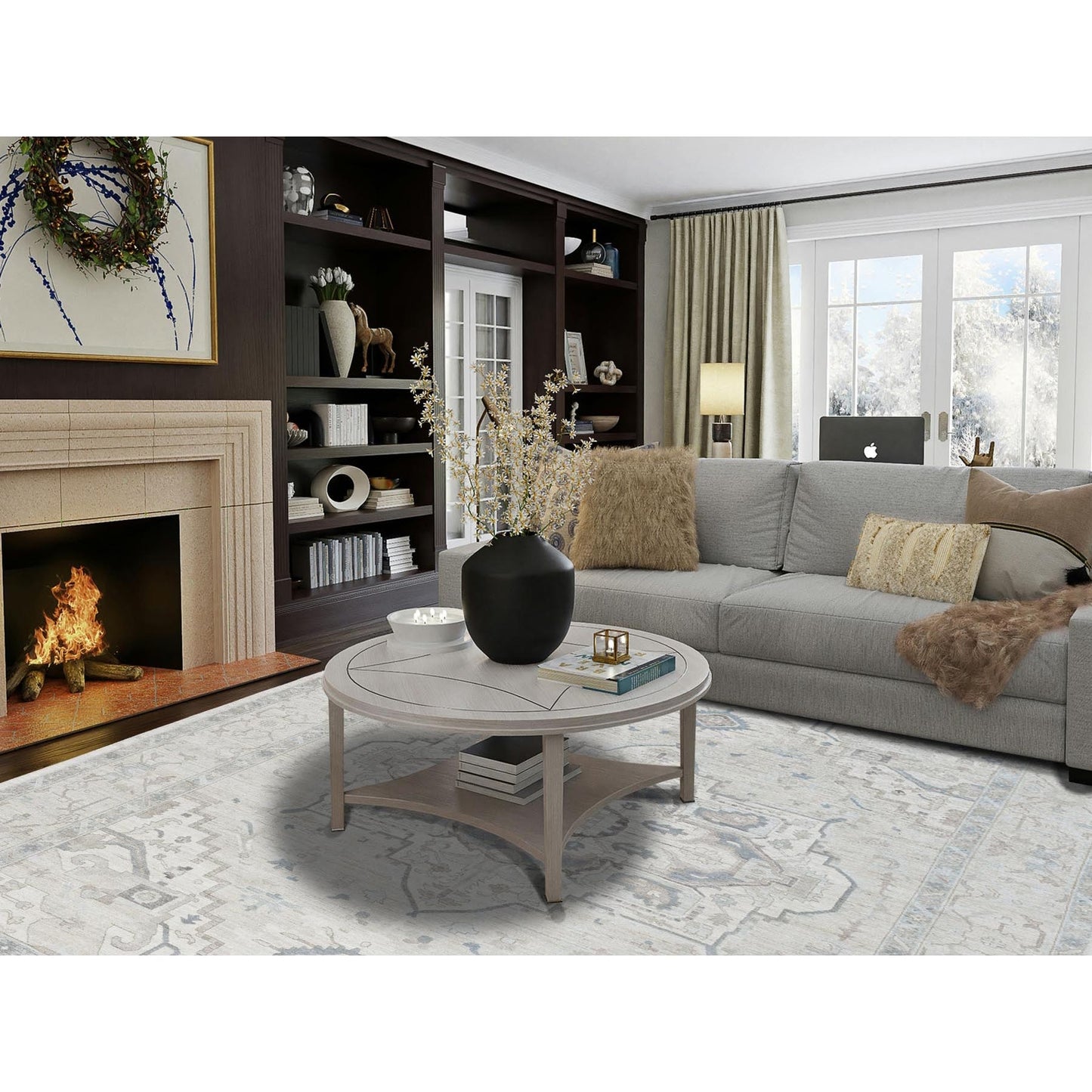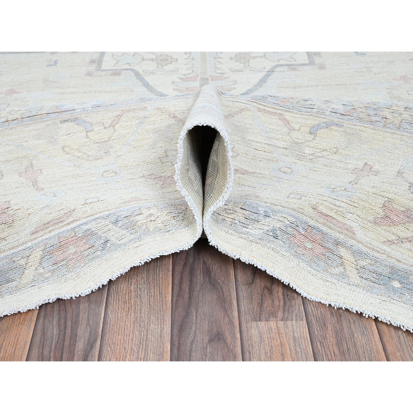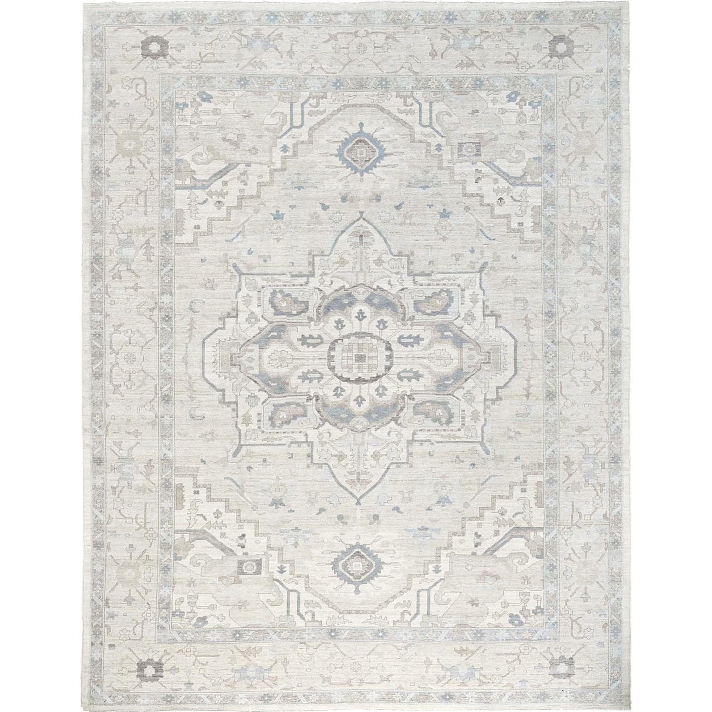 10'X13'7" White Wash Peshawar With Heris Design Hand Knotted Pure Wool Rug