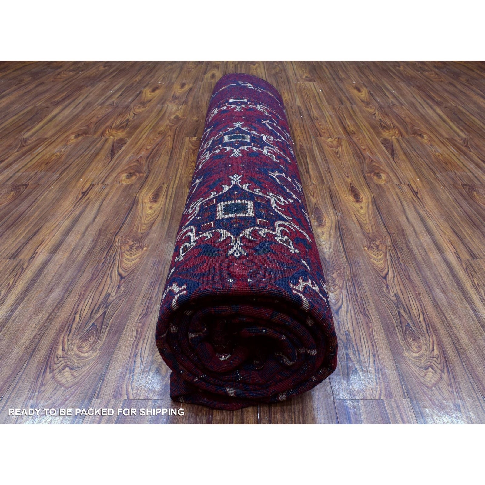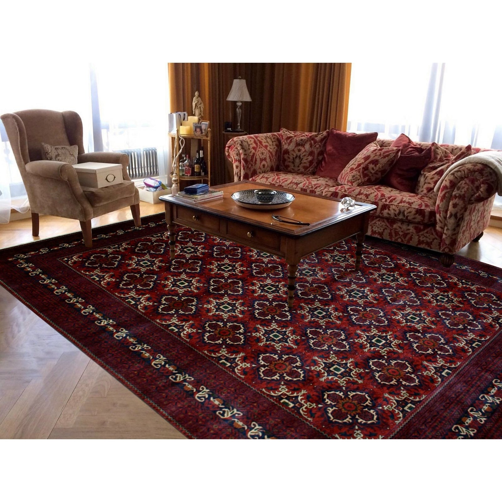 10'X13'8" Red Afghan Khamyab Soft Wool Geometric Design Hand Knotted Rug