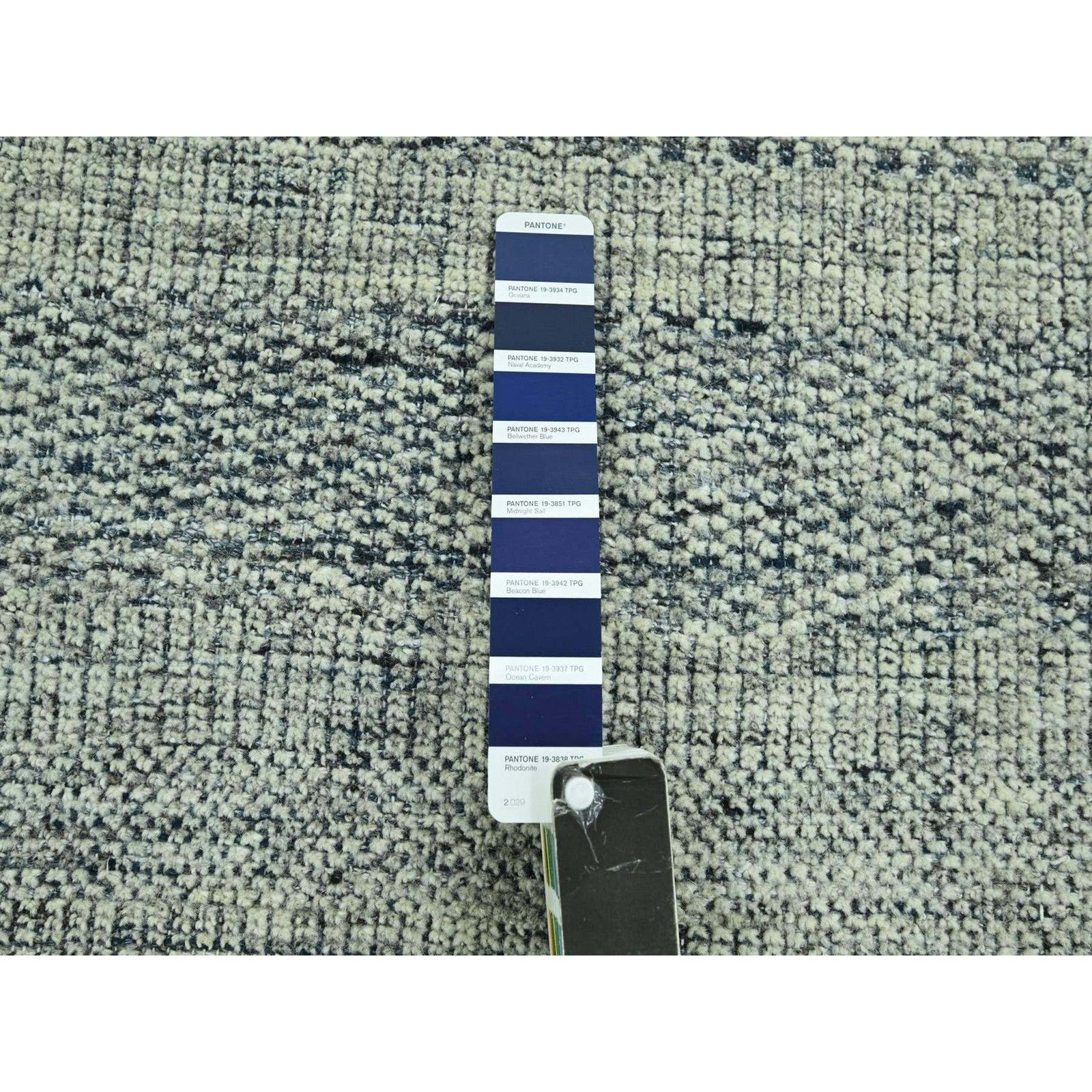 10'X13'9" Blue Distressed Rug Hand Knotted Pure Wool Oxidized Grass Design
