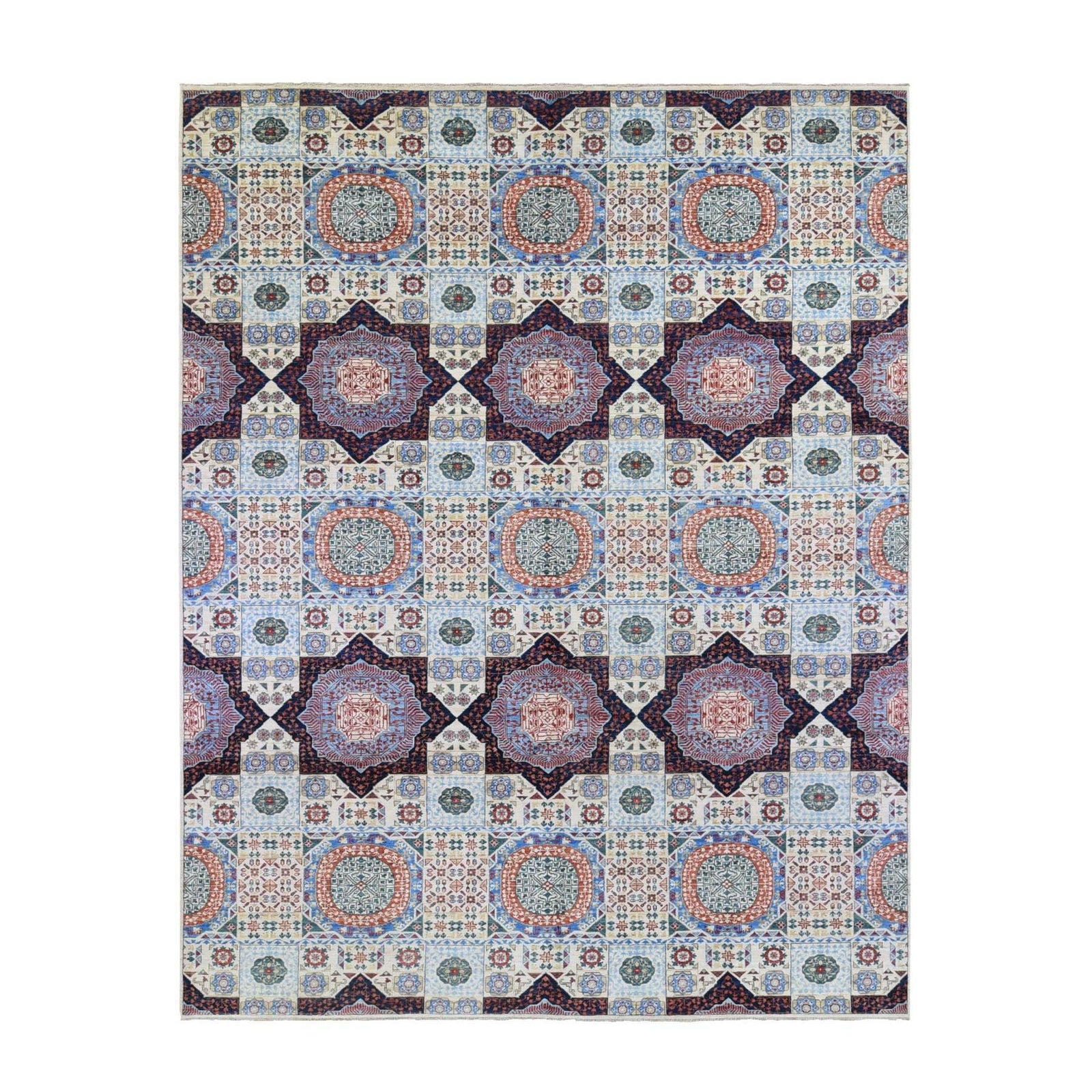 10'X13'9" Blue Hand Knotted Mamluk Repetitive Design Wool Oriental Rug