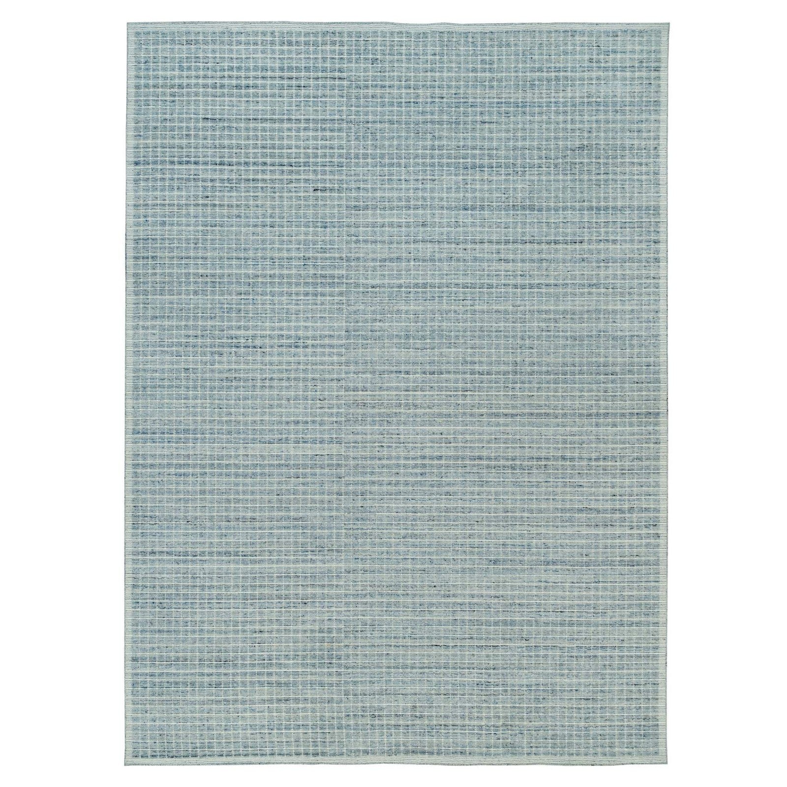 10'X13'9" Mercury Blue Loomed Knotted Wool Modern Box Design Oriental Rug