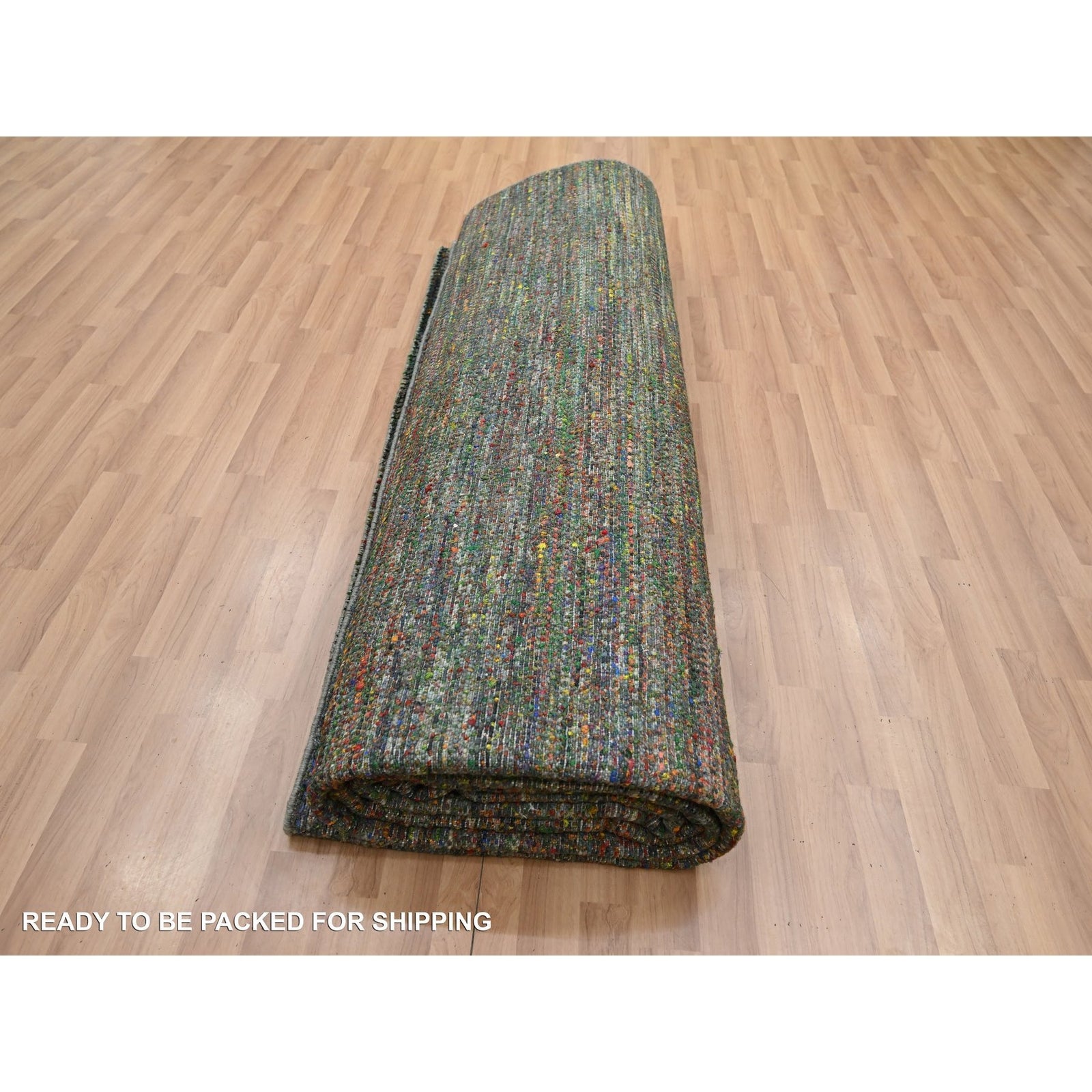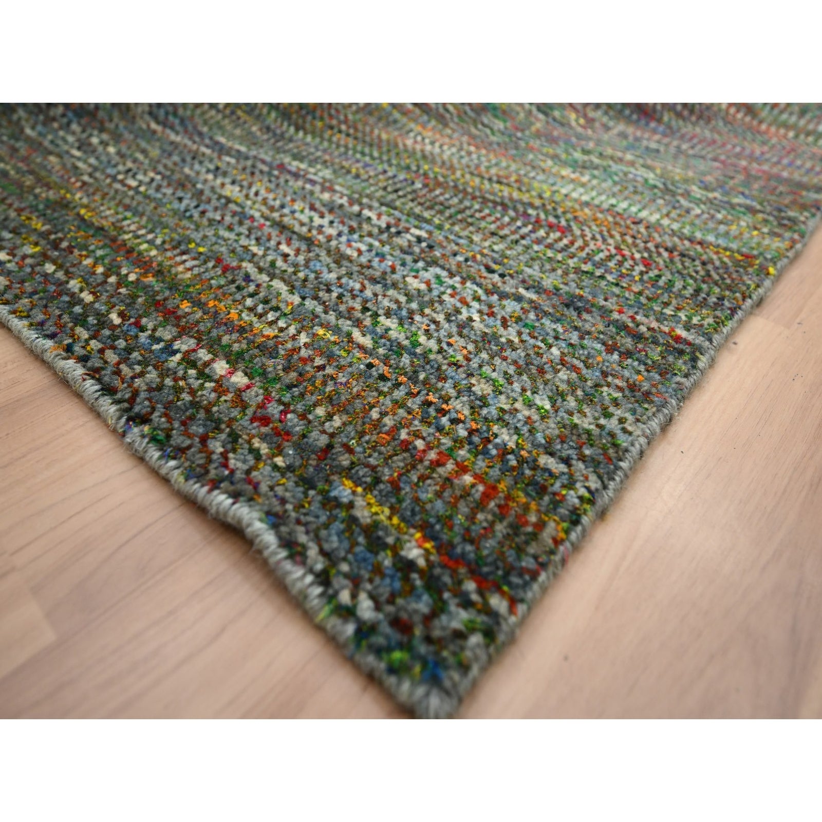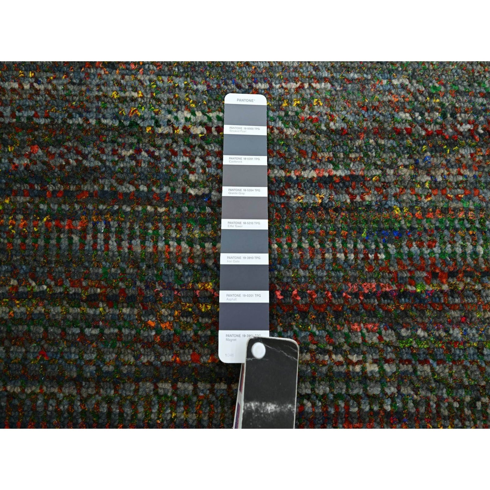 10'X14' Asphalt Black Modern Grass Design Wool And Silk Hand Knotted Rug