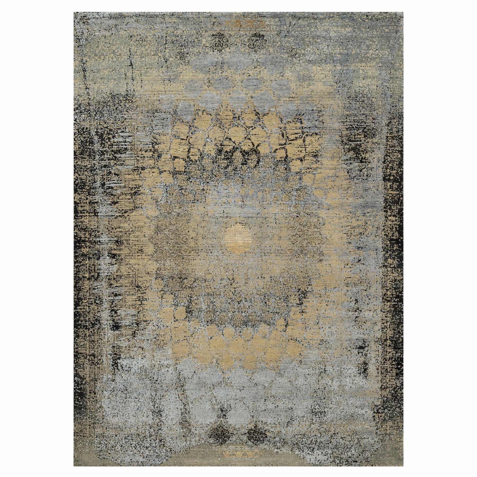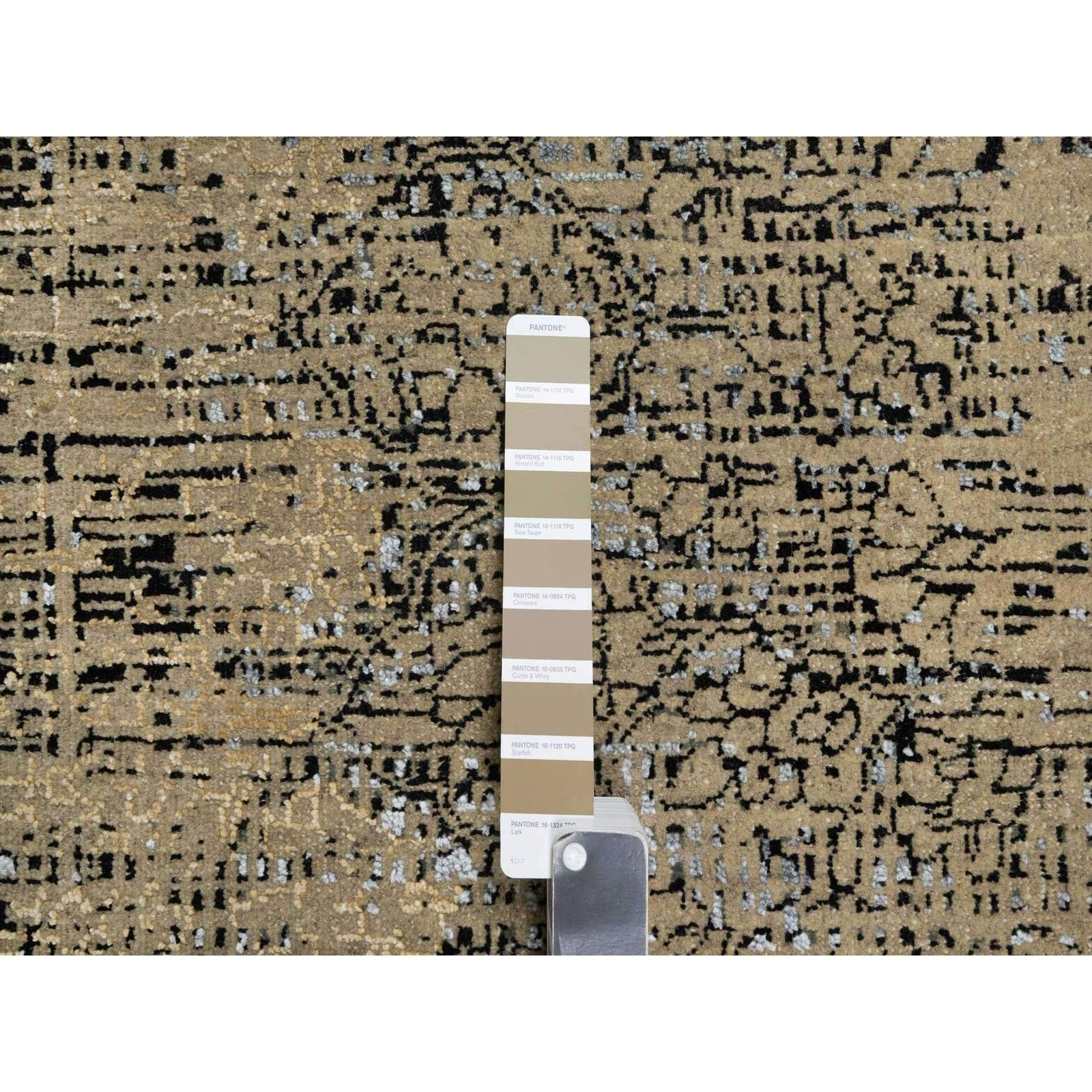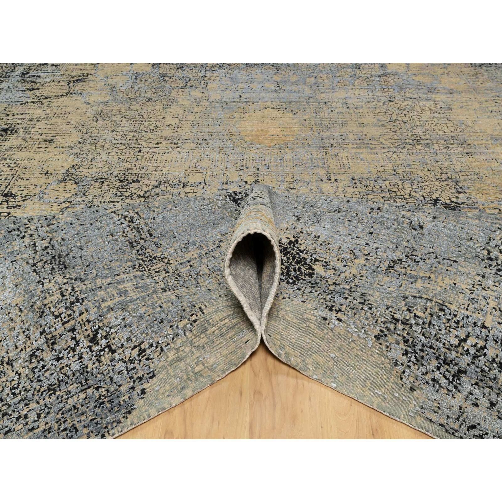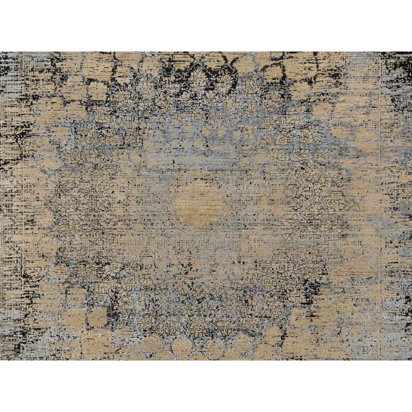 10'X14' Brown Broken And Erased Hand Knotted Silk And Wool Oriental Rug