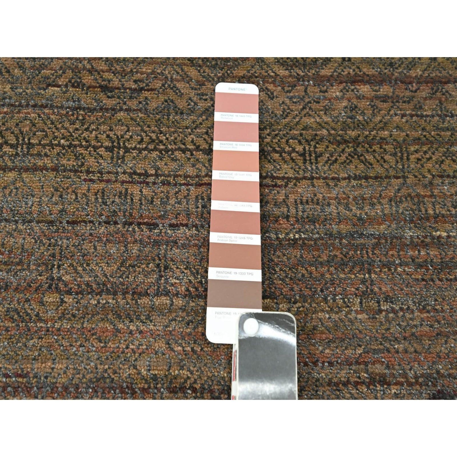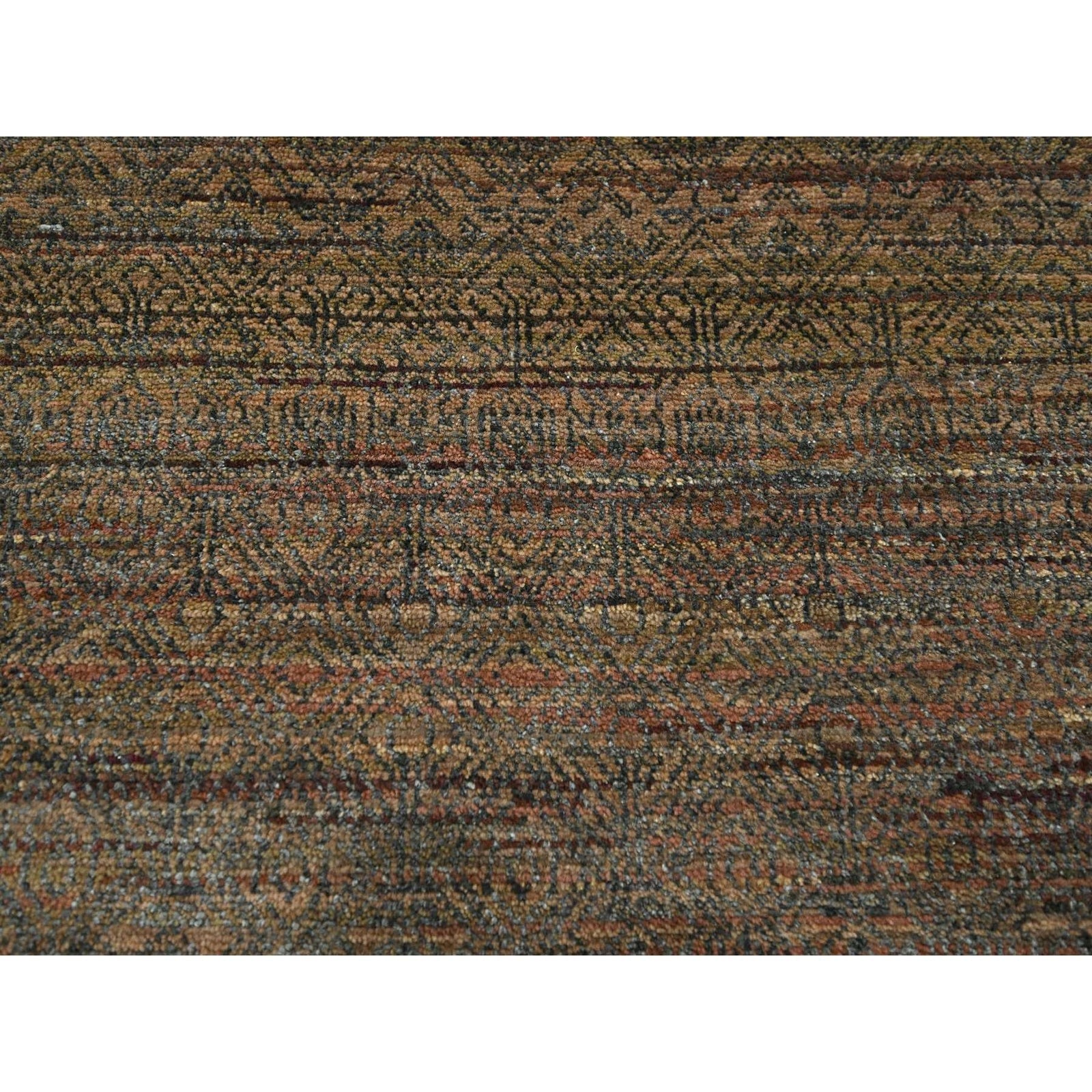 10'X14' Cinnamon Brown Modern Grass Design Hand Knotted Wool And Silk Rug