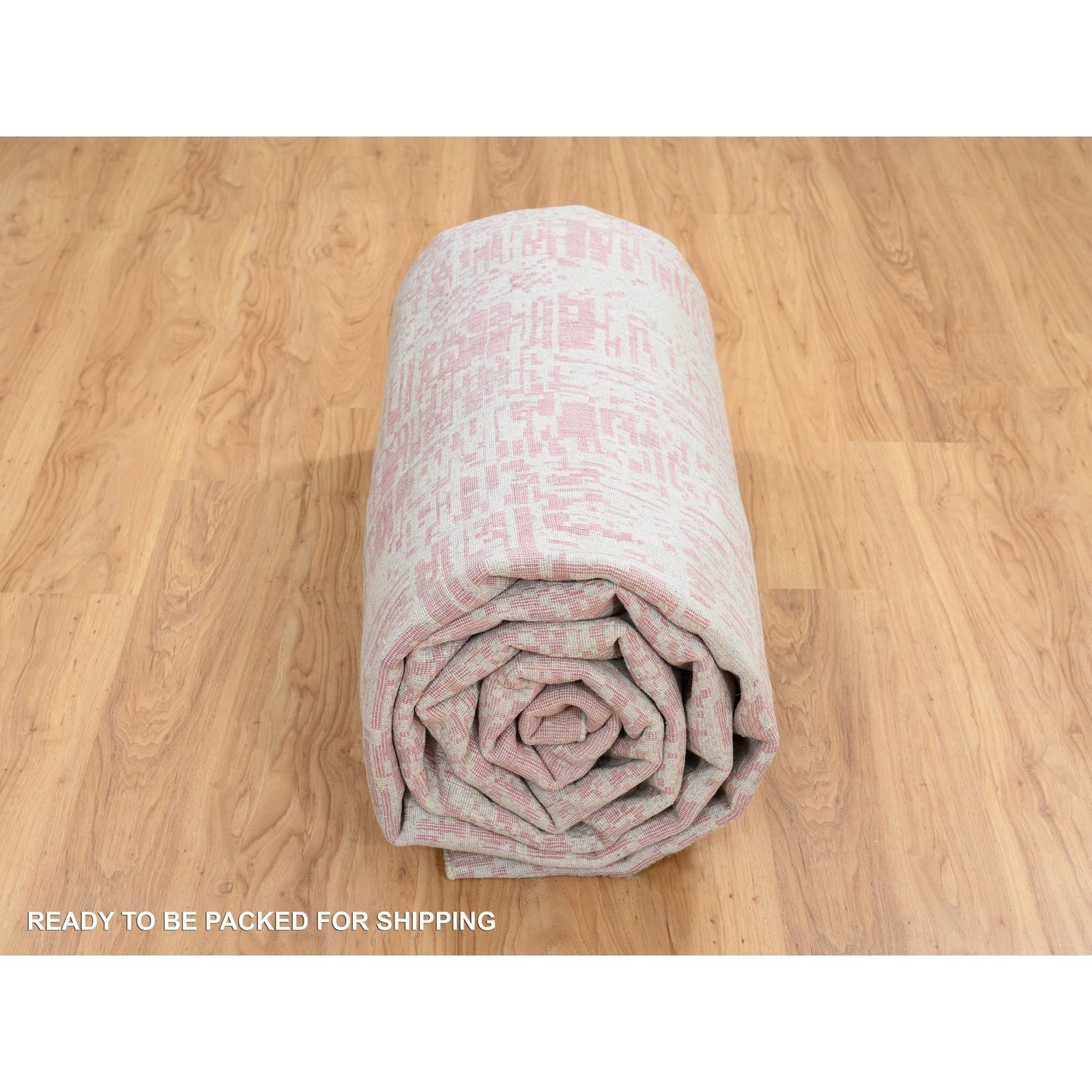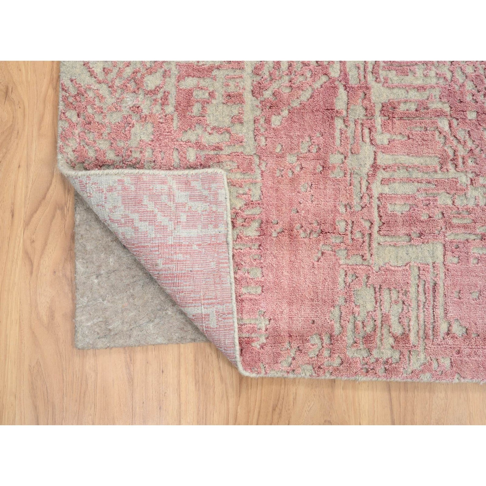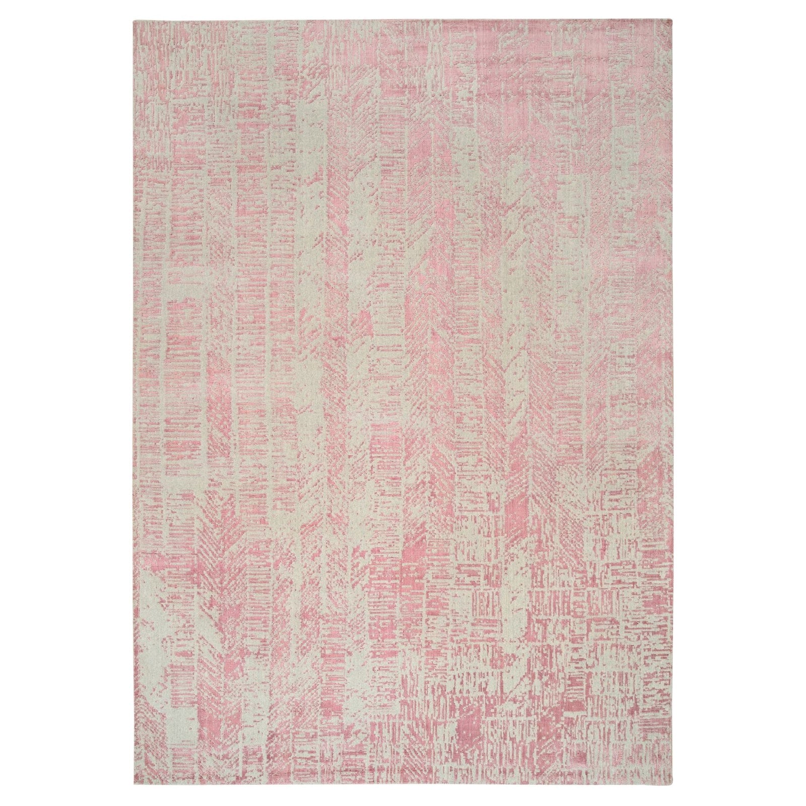 10'X14' Rose Pink Wool And Art Silk Jacquard Hand Loomed Rug