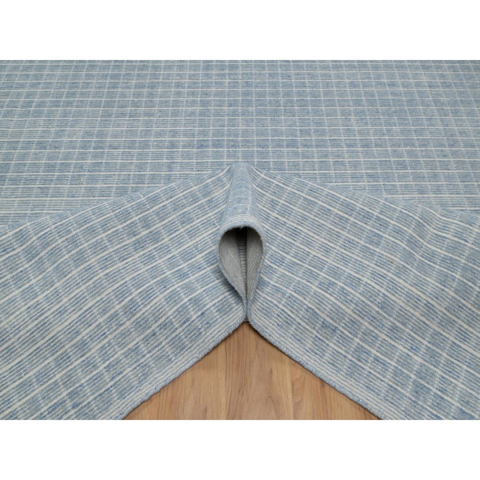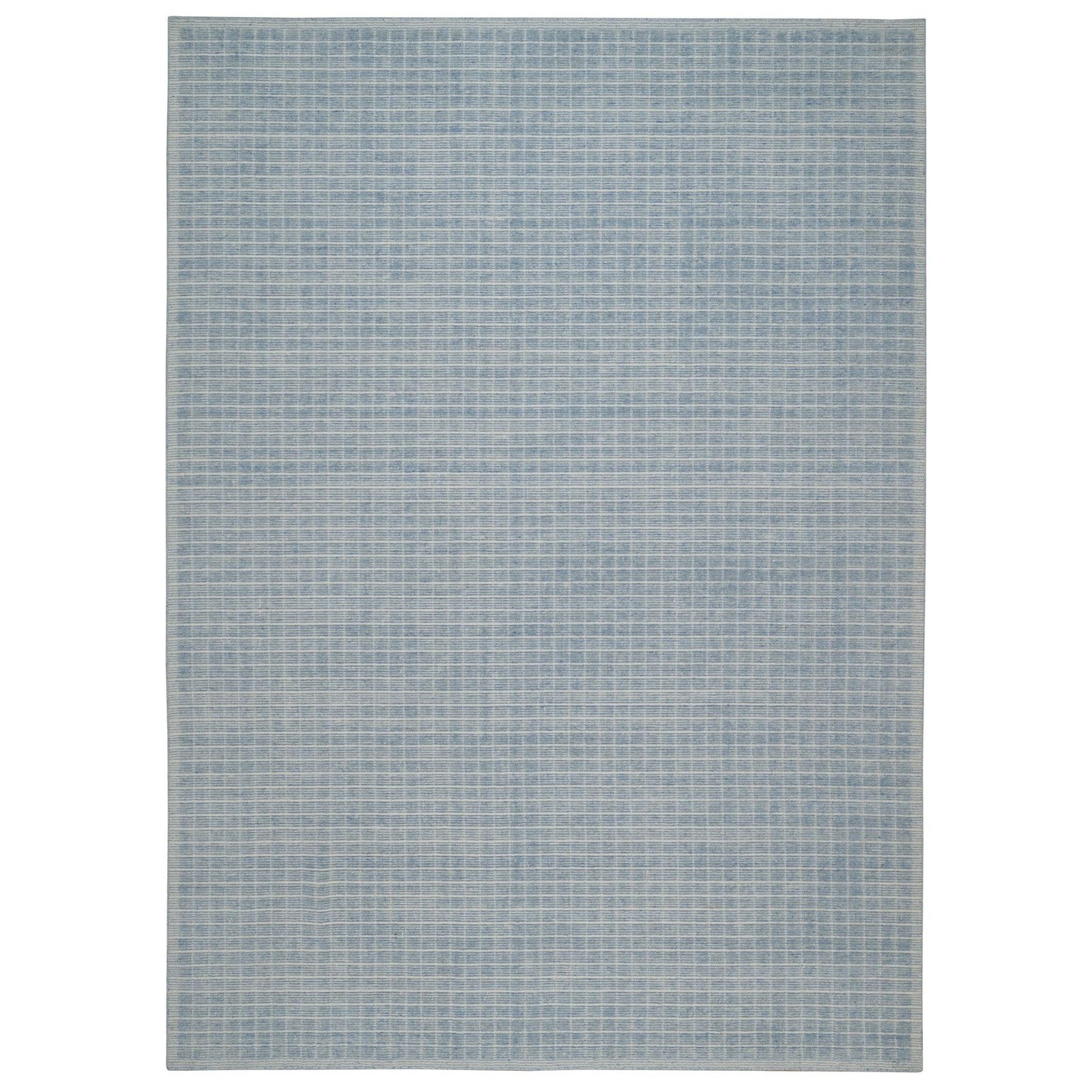 10'X14' Yonder Blue Modern Plain Decor Box Design Loomed Knotted Wool Rug
