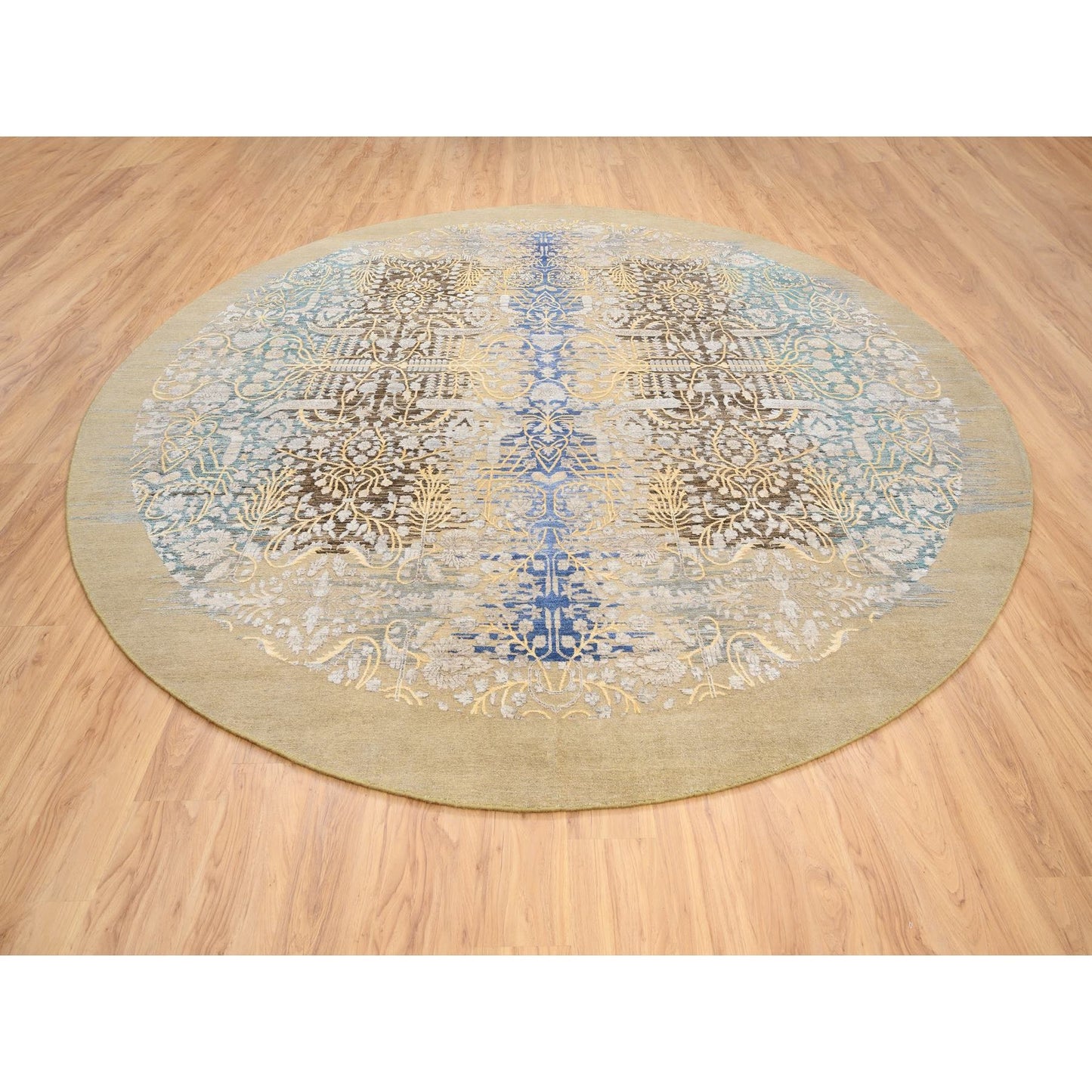 11'10"X11'10" Gold Brown Hand Knotted Saroogh Silk With Wool Round Rug