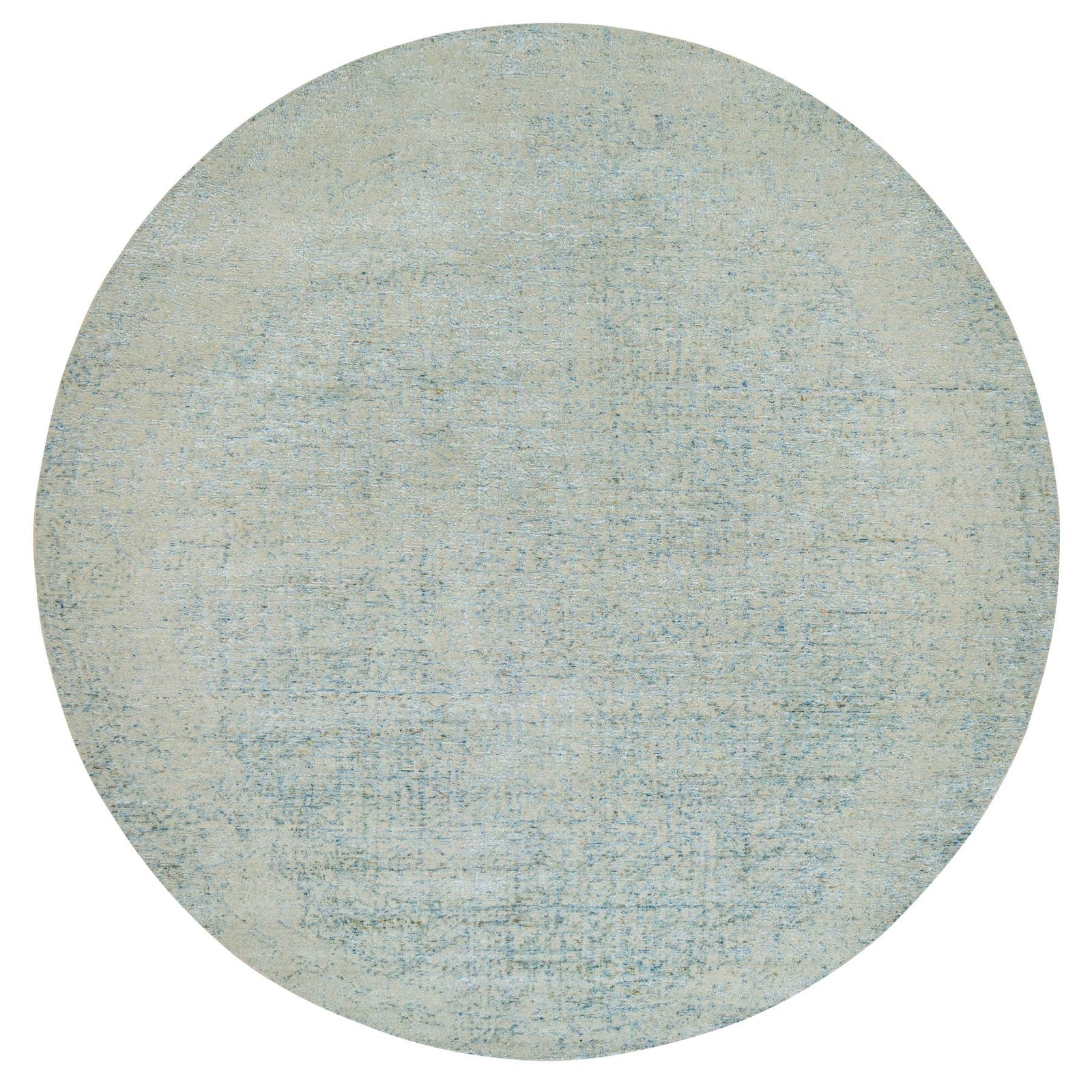 11'10"X11'10" Gray Wool And Silk Modern Jacquard Hand Loomed Round Rug