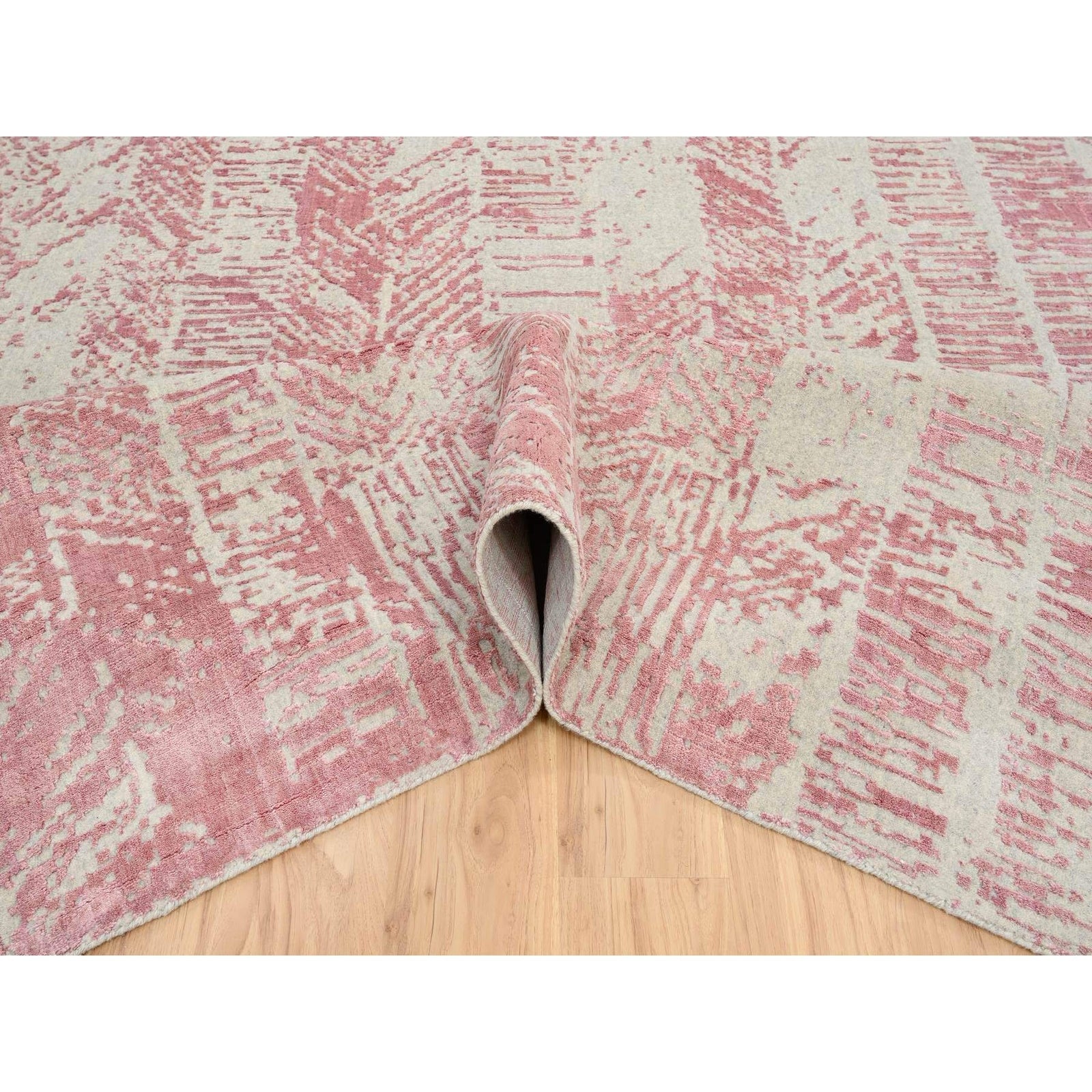 11'10"X17'10" Pink Wool And Art Silk Jacquard Hand Loomed Oversized Rug