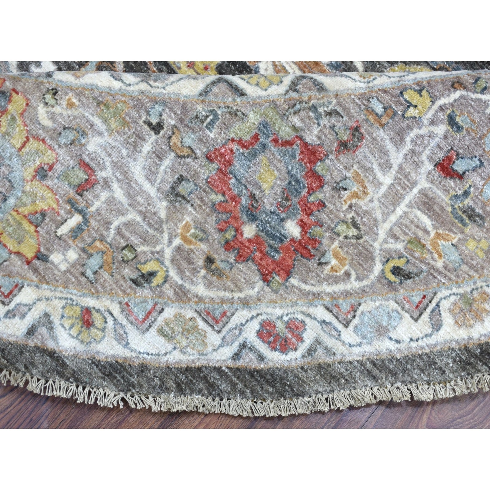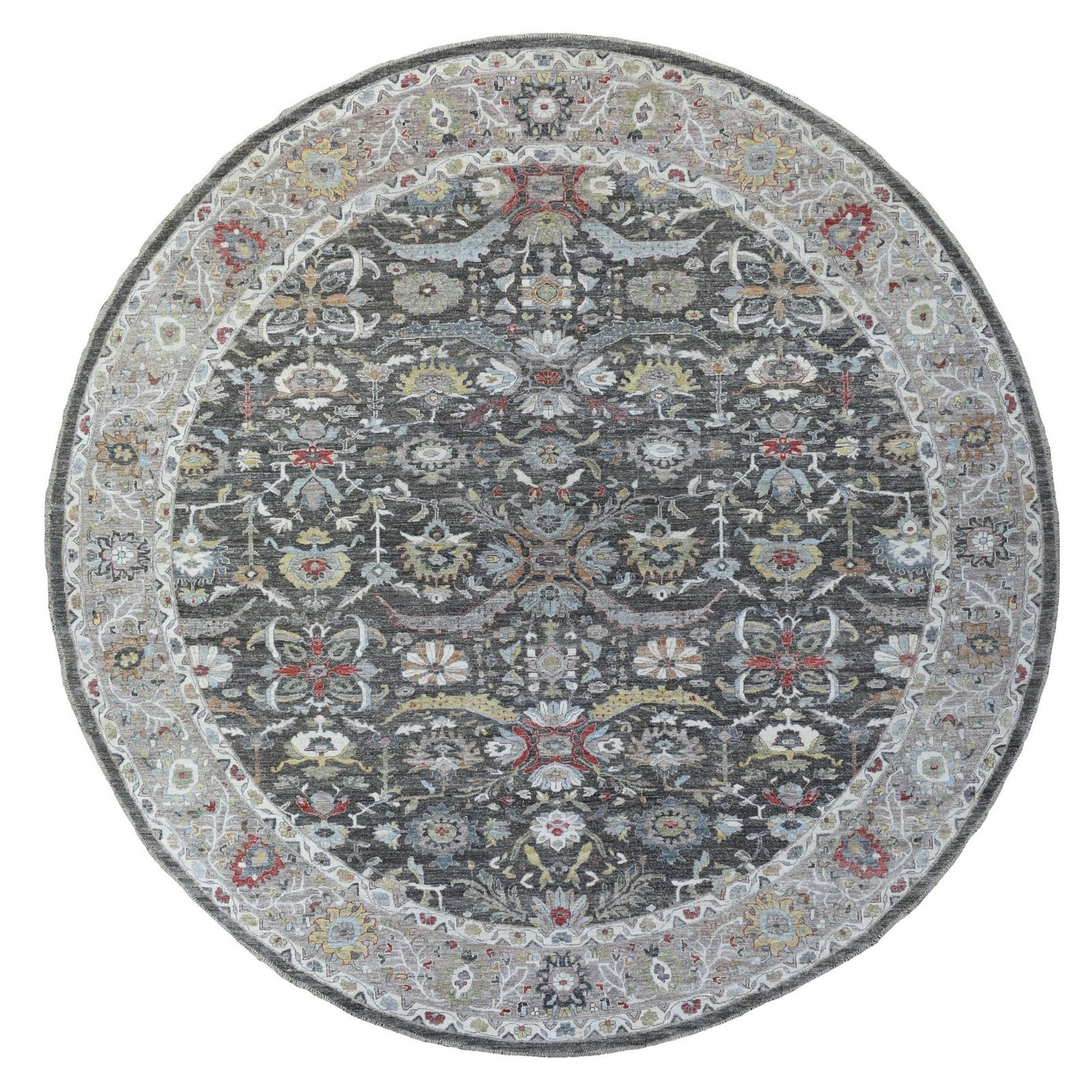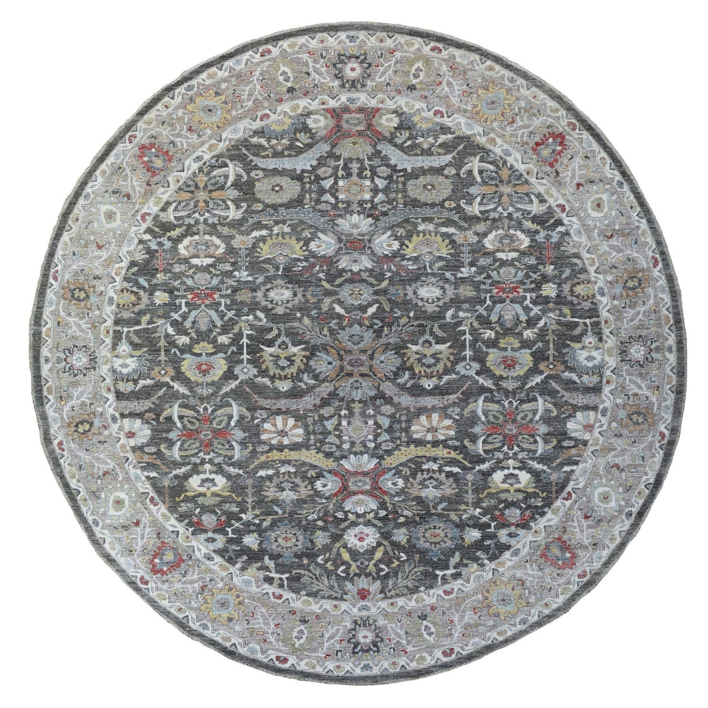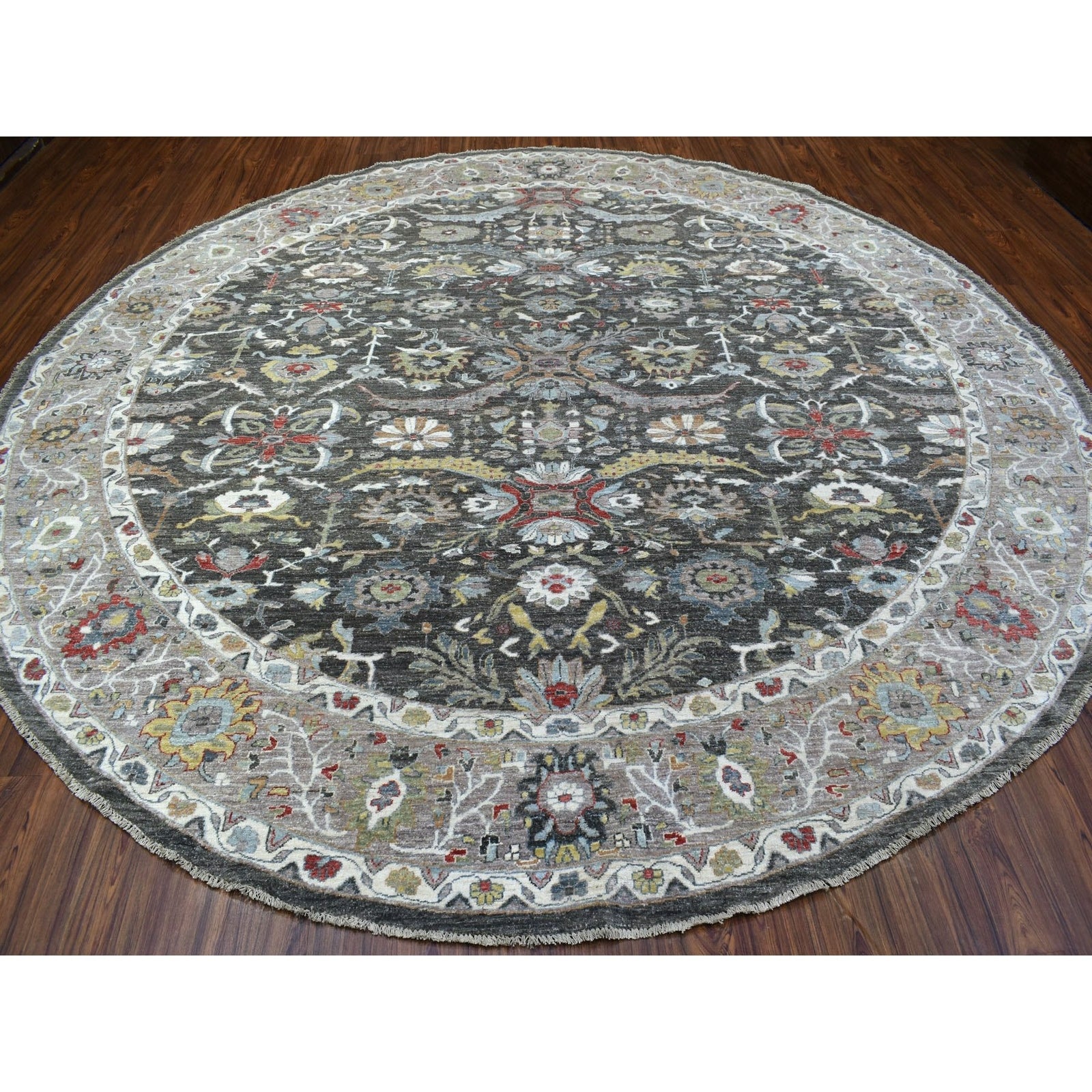 11'7"X11'7" Hand Knotted Wool Peshawar Design Gray Round Rug