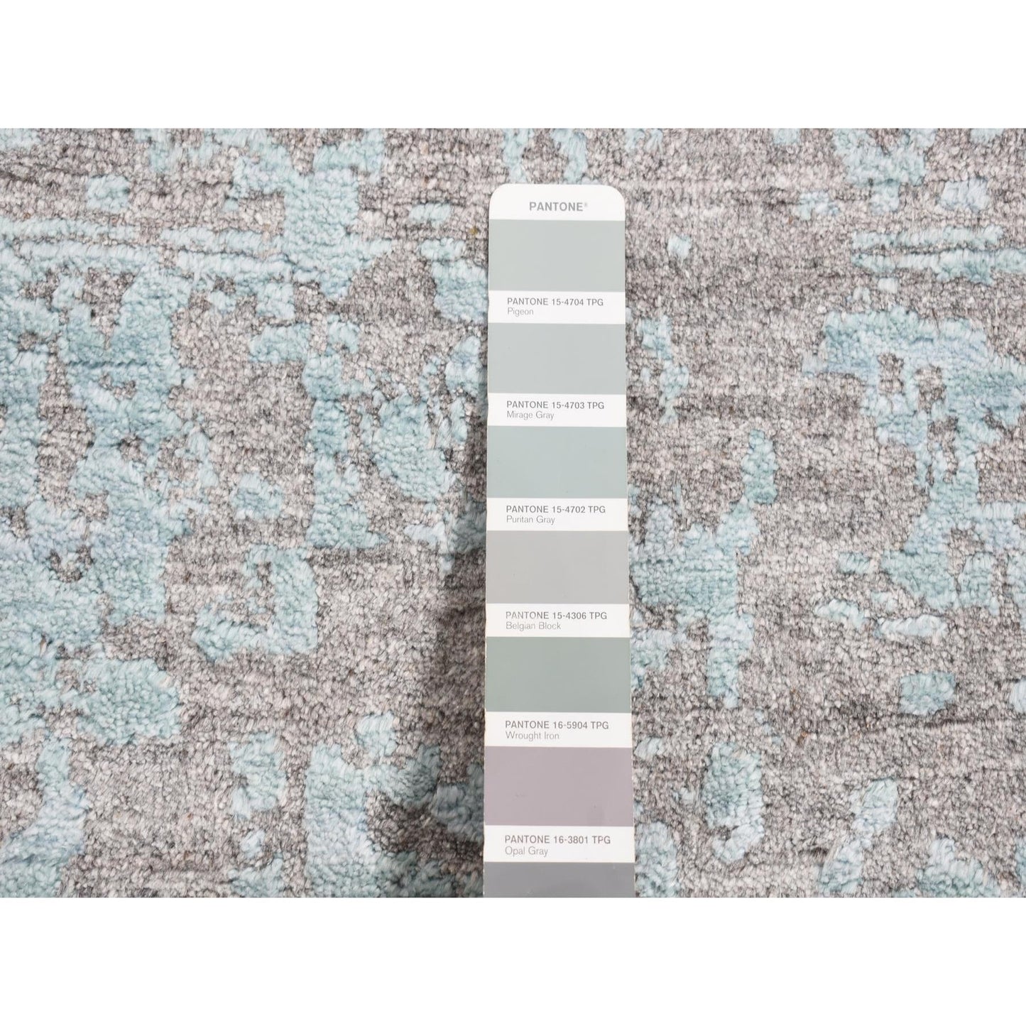11'8"X11'8" Green Hand Knotted Zoroastrian Design Square Wool, Silk Rug