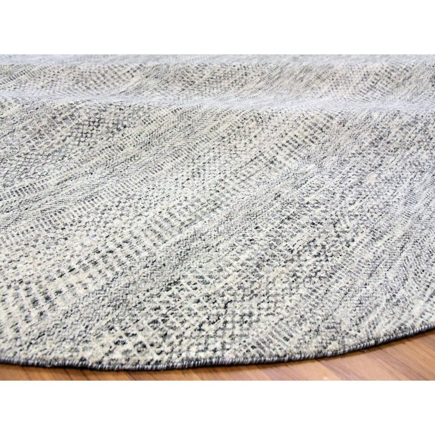 11'X11' Bright Gray Undyed Wool Grass Design Hand Knotted Round Rug