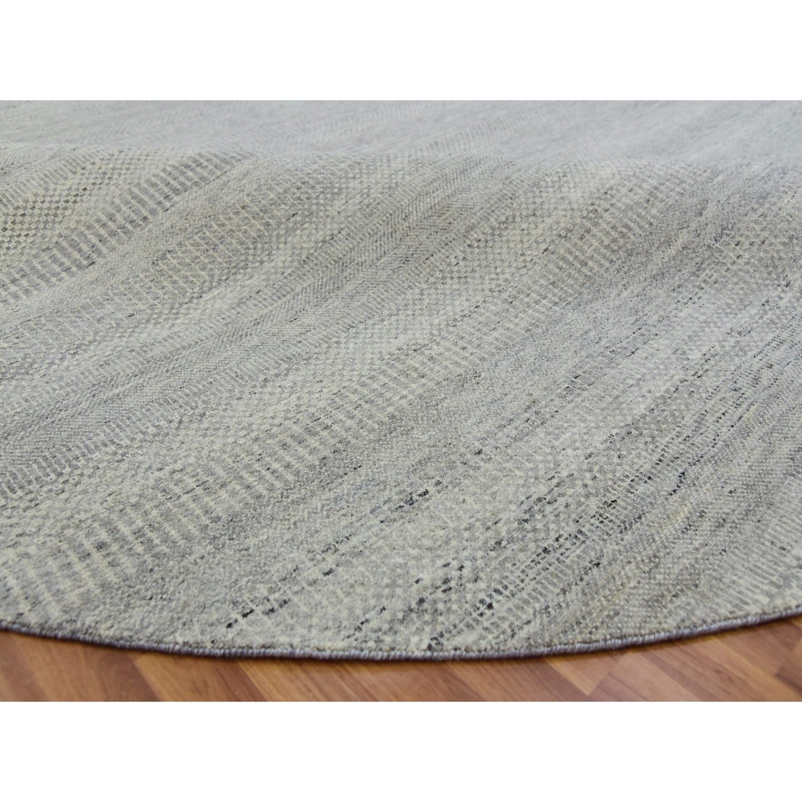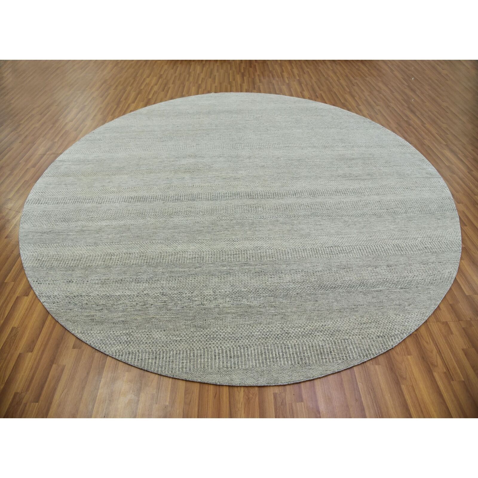 11'X11' Rustic Gray Grass Design Hand Knotted Undyed Wool Round Rug