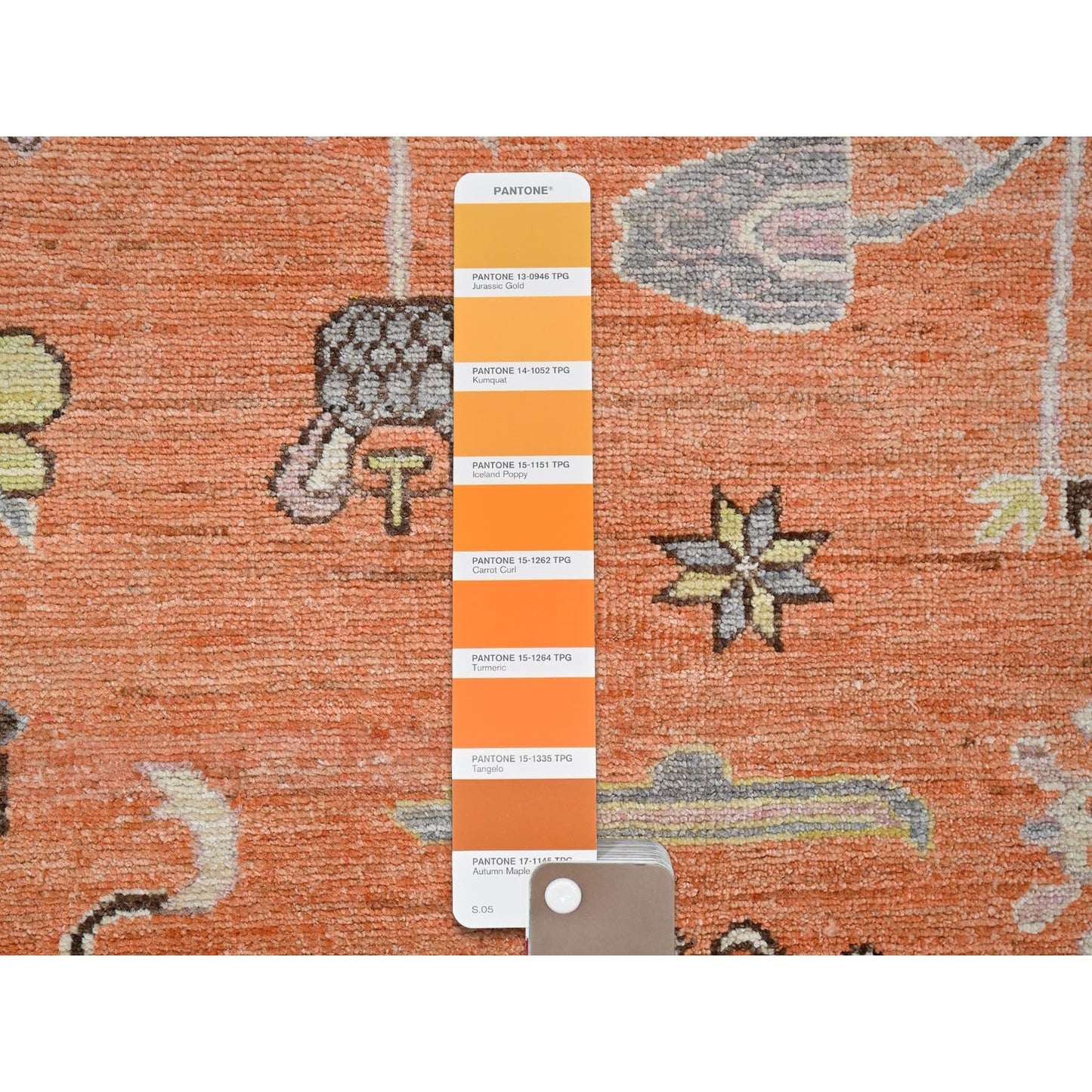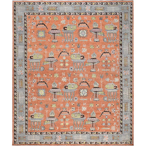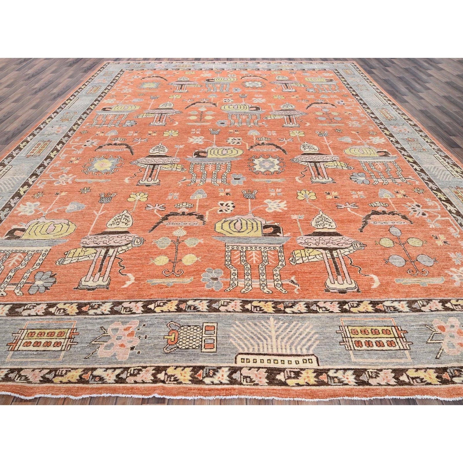 12'1"X14'6" Orange Khotan And Samarkand Design Hand Knotted Soft Wool Rug