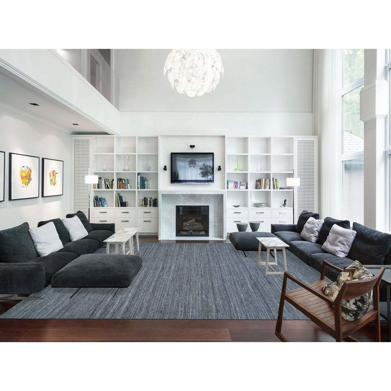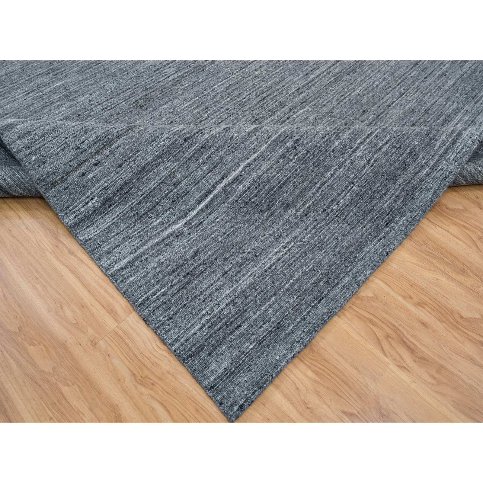 12'1"X15'1" Gray Modern Striae Design All Wool Hand Loomed Oversized Rug