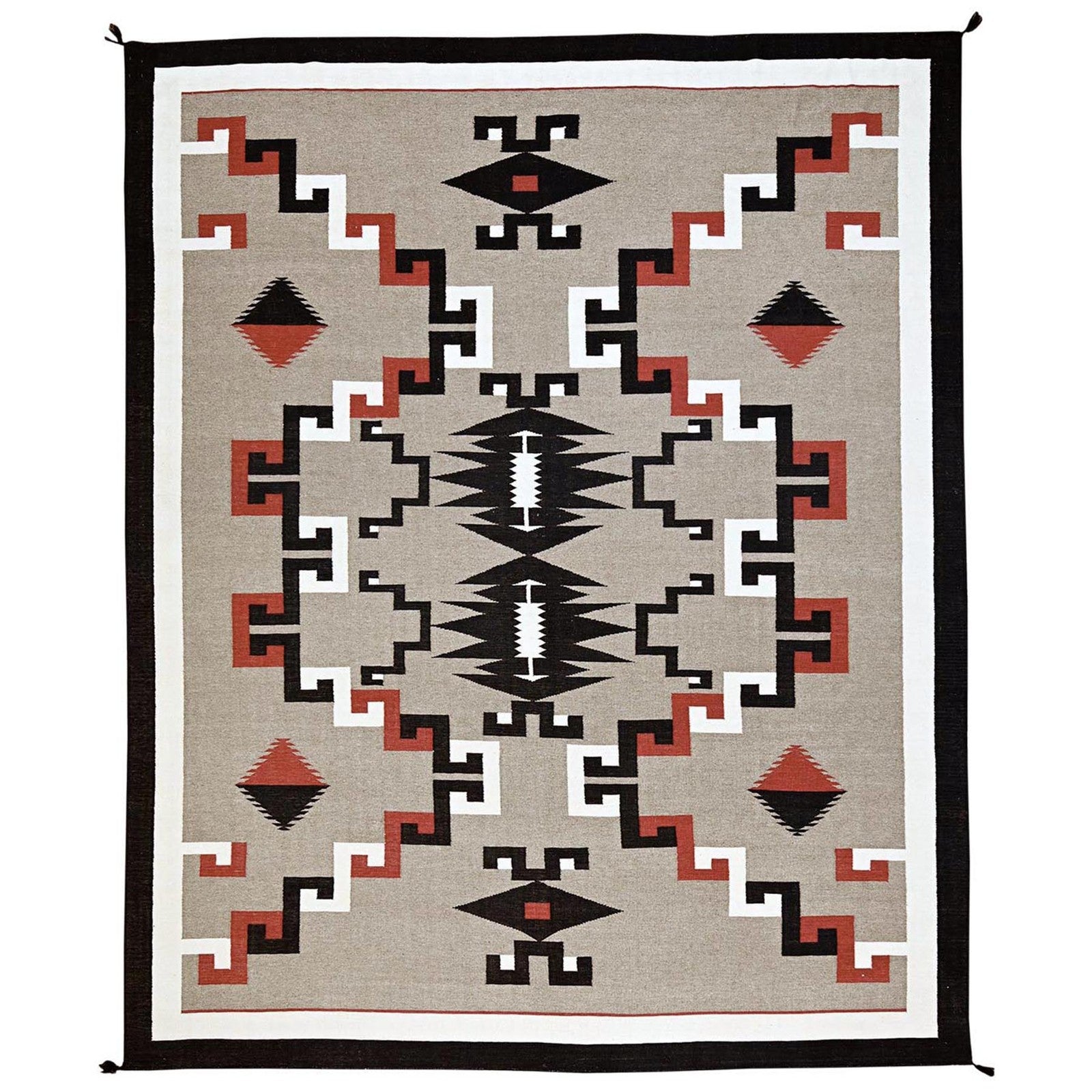 12'2"X14'8" Brown Hand Woven Rug American Geometric Design Flat Weave Wool
